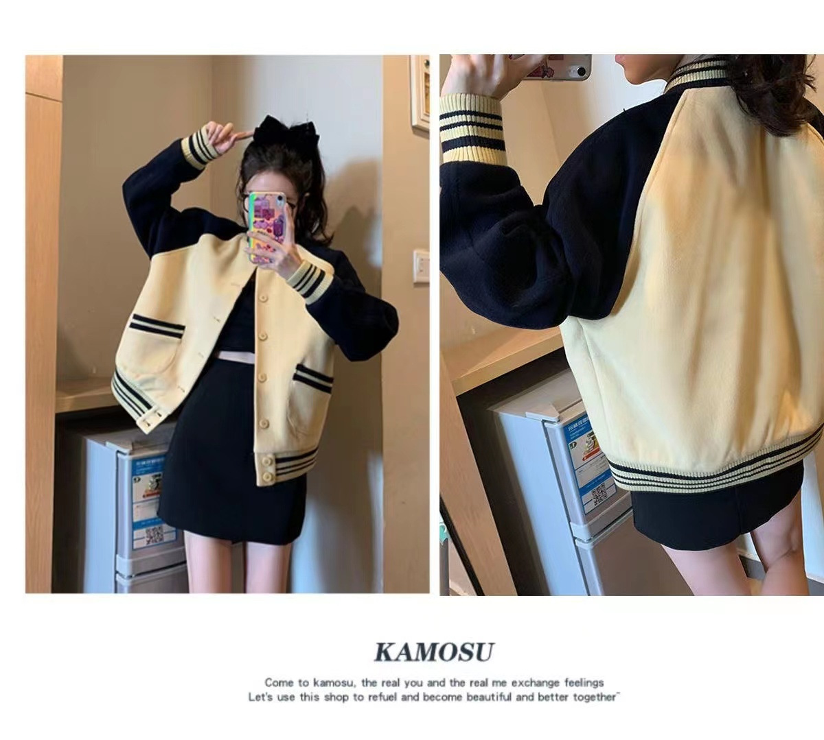 2025 봄과 가을 여성을위한 새로운 얇은 대비 색 야구 유니폼 재킷 미국 복고풍 작은 느슨한 긴팔 재킷스토어 가기