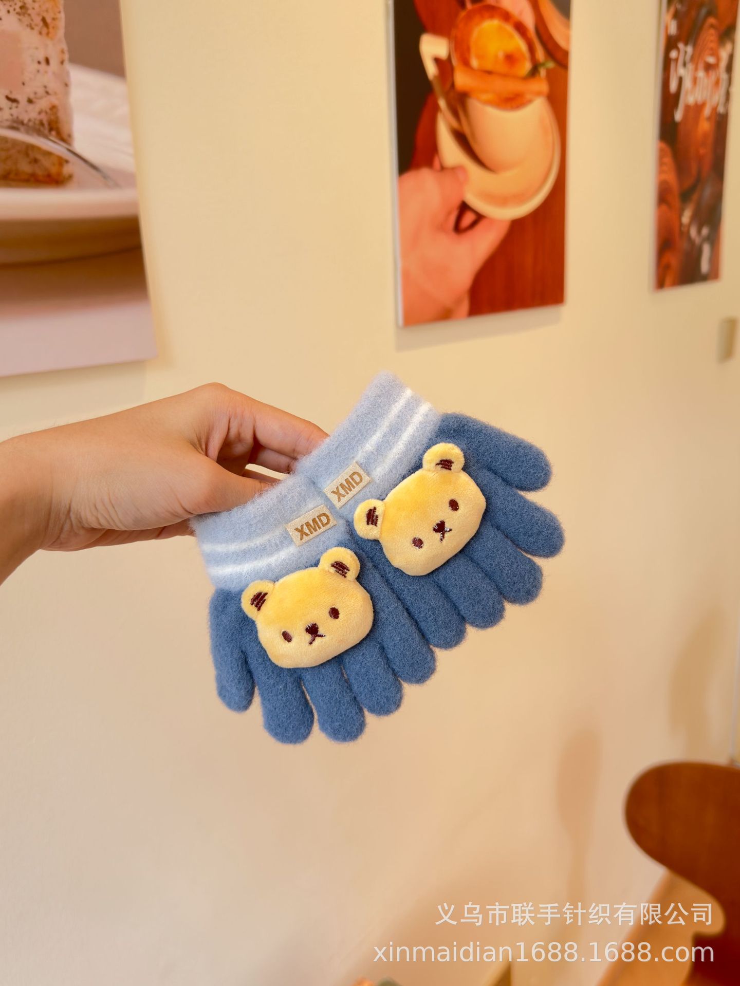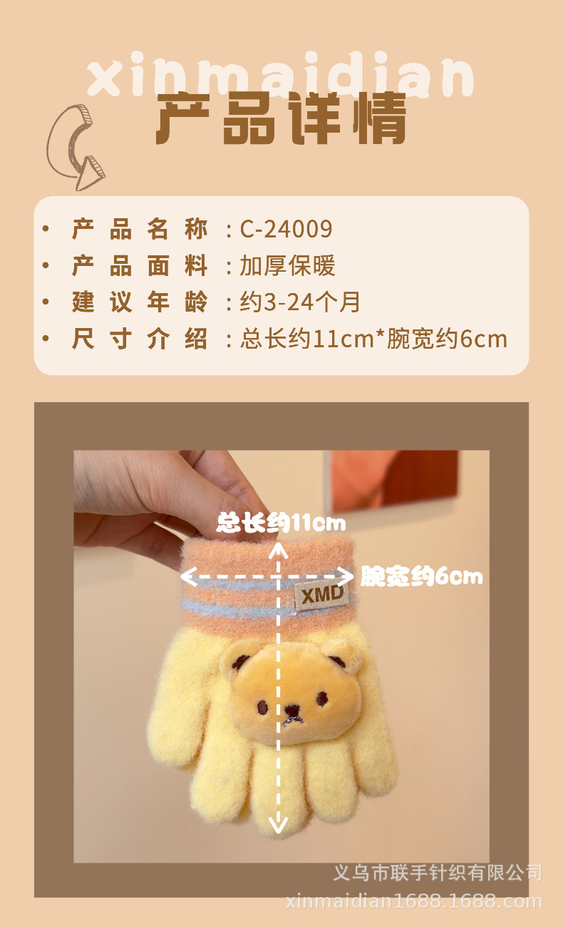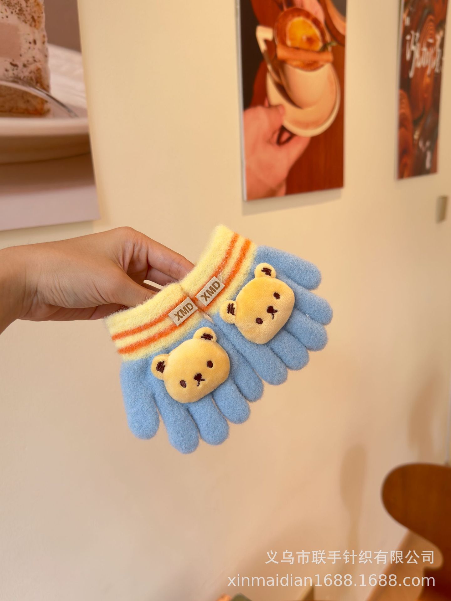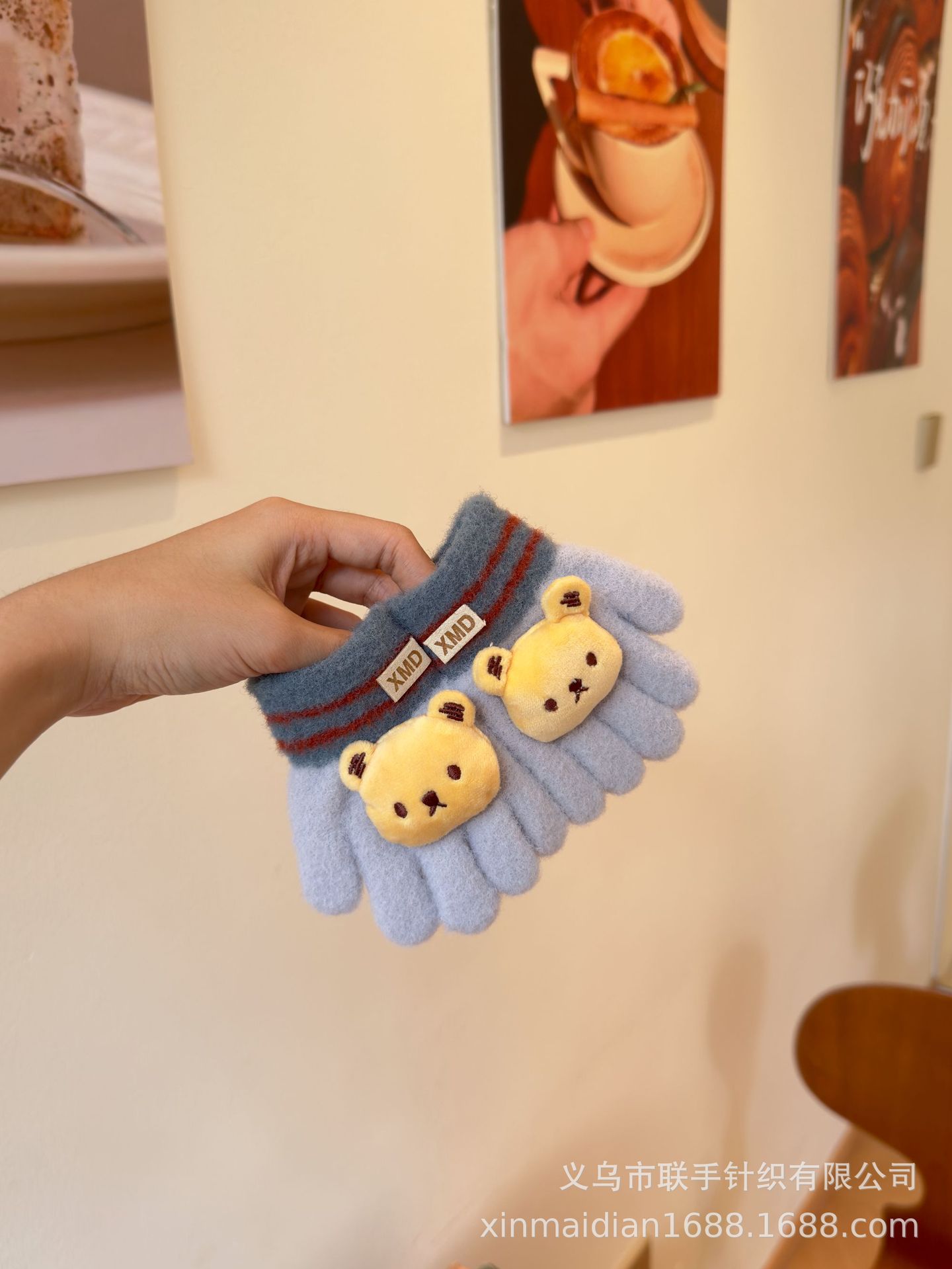 아기 따뜻한 장갑 가을과 겨울 방풍 방추위 귀여운 곰 다섯 손가락 아기 소년과 소녀 두꺼운 니트 손가락 세트