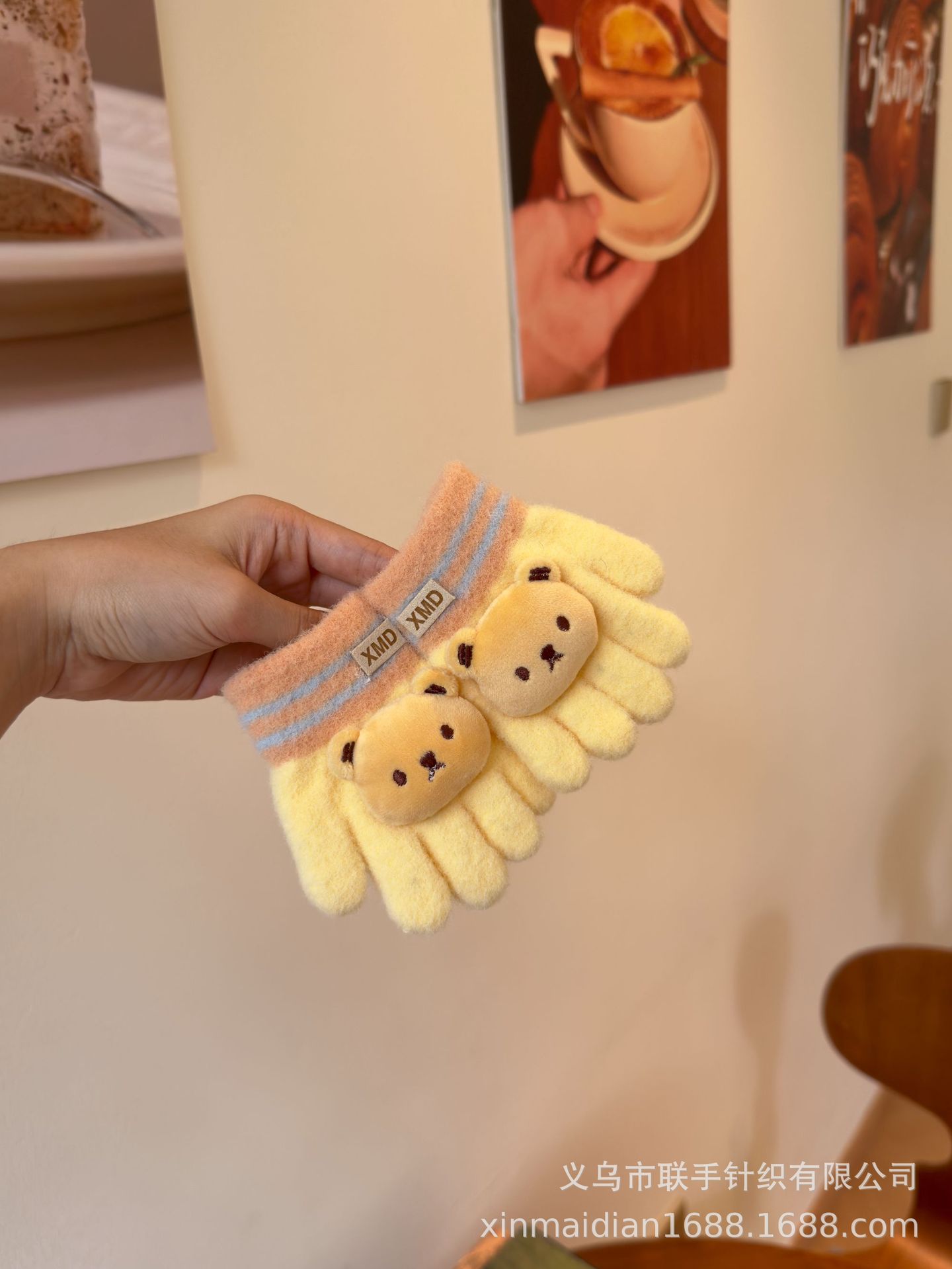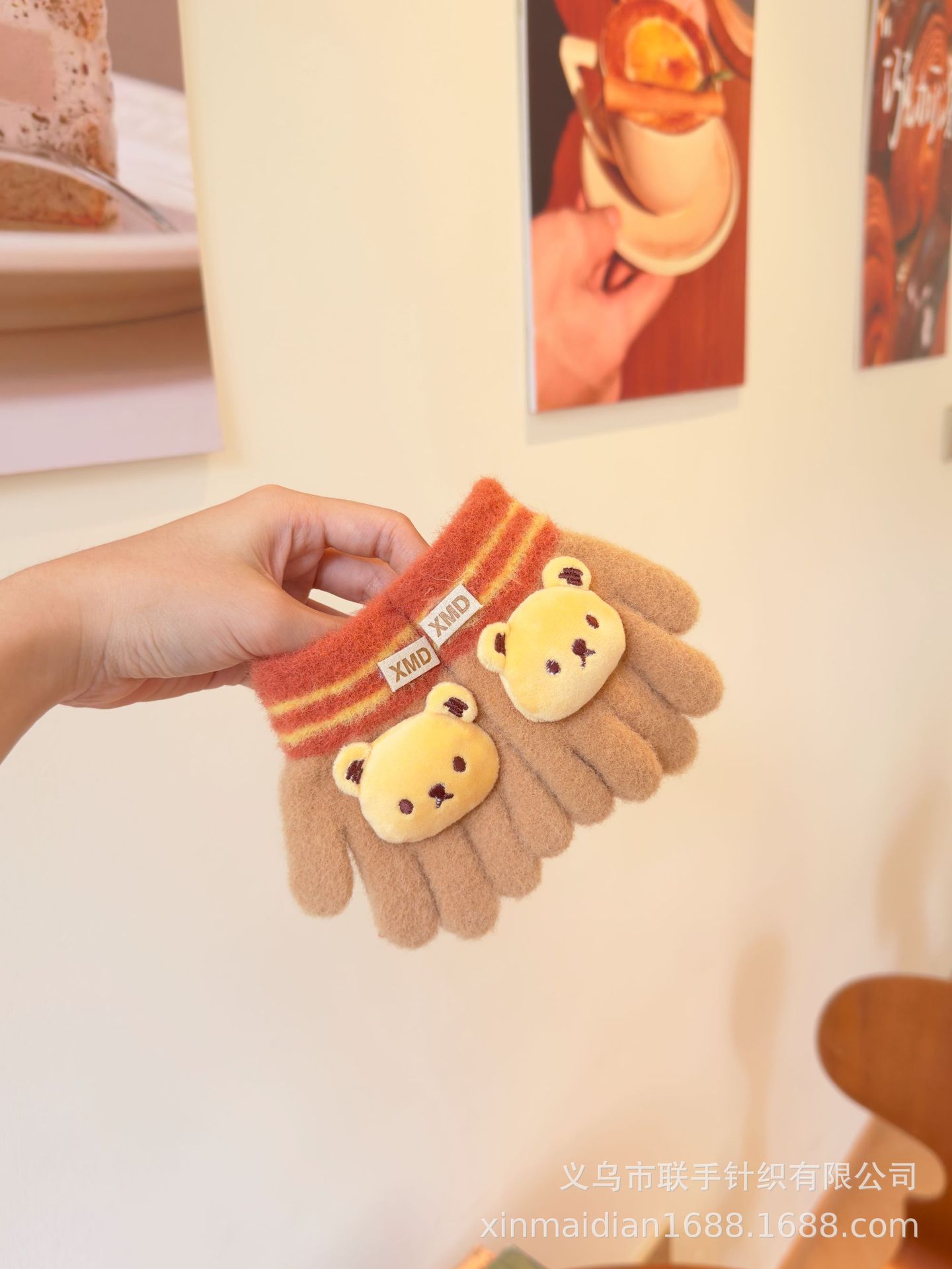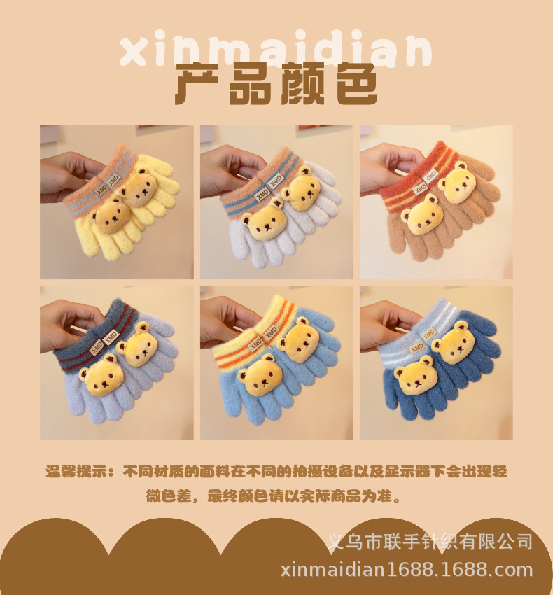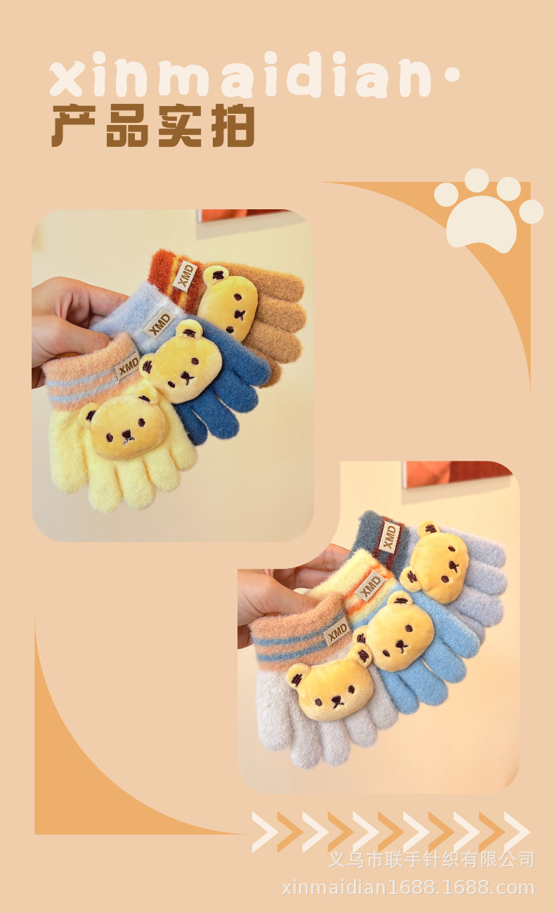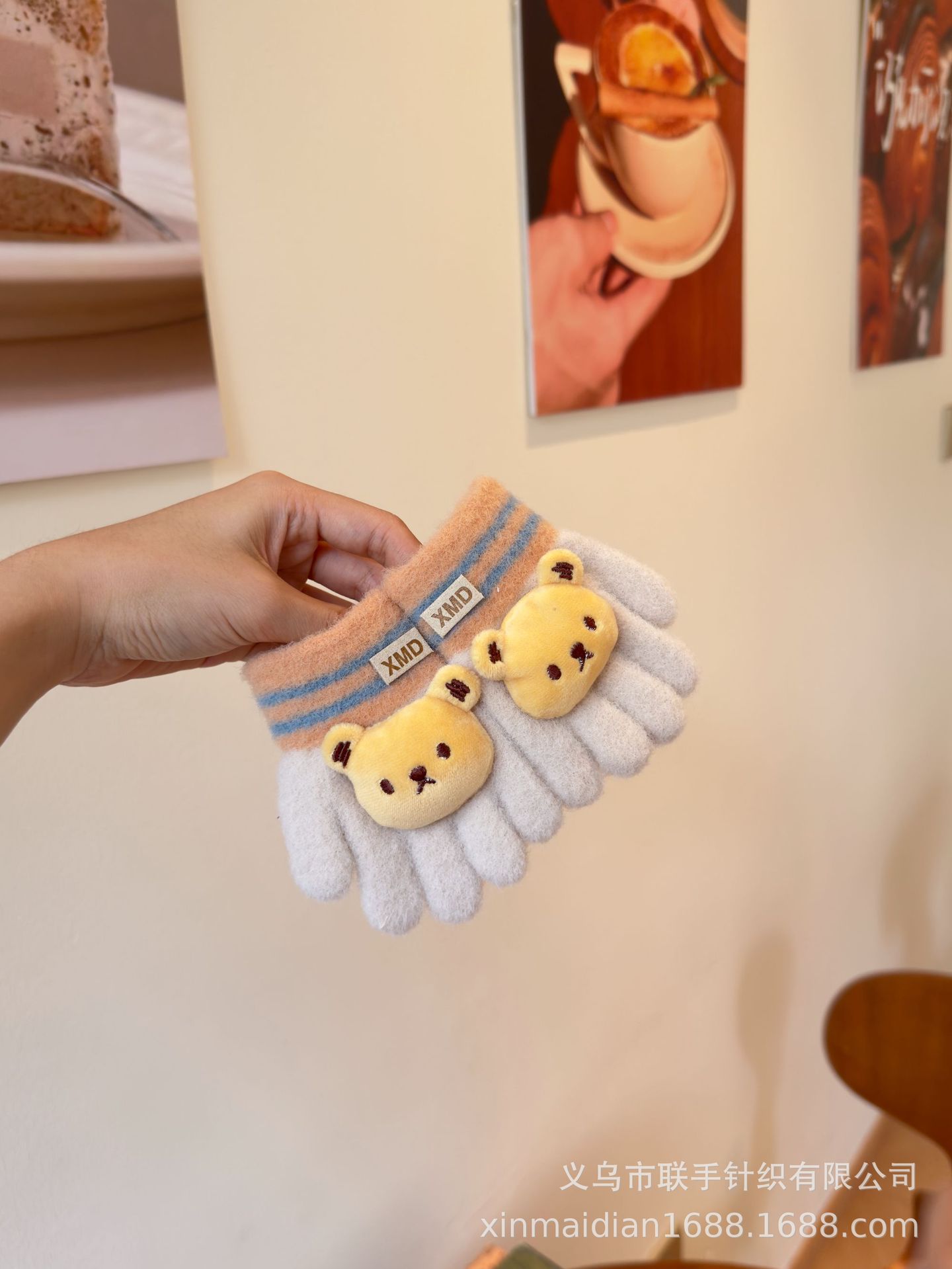 아기 따뜻한 장갑 가을과 겨울 방풍 방추위 귀여운 곰 다섯 손가락 아기 소년과 소녀 두꺼운 니트 손가락 세트
