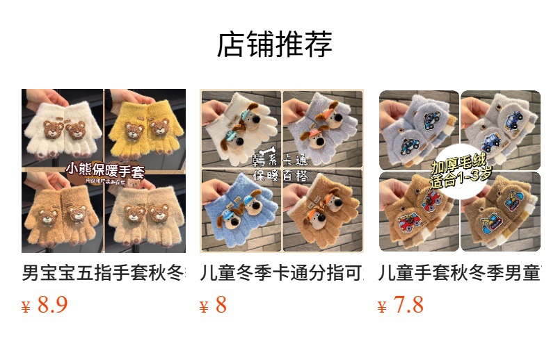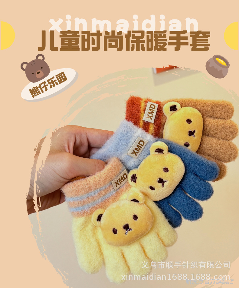 아기 따뜻한 장갑 가을과 겨울 방풍 방추위 귀여운 곰 다섯 손가락 아기 소년과 소녀 두꺼운 니트 손가락 세트스토어 가기