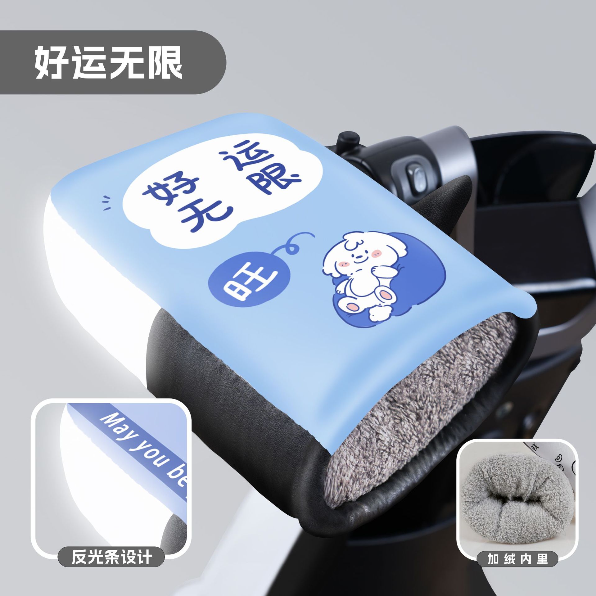 전기 핸들 커버 겨울 기모 두꺼운 따뜻한 배터리 오토바이 앞 유리 방수 면 핸들 커버 핸드 가드스토어 가기