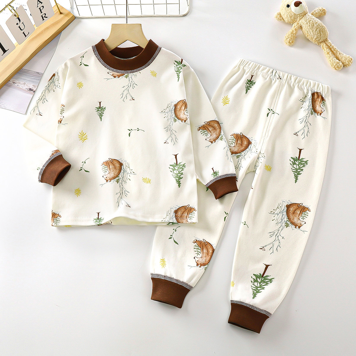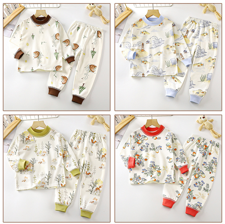 새로운 어린이 면화 홈 옷 아기 긴 소매 파자마 어린이 가을 옷 긴 바지 소녀 뼈없는 속옷 세트