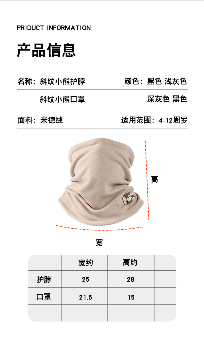 어린이 따뜻한 마스크 아이 코너 야외 방풍 두꺼운 스카프 목 보호 기모 한랭 미들러 겨울 세트