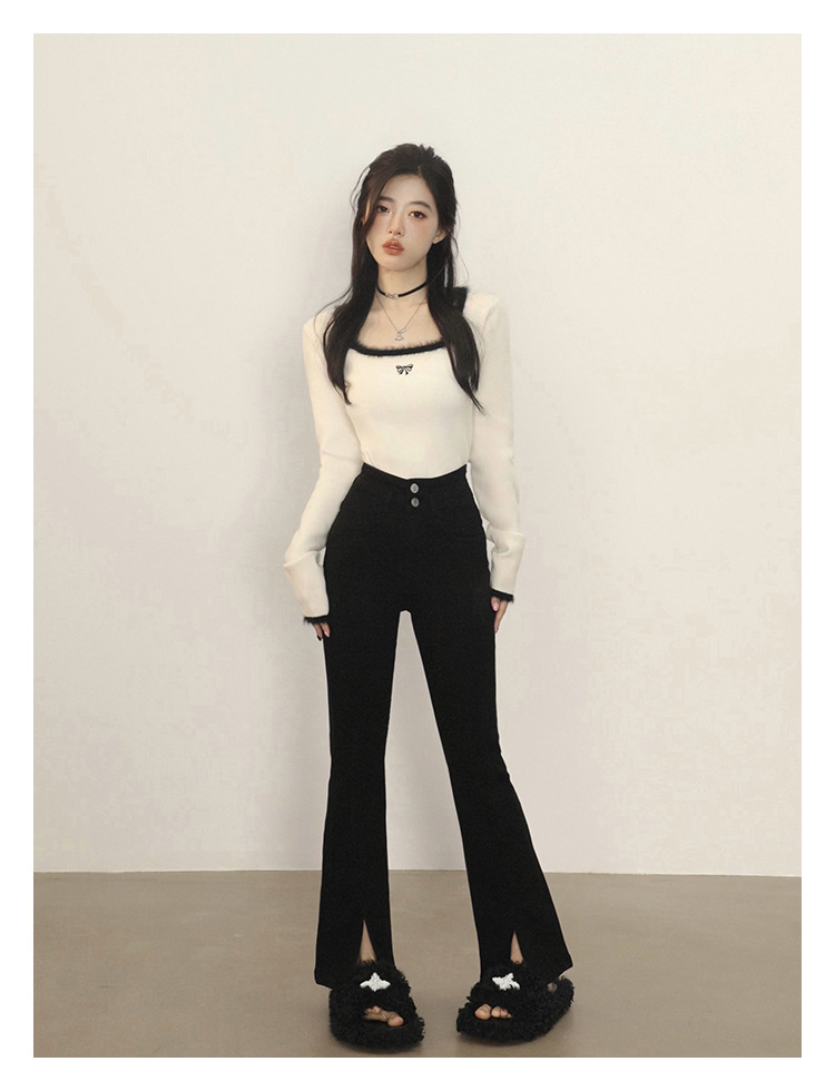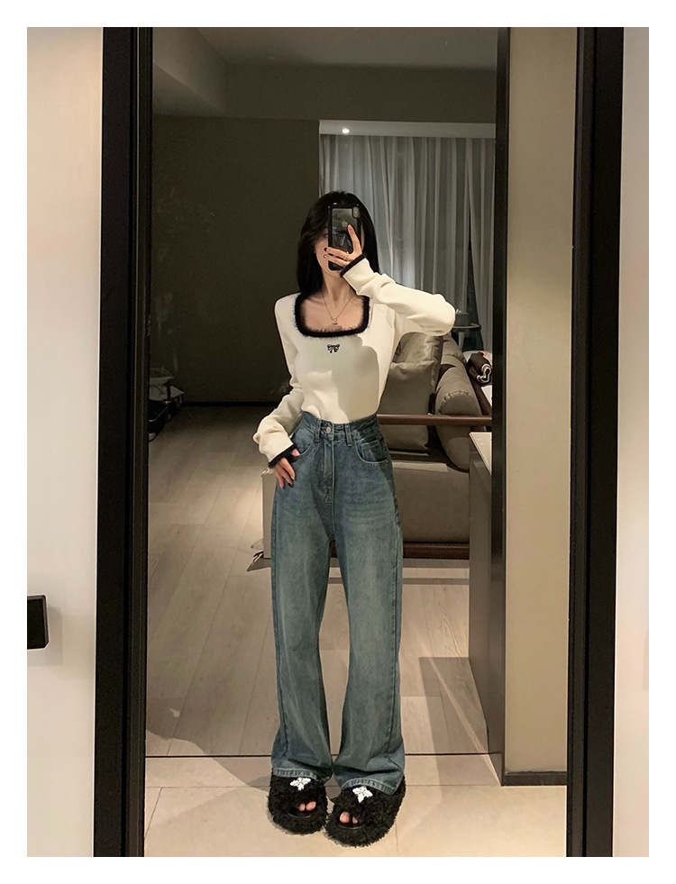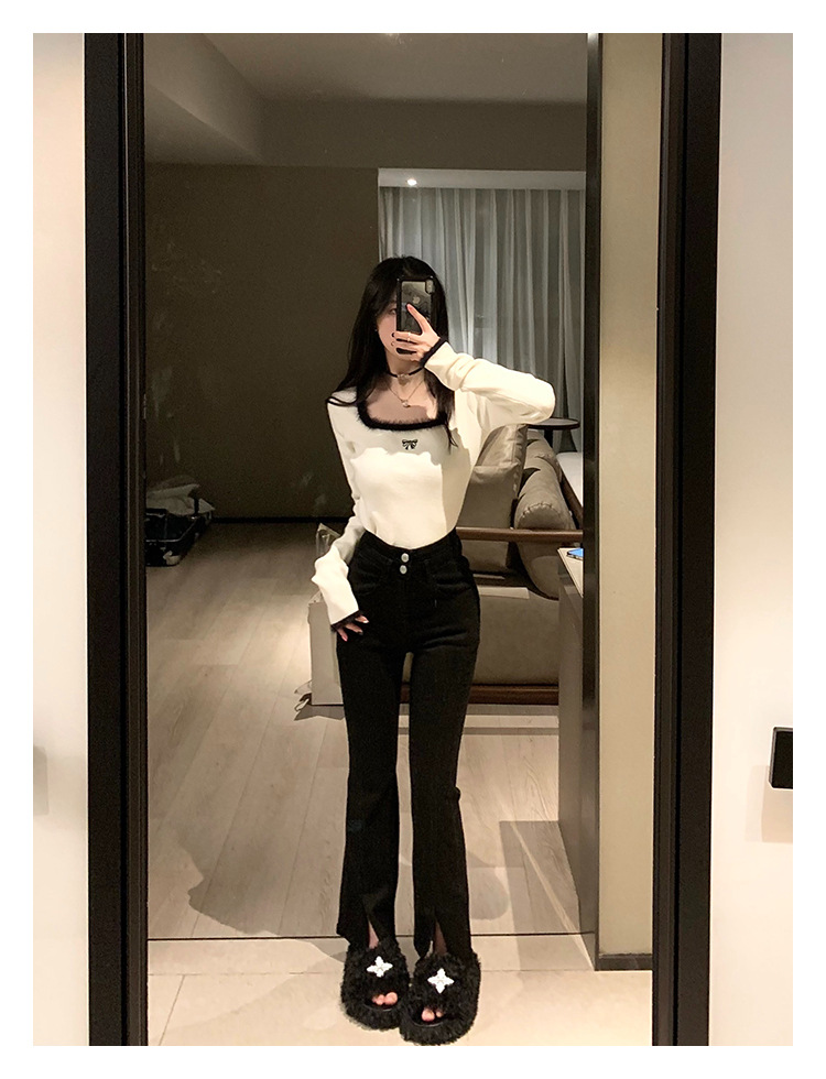 De Rong 순수한 욕망 스타일 하이 엔드 스타일 스퀘어 칼라 자수 가을과 겨울 새로운 내부 슬림 핏 짧은베이스 셔츠 긴팔 탑스토어 가기