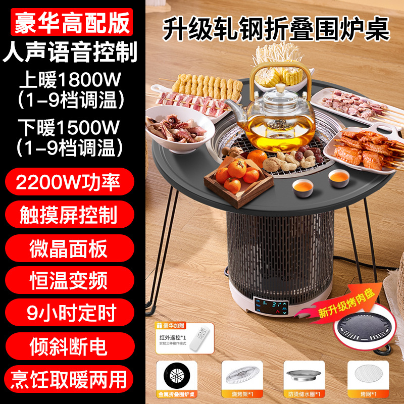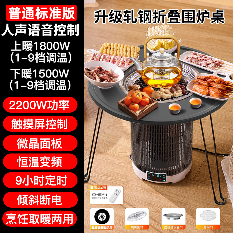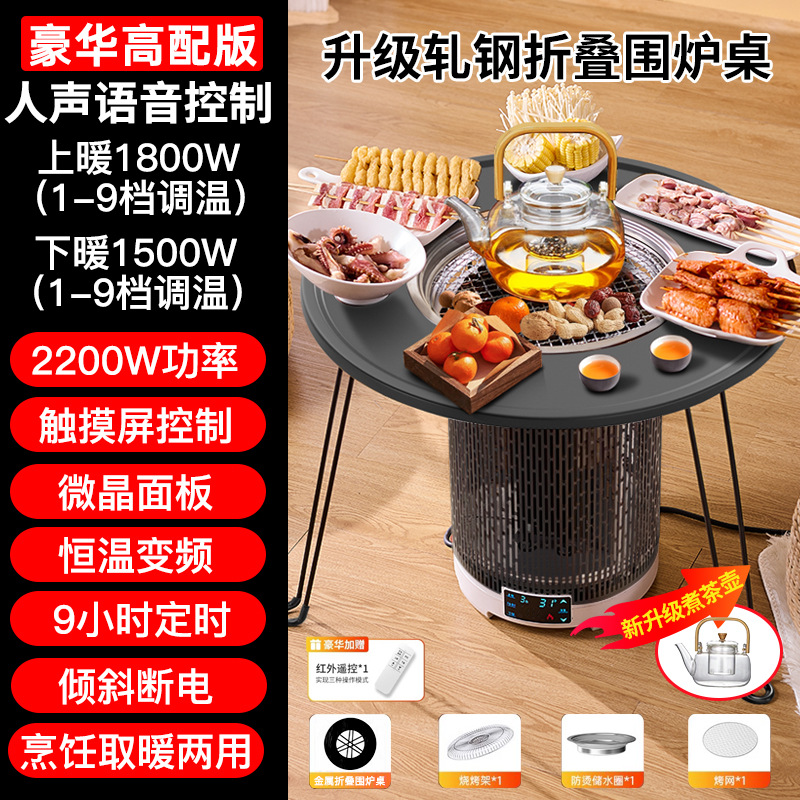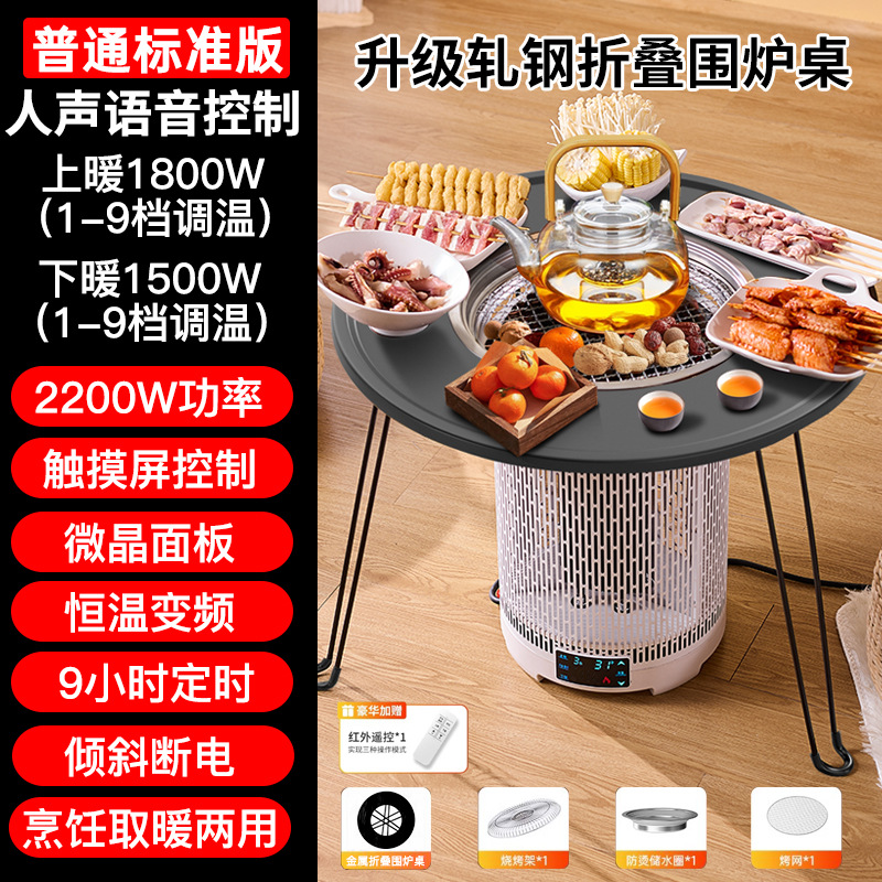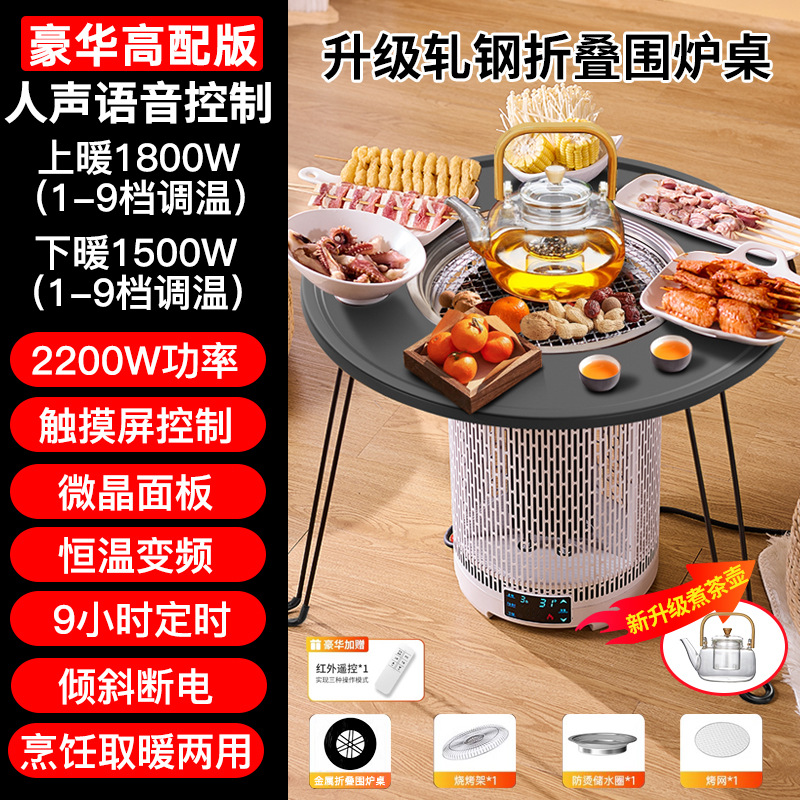 • 심플 화이트 화로 난로 + 압연 강철 화로 테이블 [바비큐 접시와 찻주전자, 상하 난방/차/전골/바비큐/볶음 요리가 포함된 무료 7종 세트]