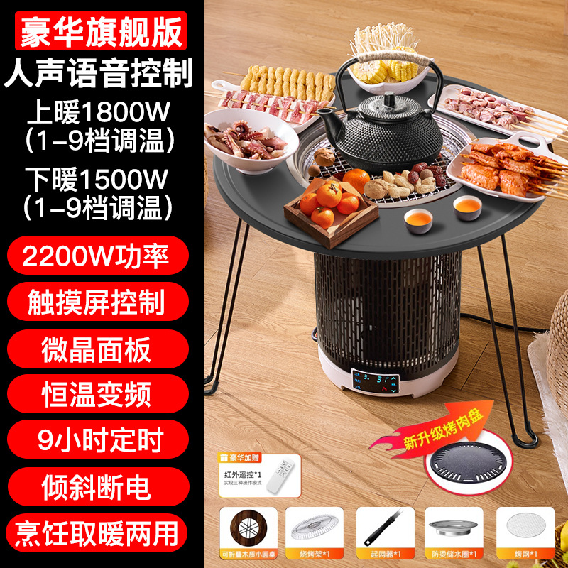 • 옵시디언 블랙 난로 히터 + 압연 강철 난로 테이블 [바비큐 접시와 찻주전자가 포함된 8종 세트, 상하 난방/차/전골/바비큐/볶음 요리]