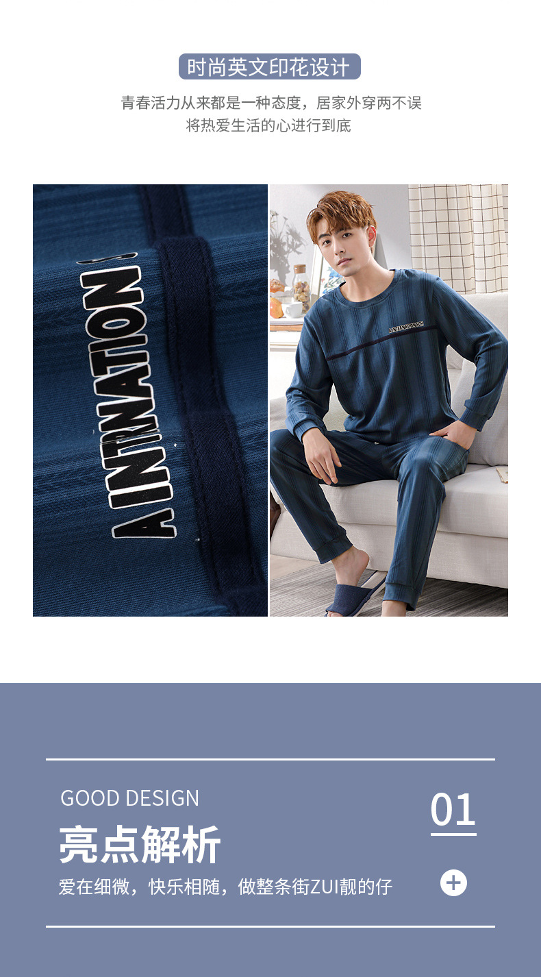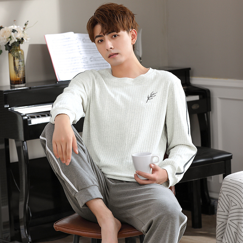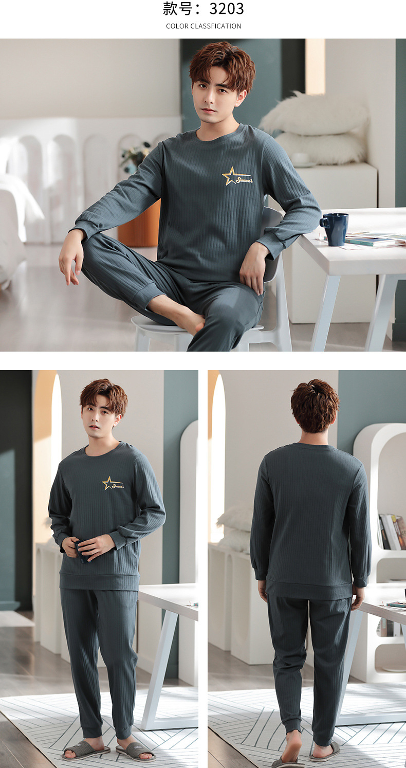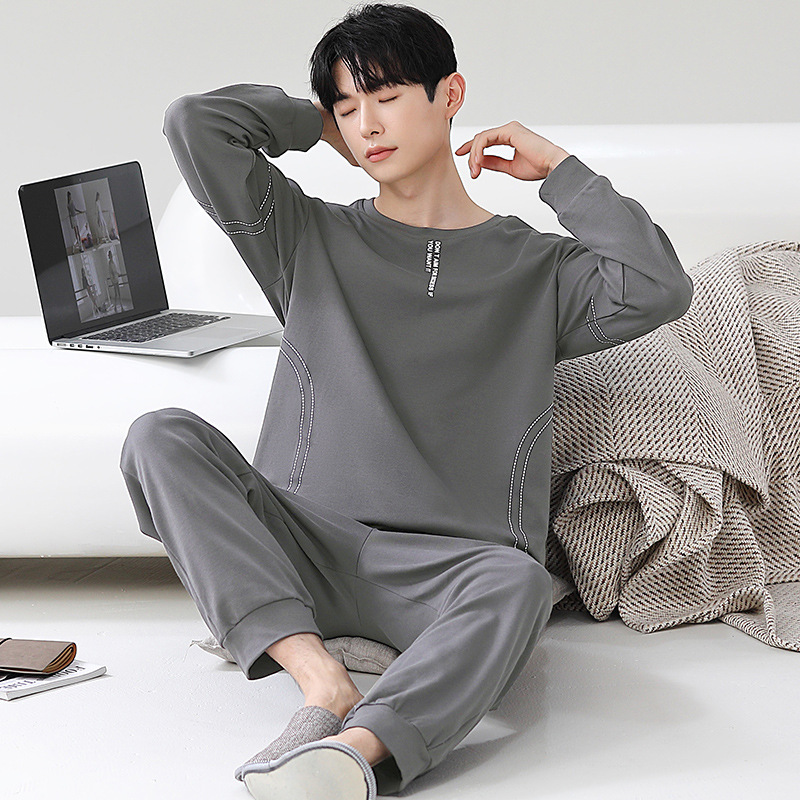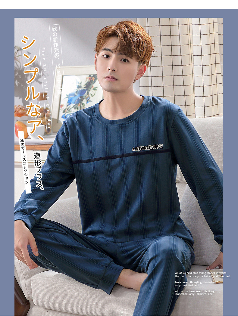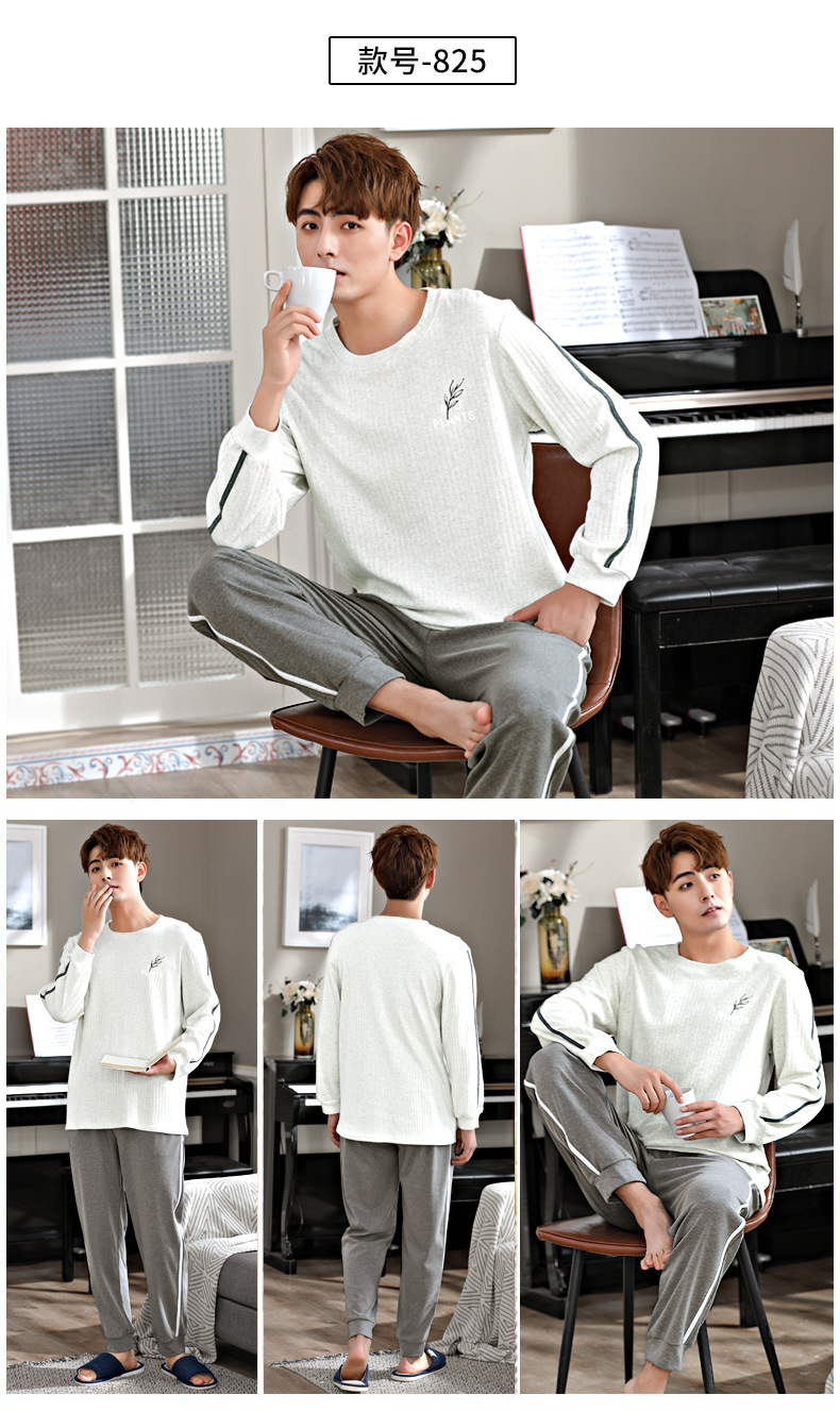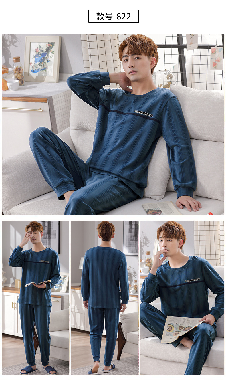 100% 양면 두꺼운 순면 남성용 잠옷 가을과 겨울 긴 소매 캐주얼 라운드 넥 아웃웨어 청소년 홈 의류 세트스토어 가기