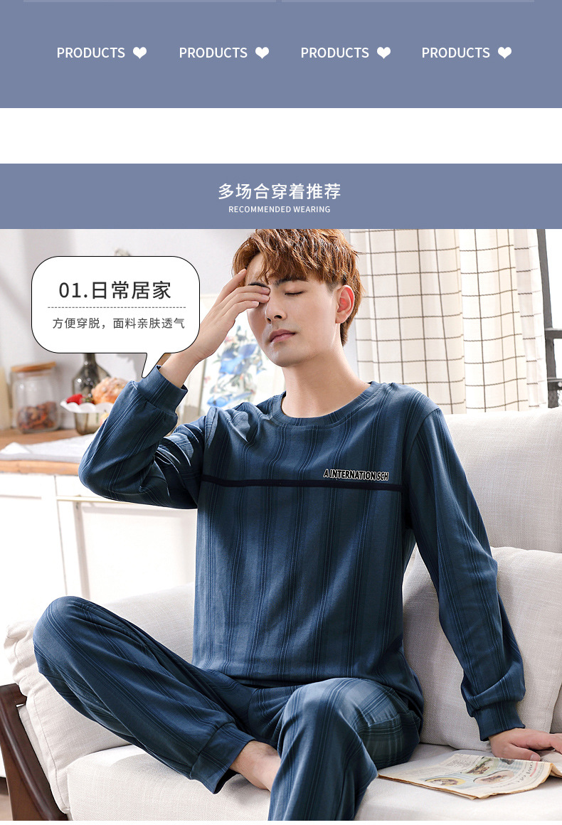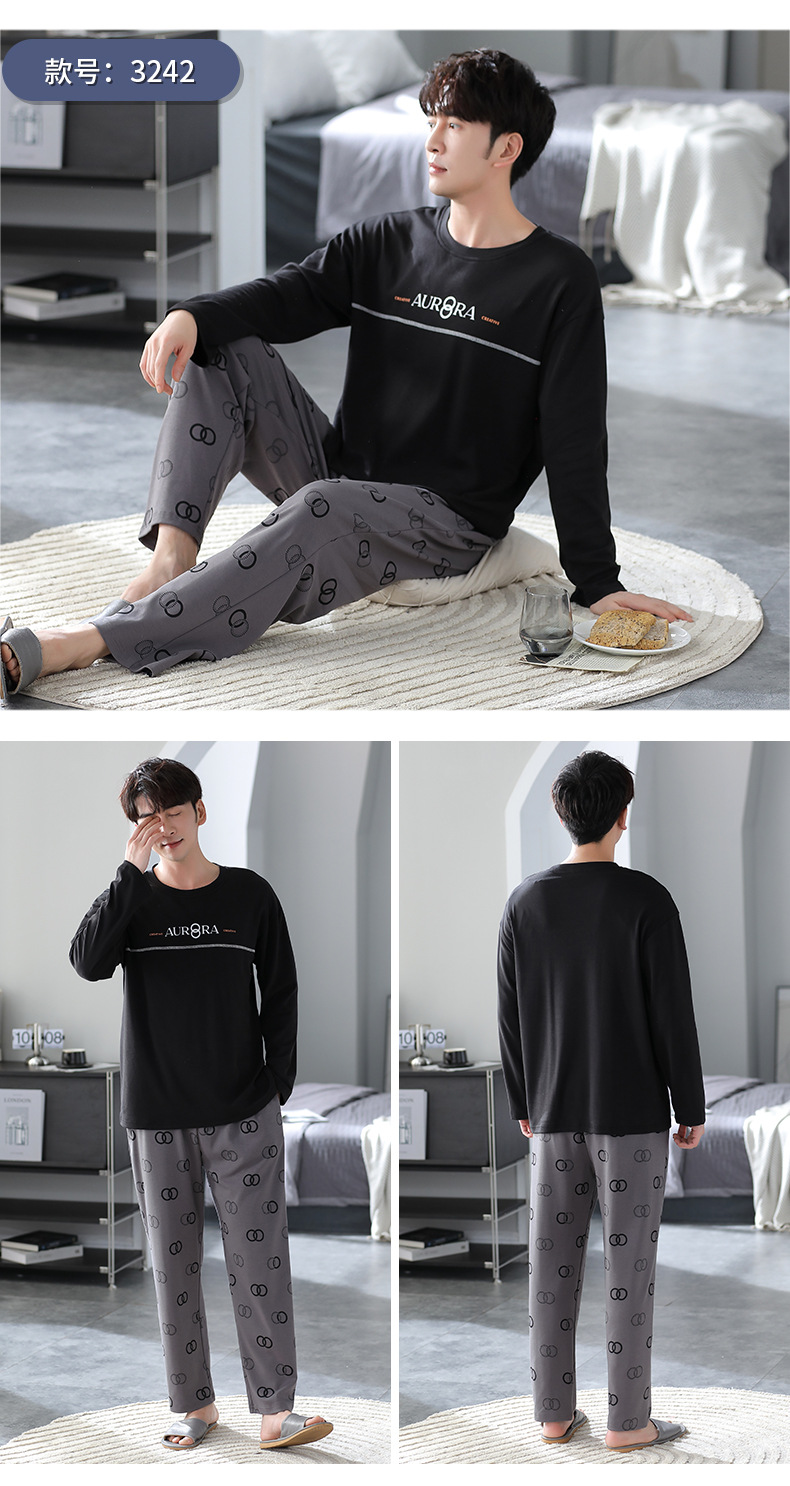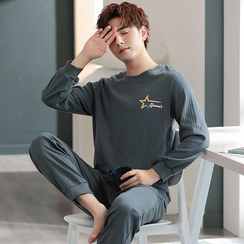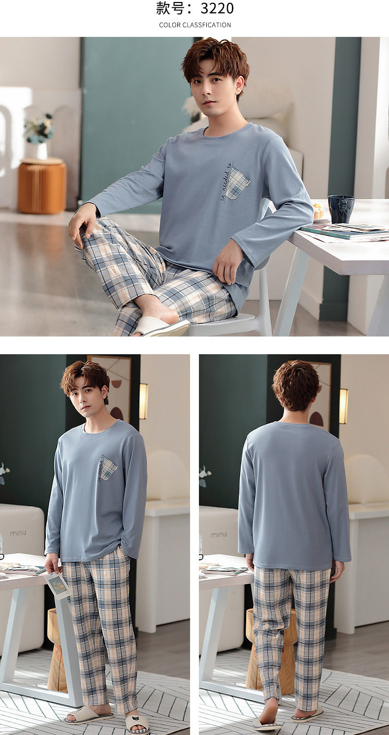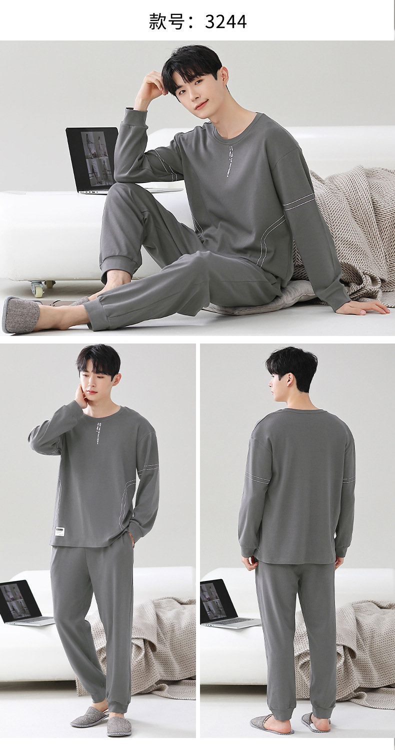 100% 양면 두꺼운 순면 남성용 잠옷 가을과 겨울 긴 소매 캐주얼 라운드 넥 아웃웨어 청소년 홈 의류 세트스토어 가기