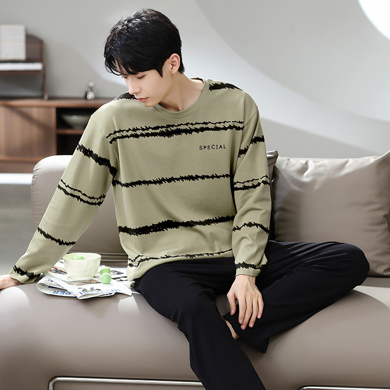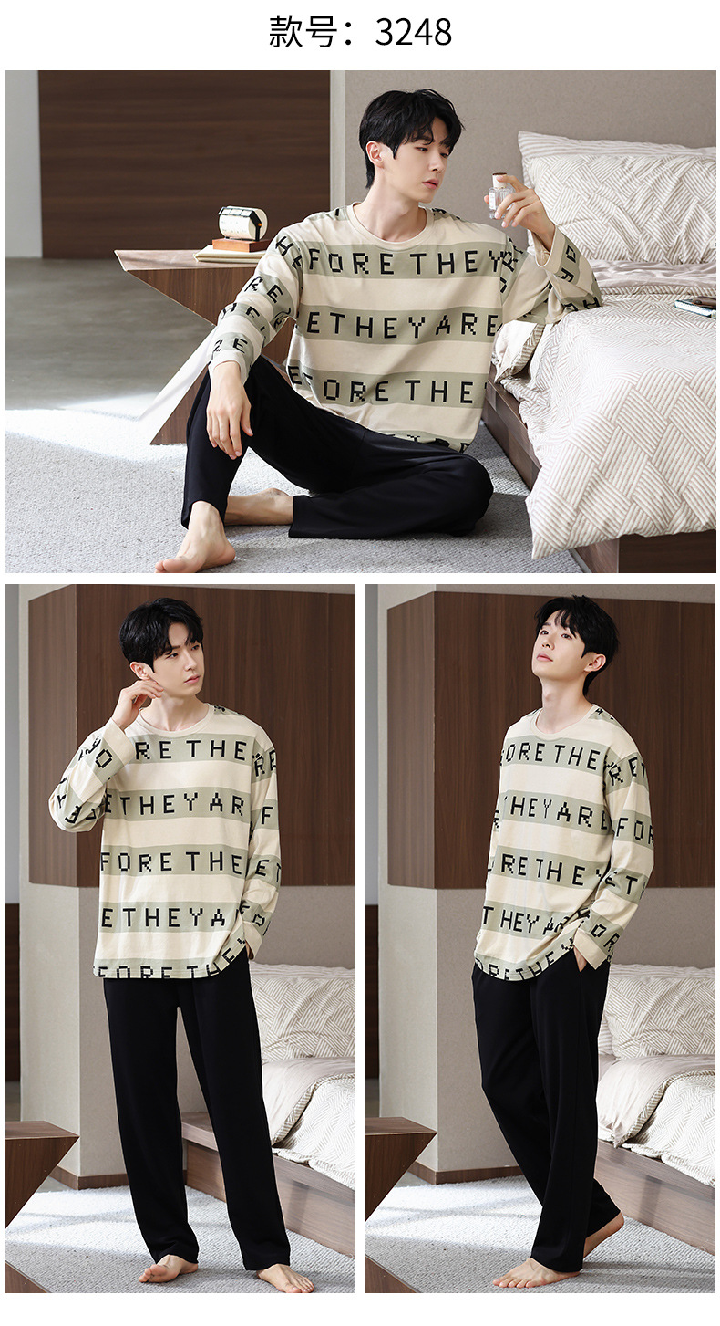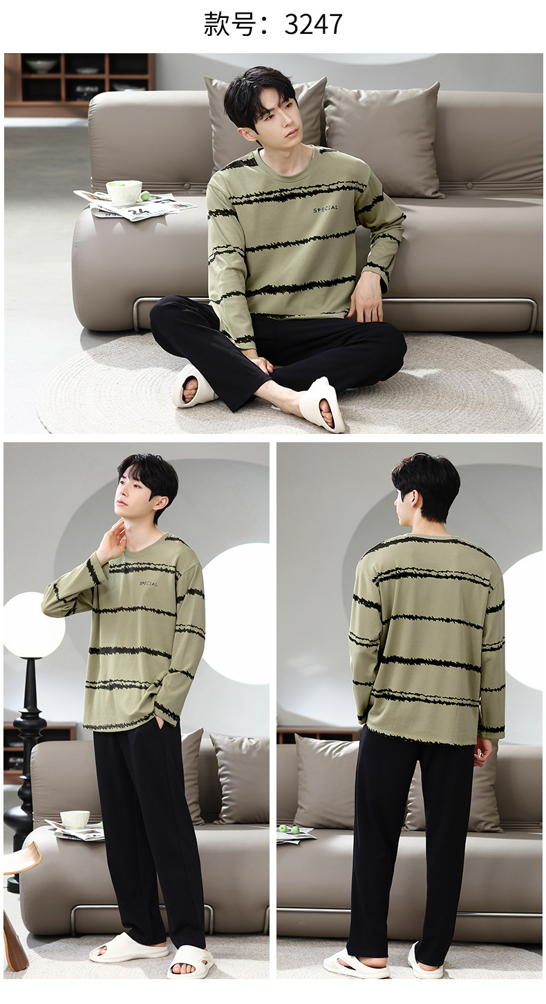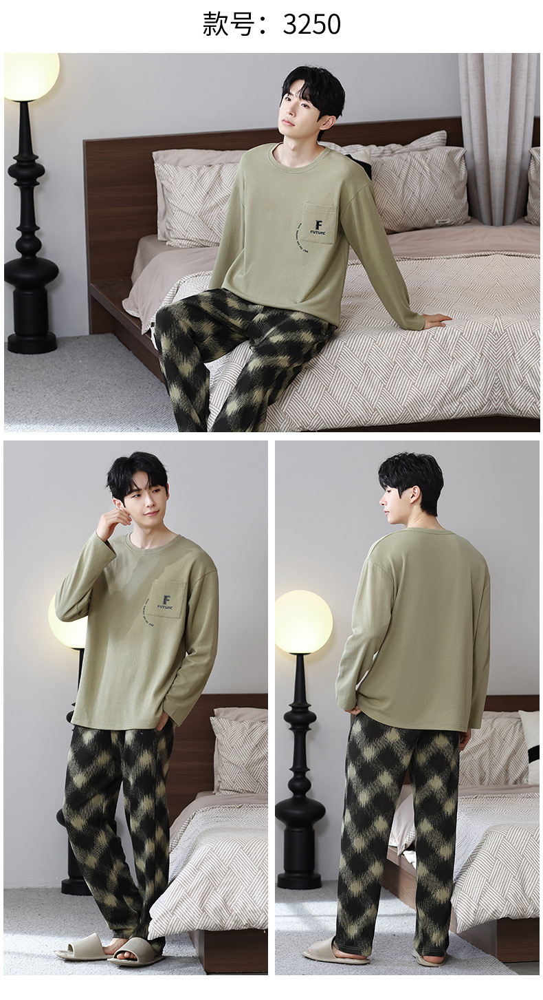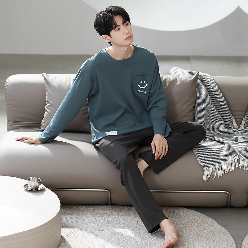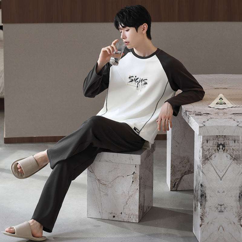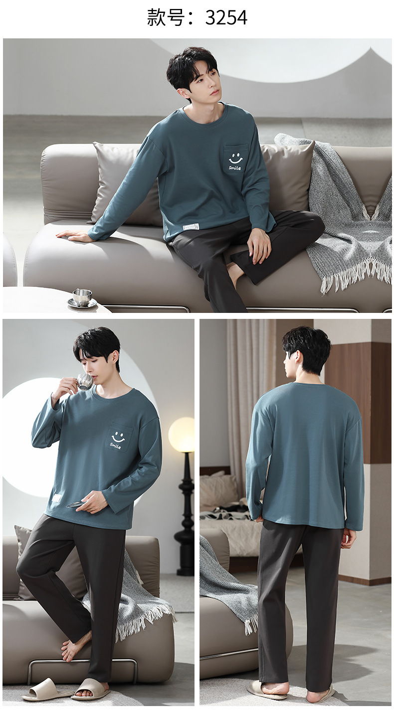 100% 양면 두꺼운 순면 남성용 잠옷 가을과 겨울 긴 소매 캐주얼 라운드 넥 아웃웨어 청소년 홈 의류 세트스토어 가기