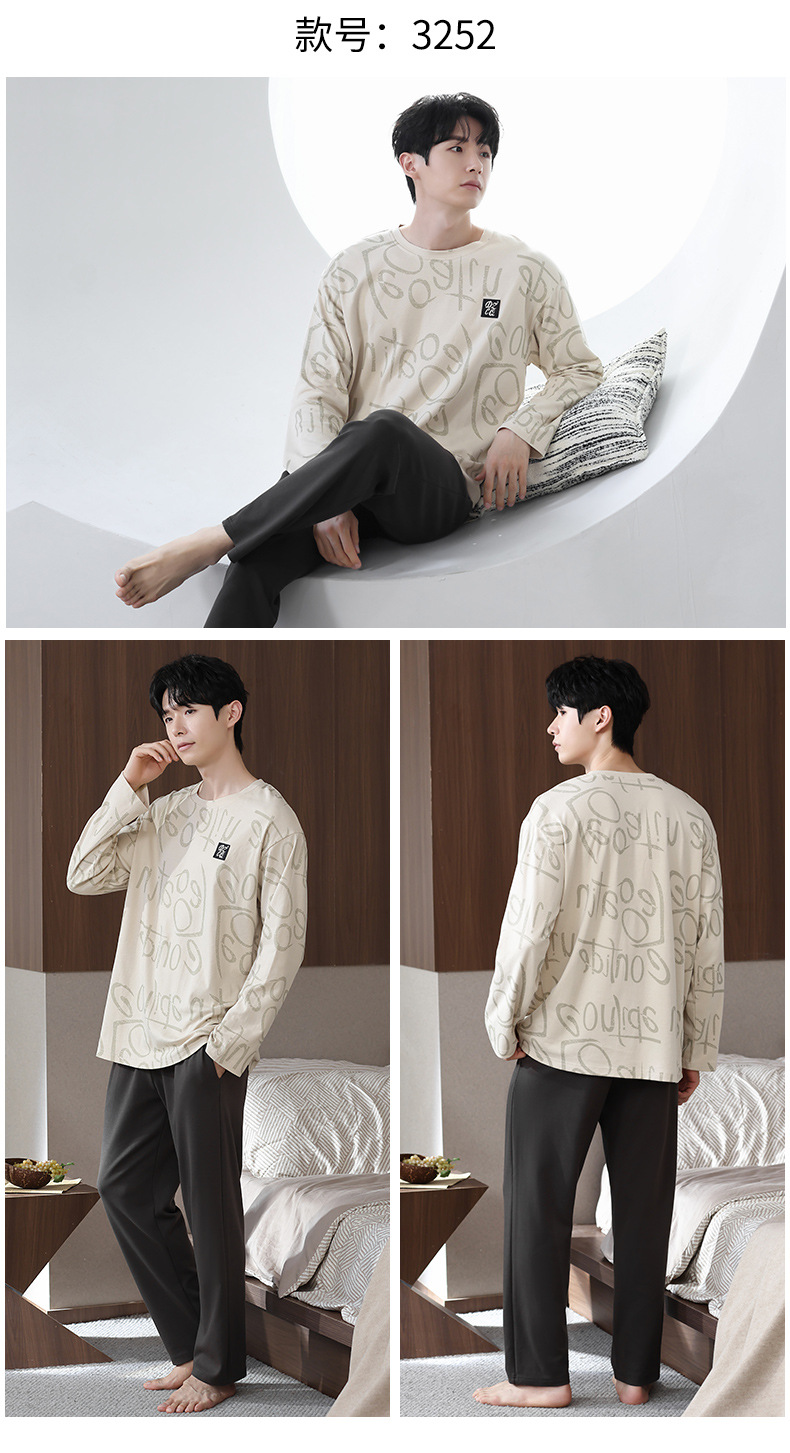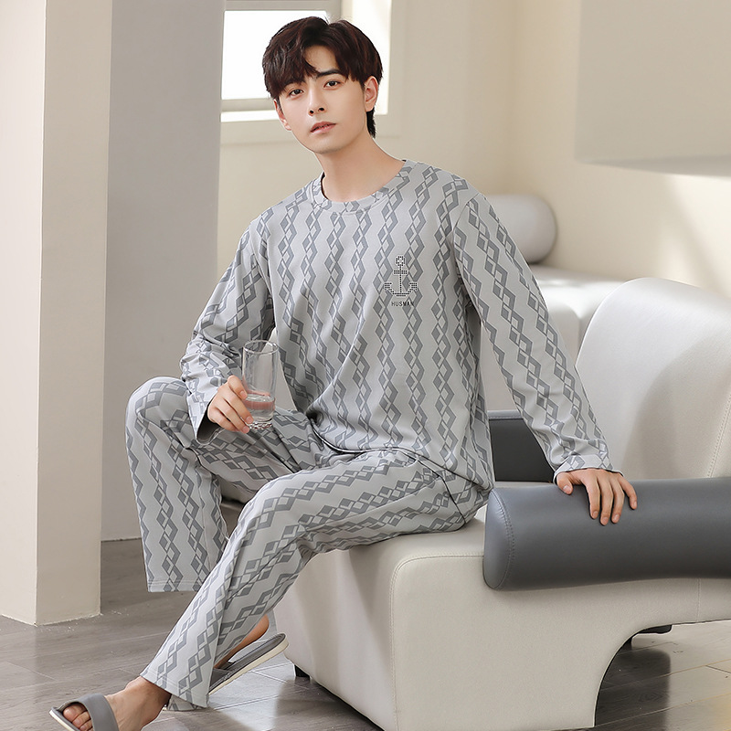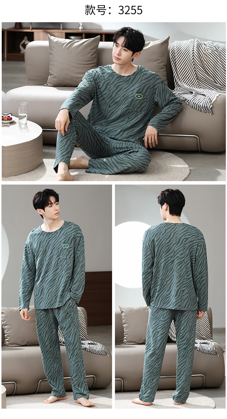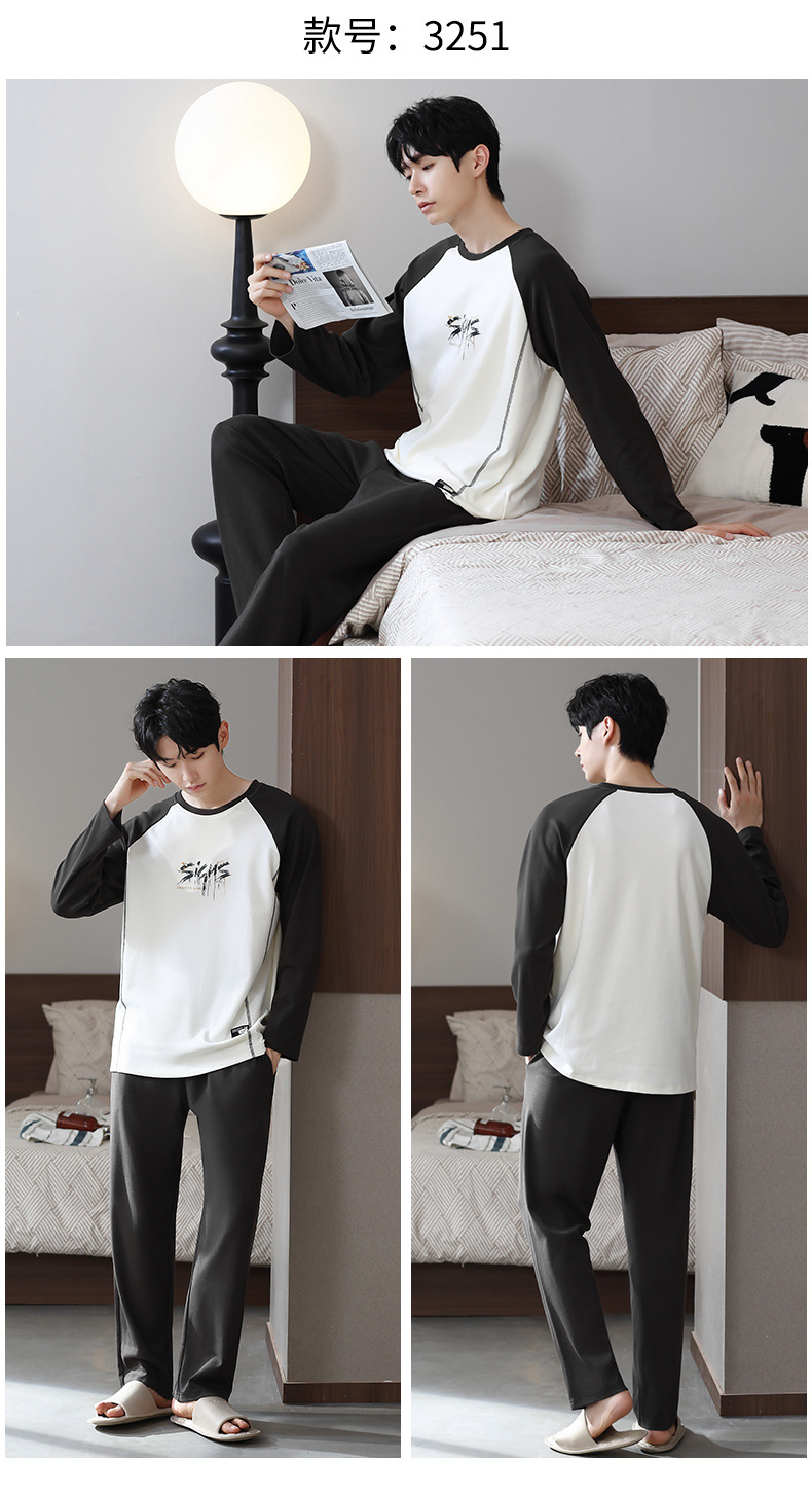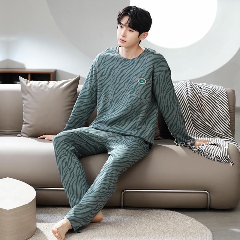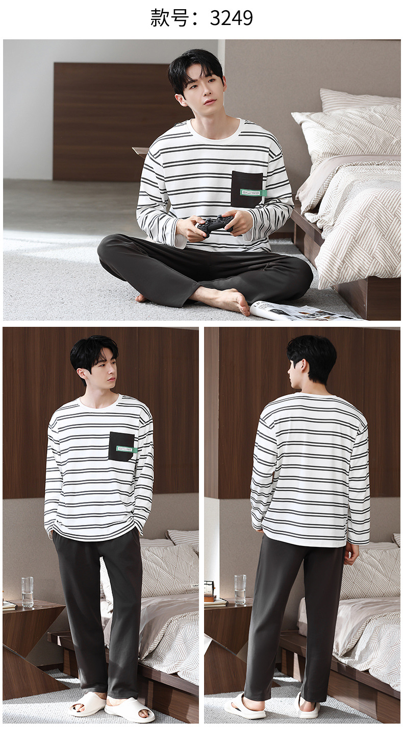 100% 양면 두꺼운 순면 남성용 잠옷 가을과 겨울 긴 소매 캐주얼 라운드 넥 아웃웨어 청소년 홈 의류 세트스토어 가기