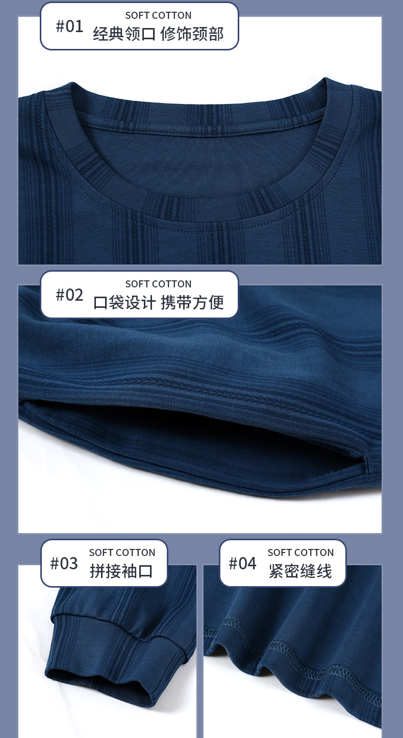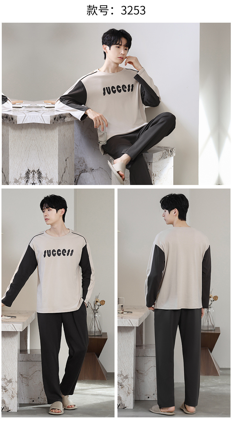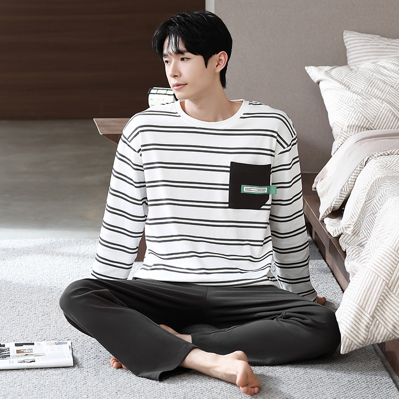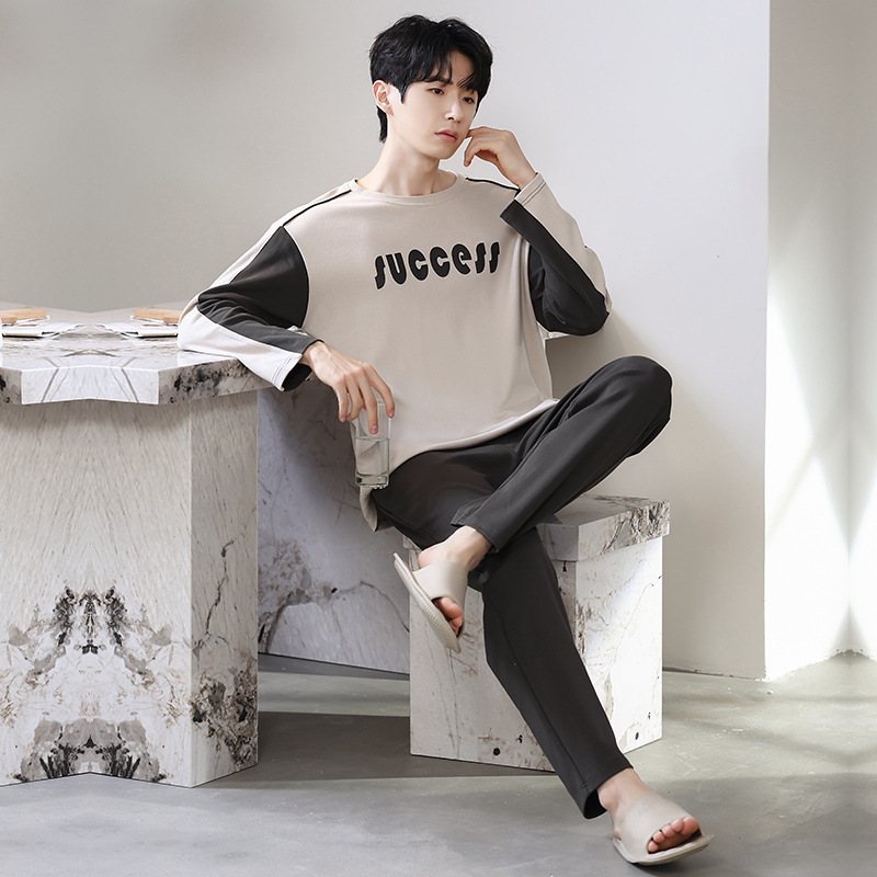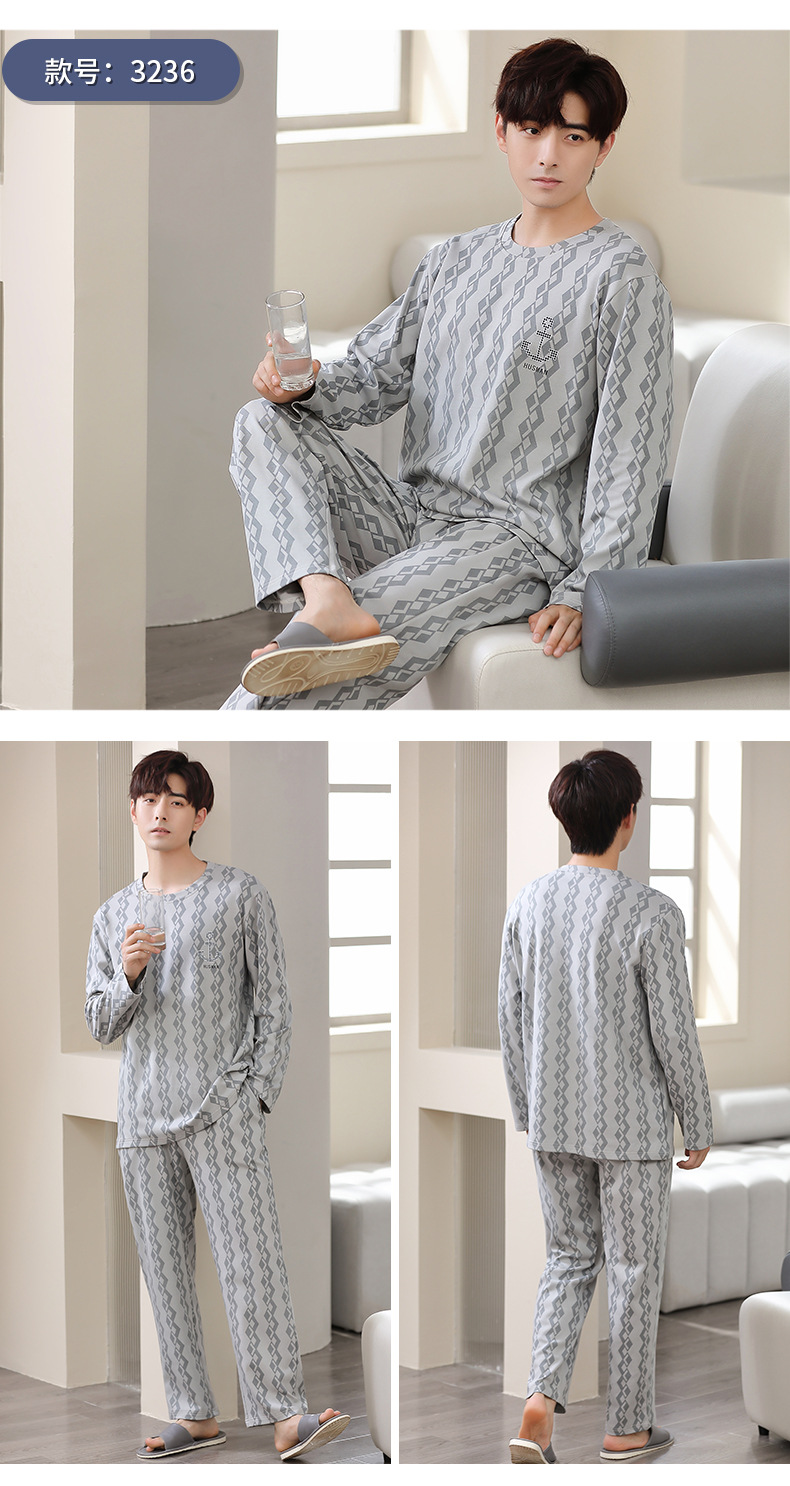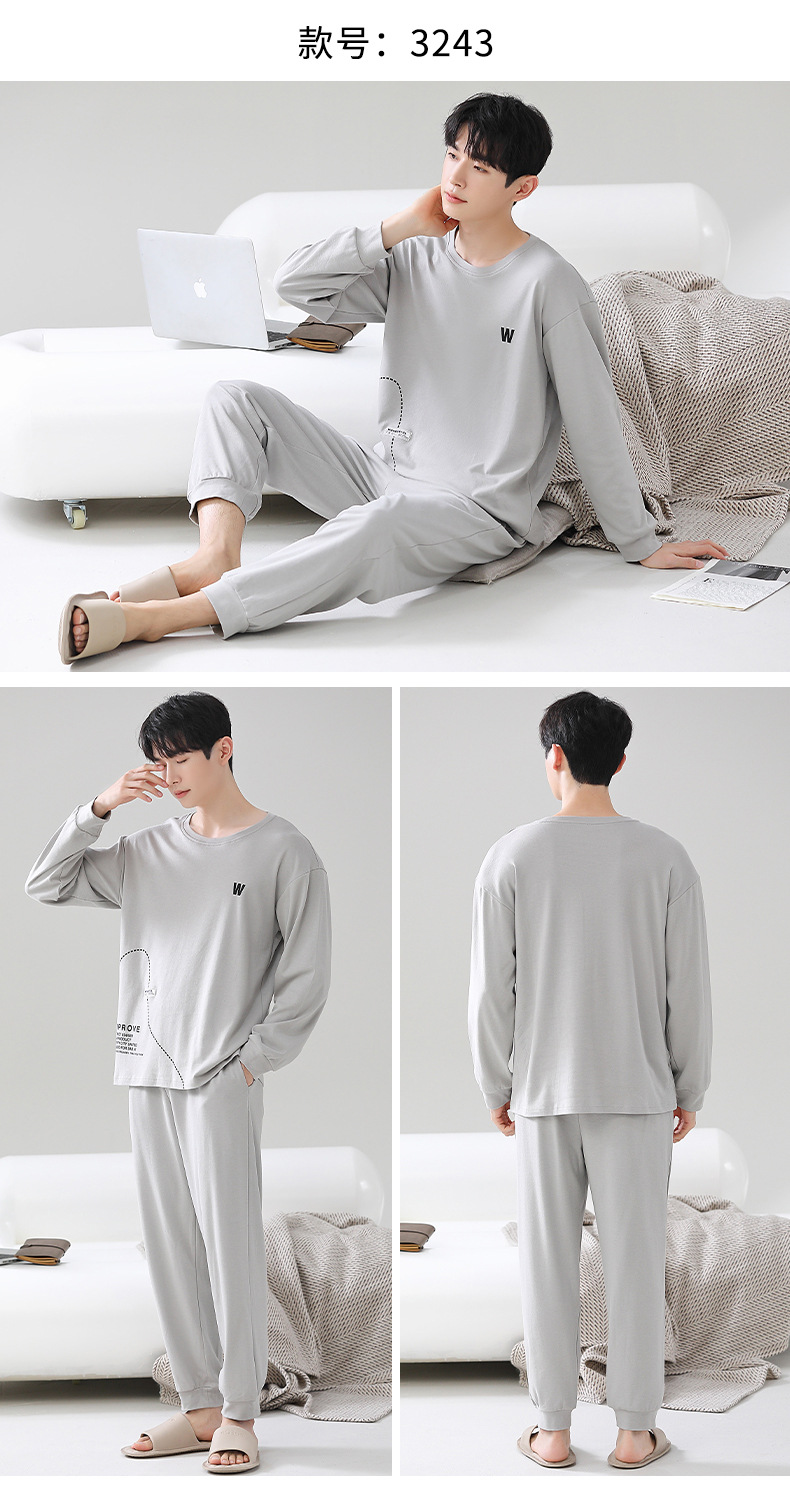 100% 양면 두꺼운 순면 남성용 잠옷 가을과 겨울 긴 소매 캐주얼 라운드 넥 아웃웨어 청소년 홈 의류 세트스토어 가기