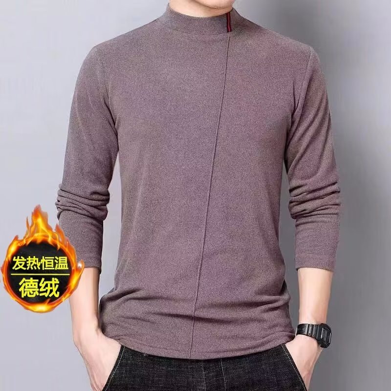 하프 하이 칼라 바닥 셔츠 남성 양면 벨벳 긴팔 티셔츠 가을과 겨울 패션 따뜻한 단색 바닥 셔츠스토어 가기