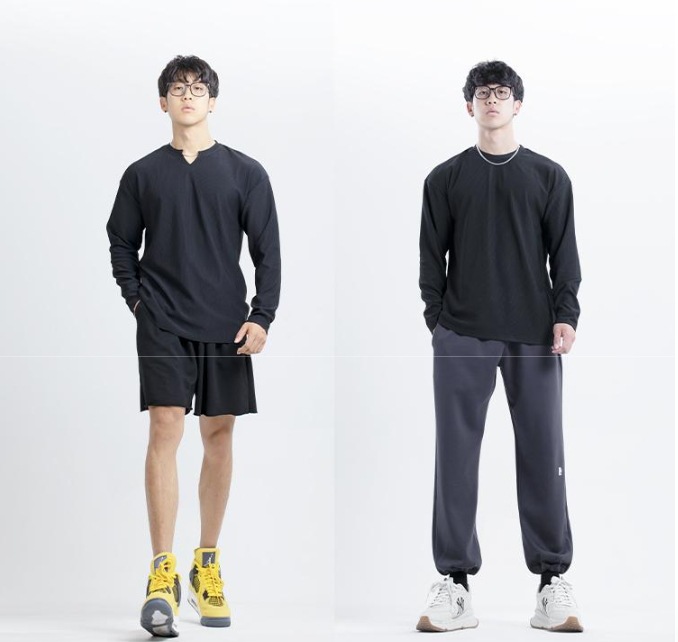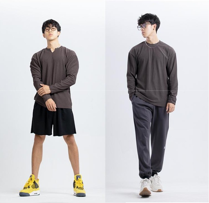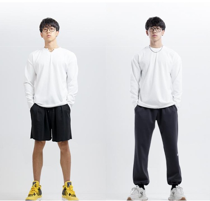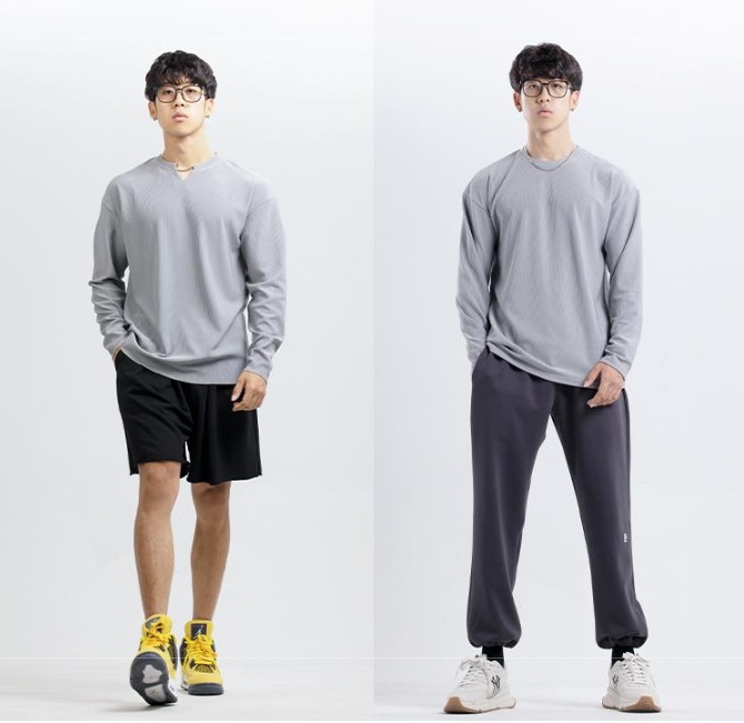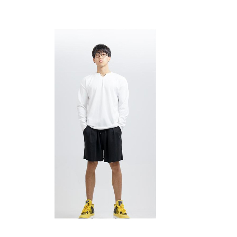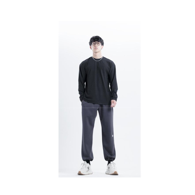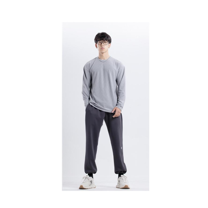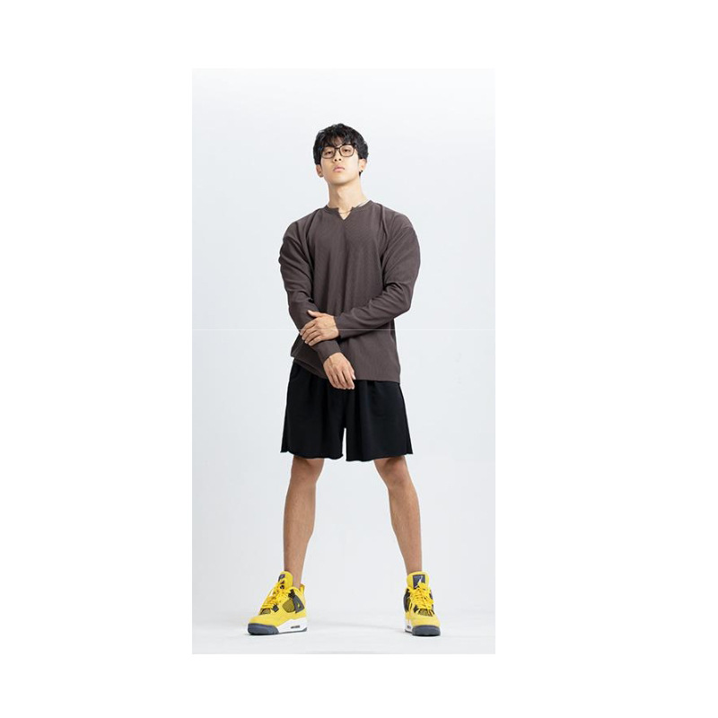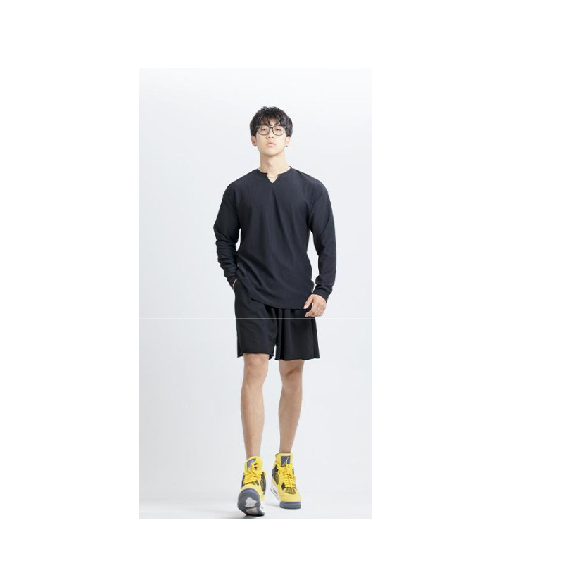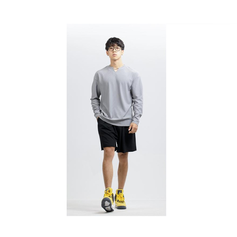 새로운 280g 무거운 패드 주름 방지 신속 건조 크루 넥 V 넥 느슨한 훈련 피트니스 스포츠 긴 소매 남성