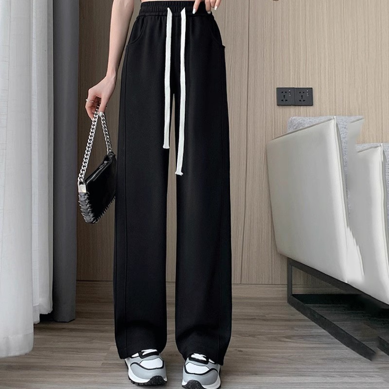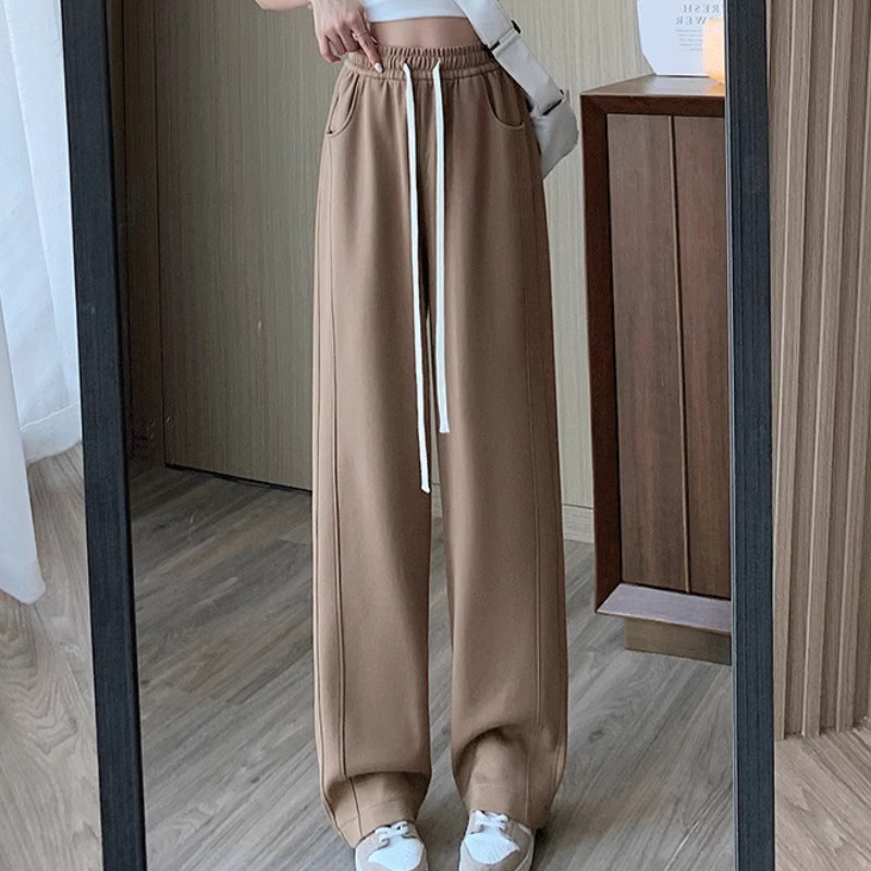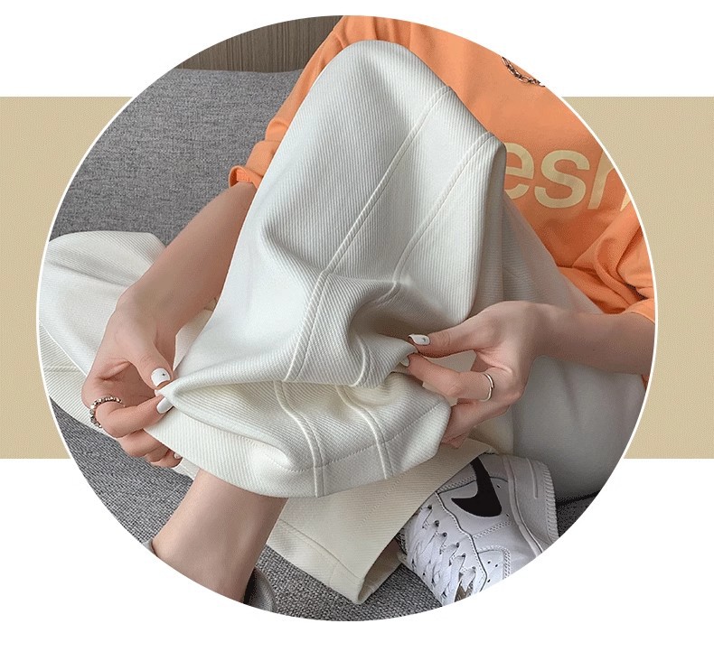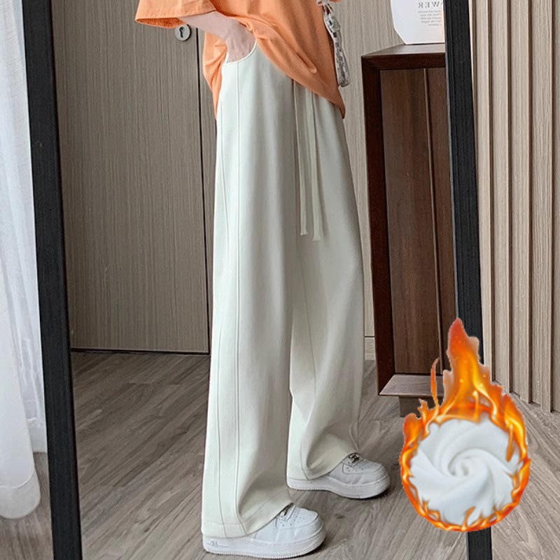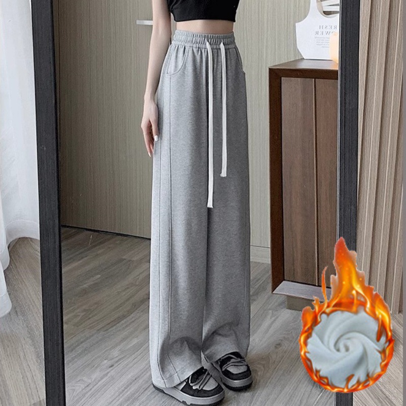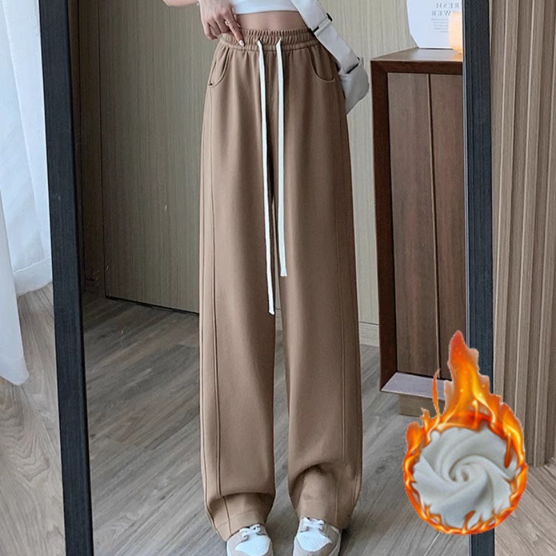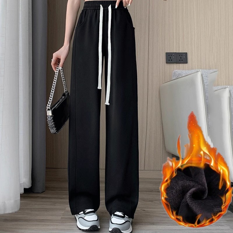 [기모/정사이즈] 플러스 사이즈 통통한 자매 스트레이트 다리 바지 가을/겨울 침빙 연령 감소 올 매치 와이드 레그 여자 바지