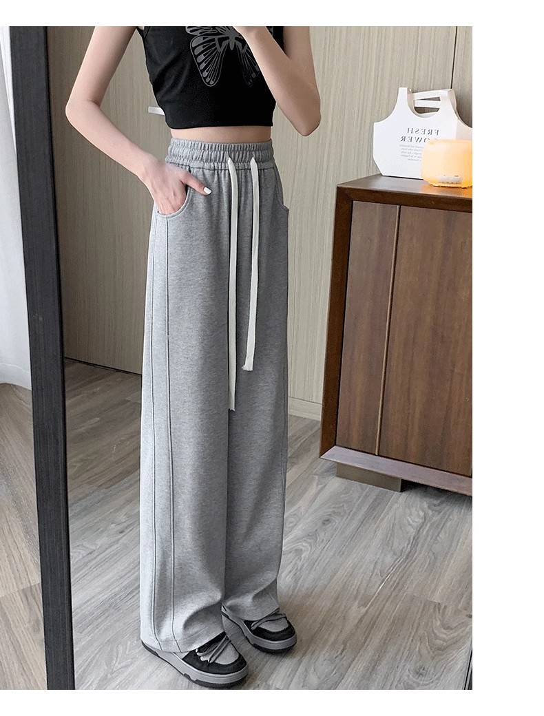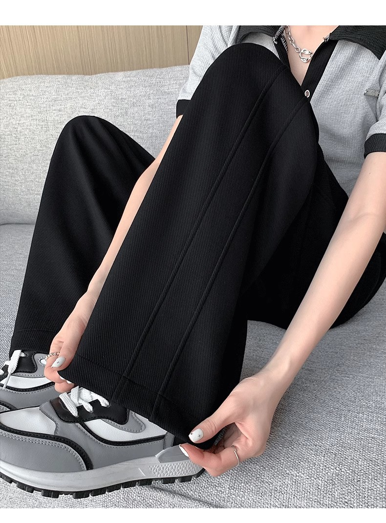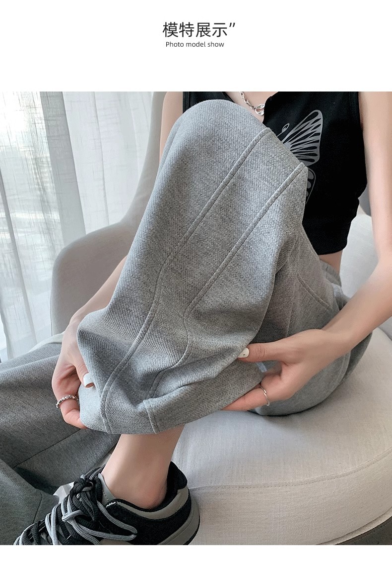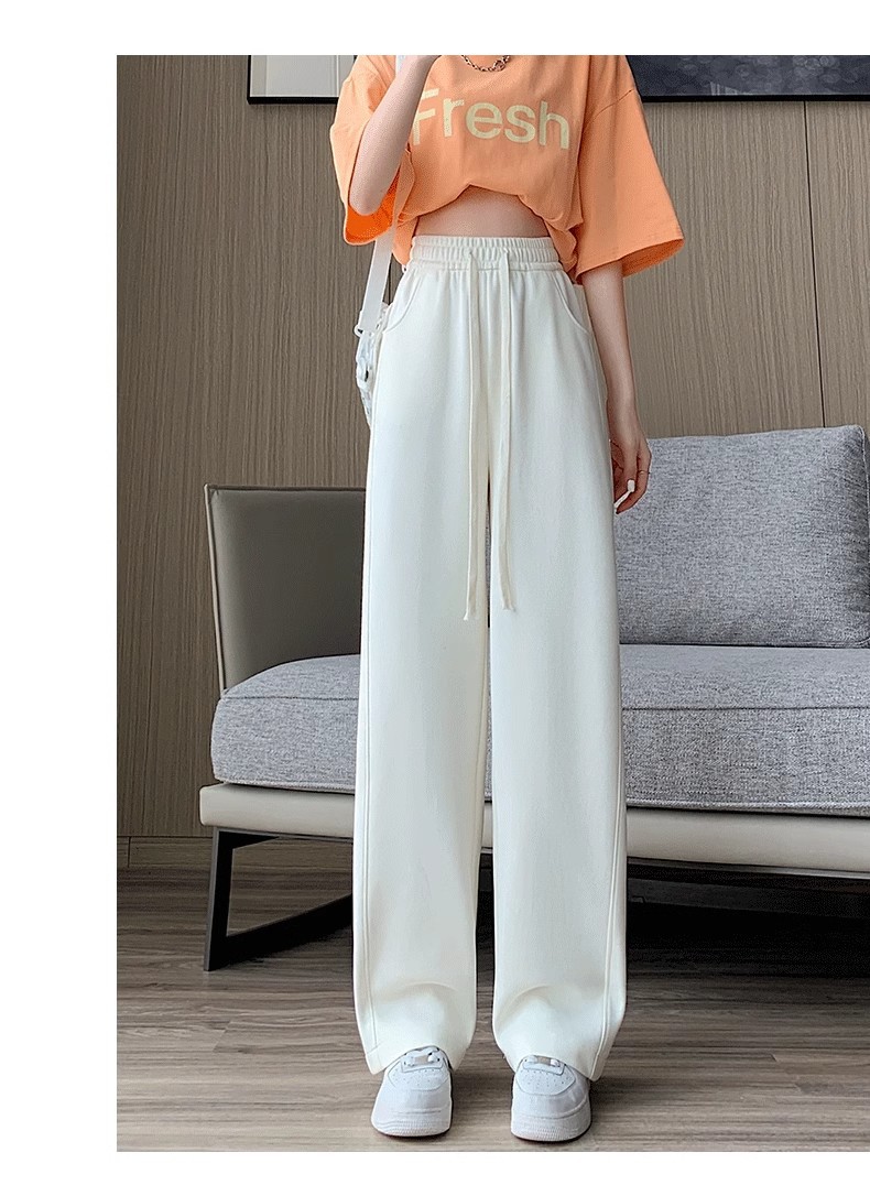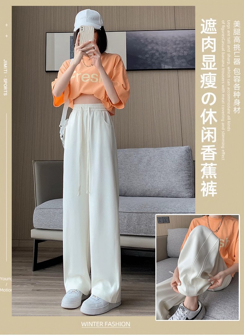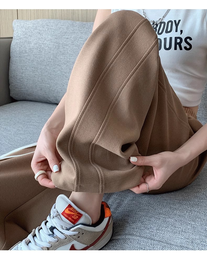[기모/정사이즈] 플러스 사이즈 통통한 자매 스트레이트 다리 바지 가을/겨울 침빙 연령 감소 올 매치 와이드 레그 여자 바지