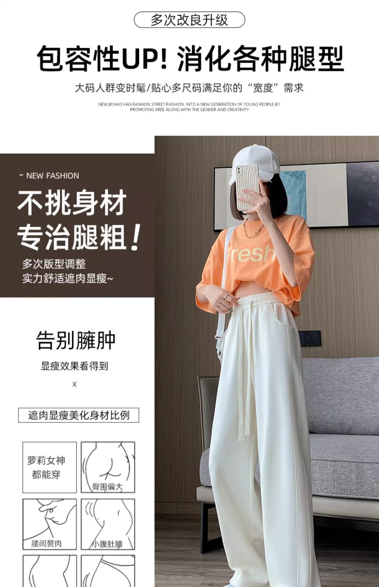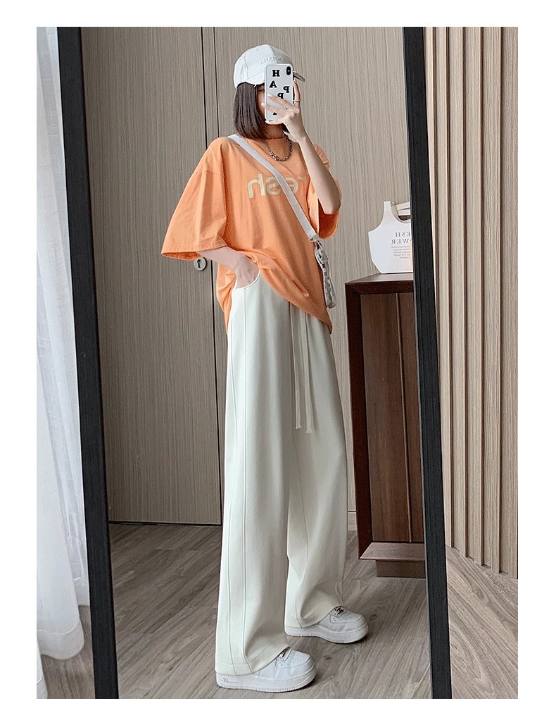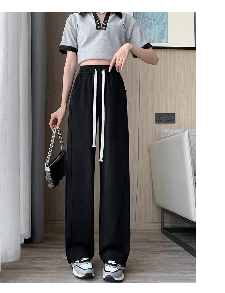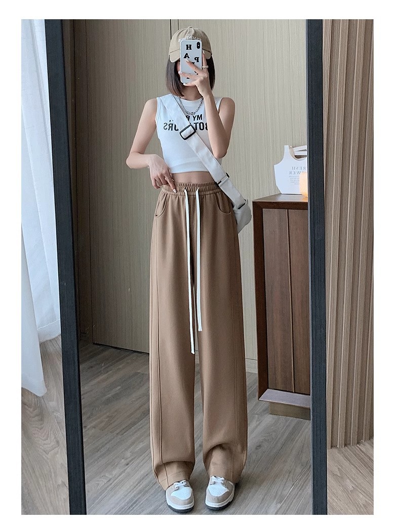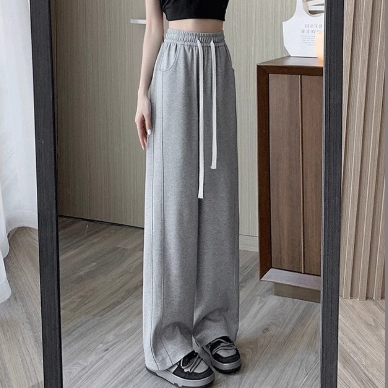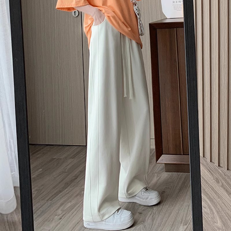 [기모/정사이즈] 플러스 사이즈 통통한 자매 스트레이트 다리 바지 가을/겨울 침빙 연령 감소 올 매치 와이드 레그 여자 바지