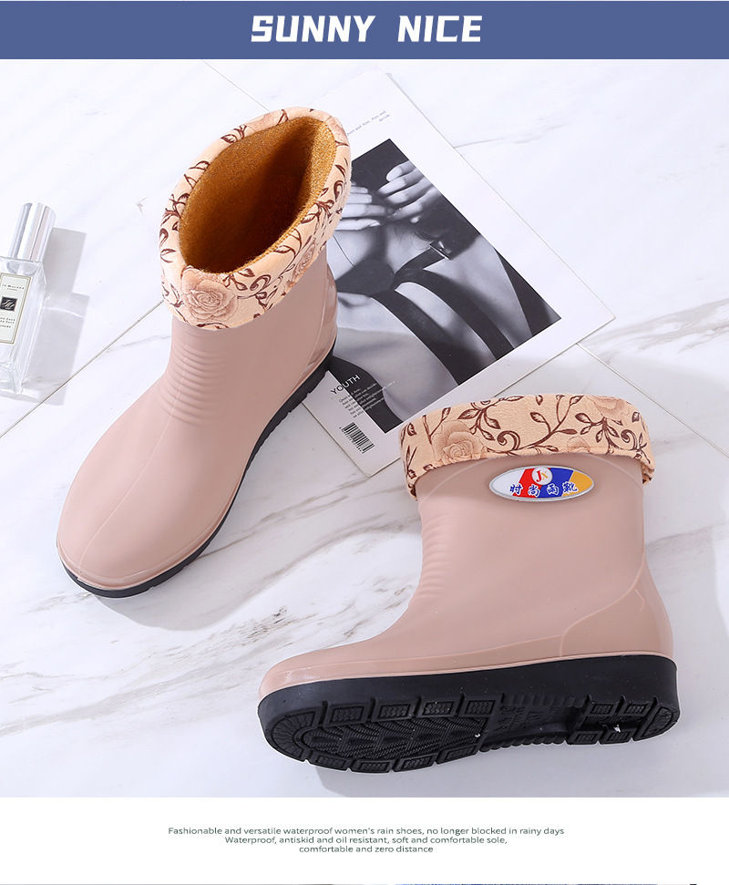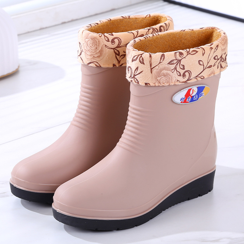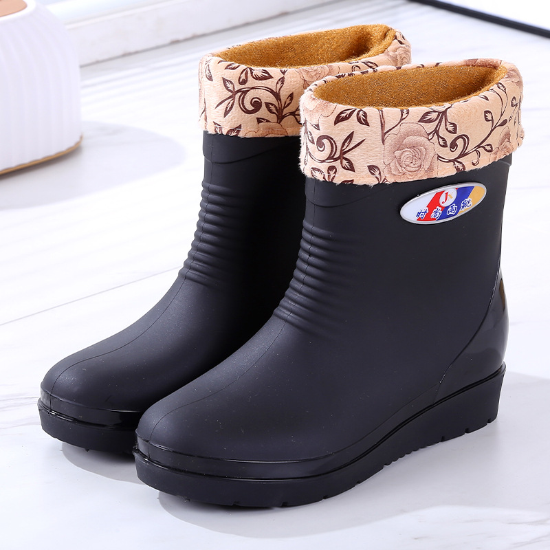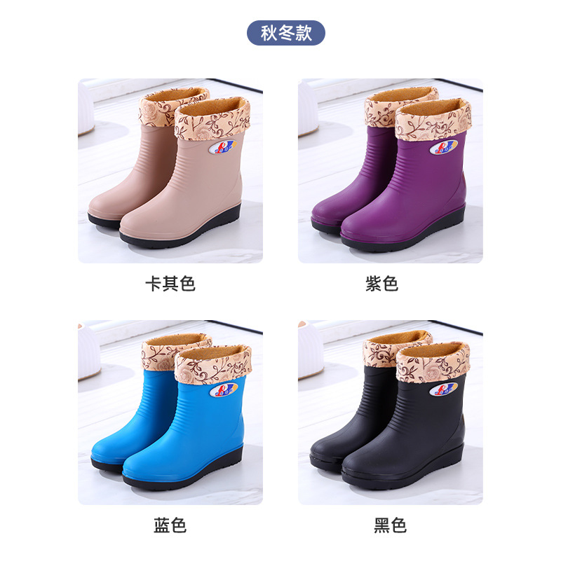 패션 장화 여성 따뜻한 가을과 겨울 장화 비 슬립 여성용 물 신발 짧은 튜브 고무 신발 성인 기모 도매스토어 가기