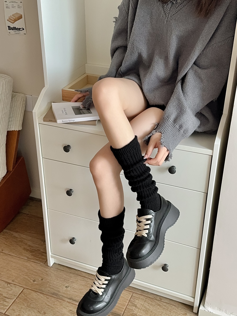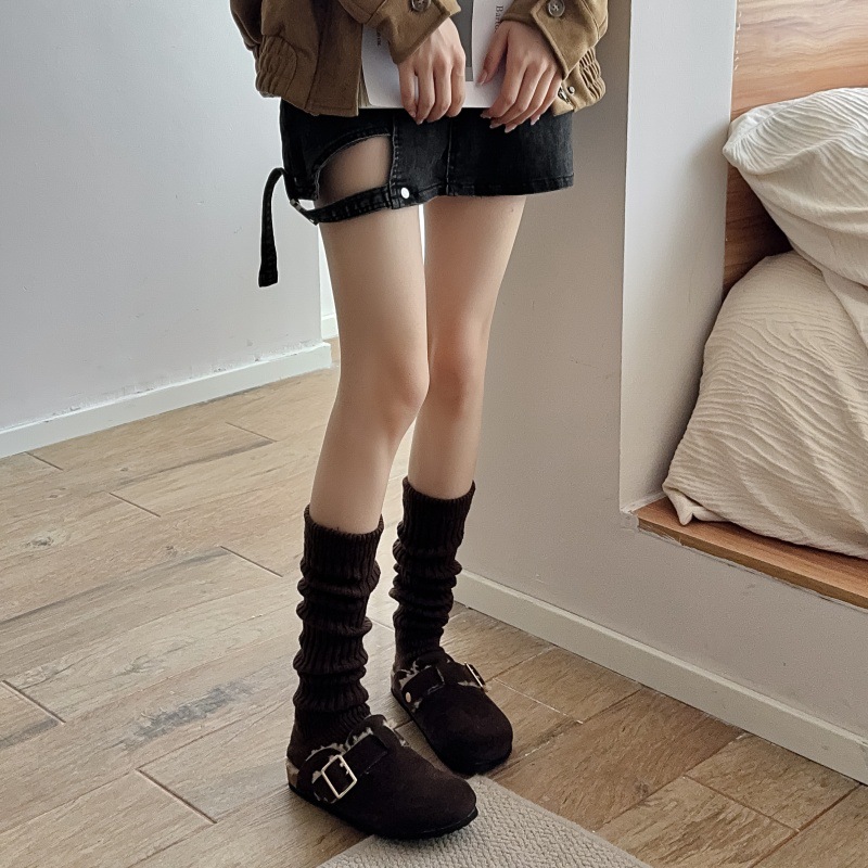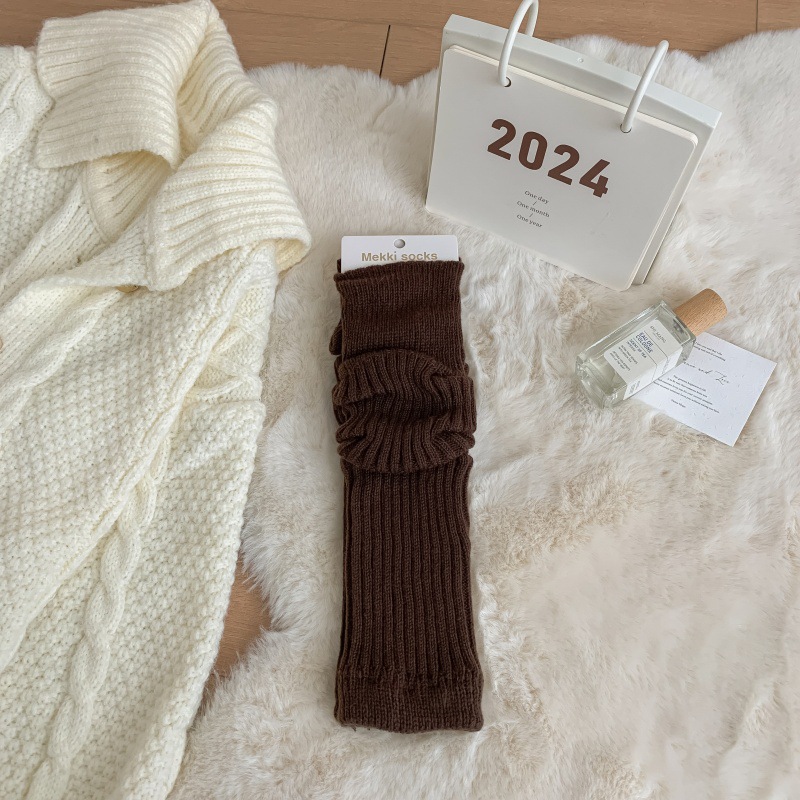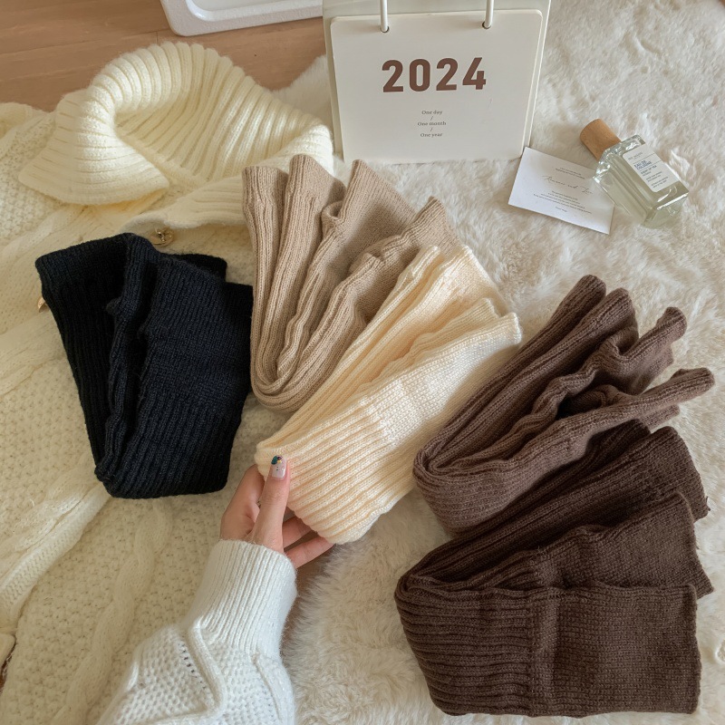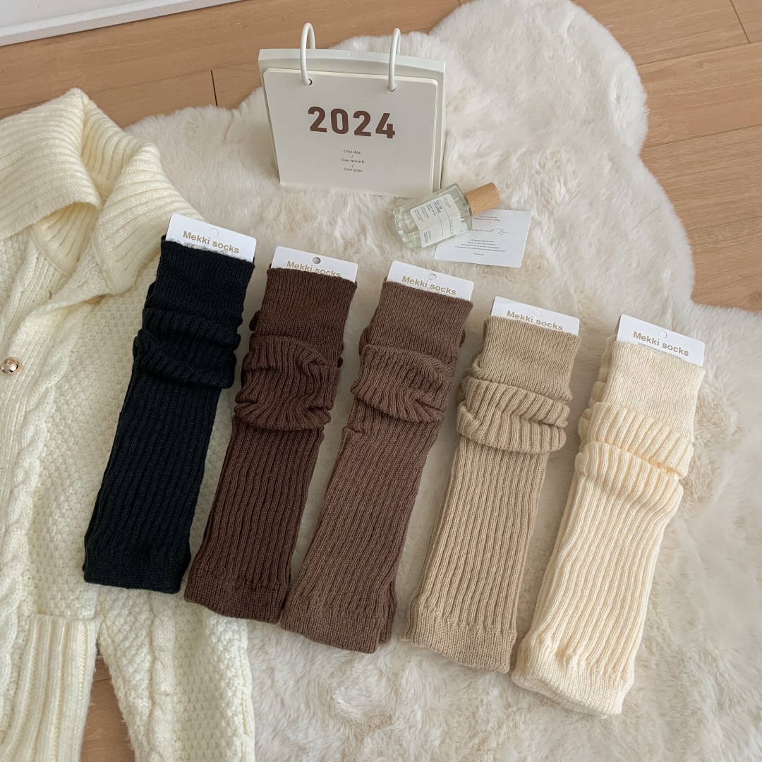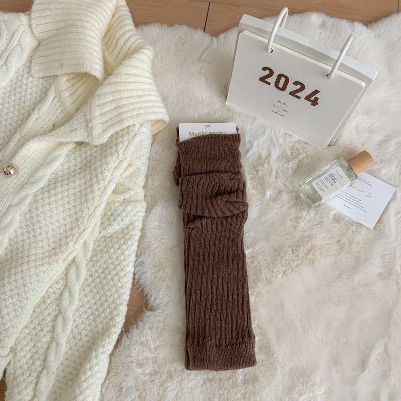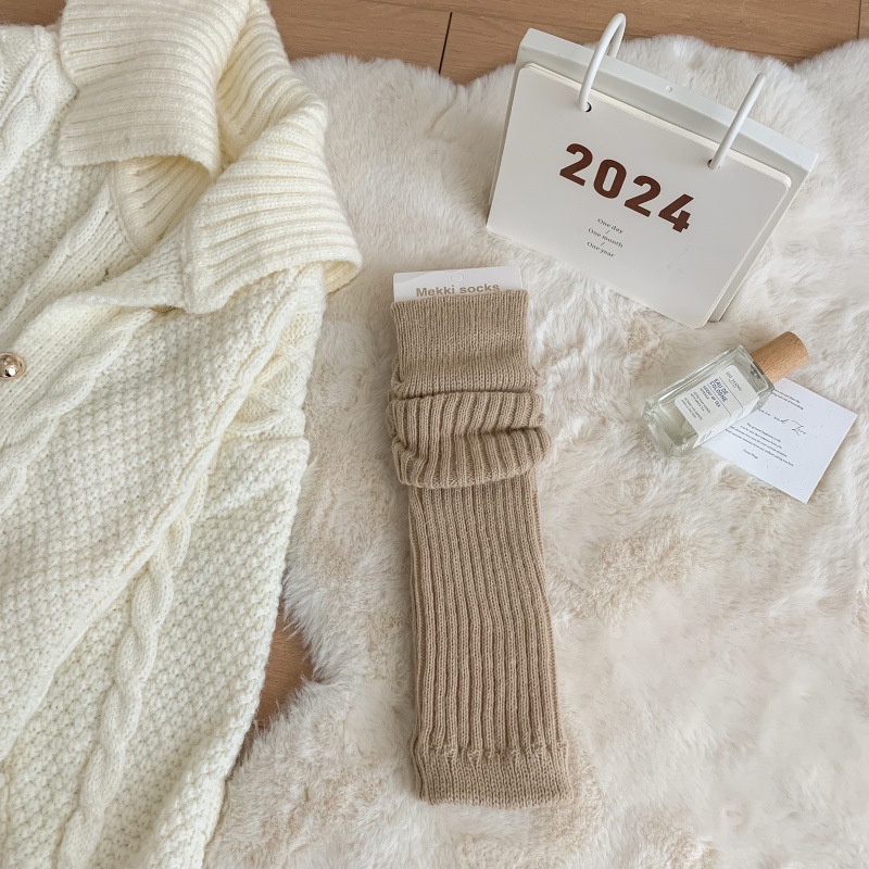 모조 울 단색 양말 가을 겨울용 스노우 부츠와 함께 일본식 롱 양말 따뜻한 회갈색 니트 여성 양말스토어 가기