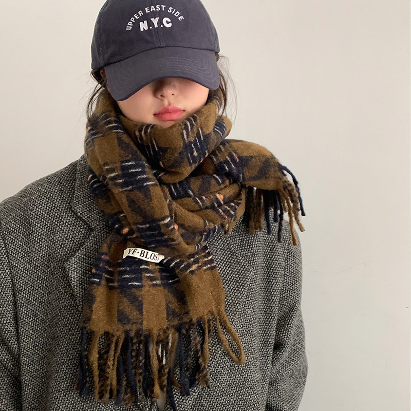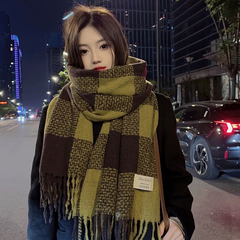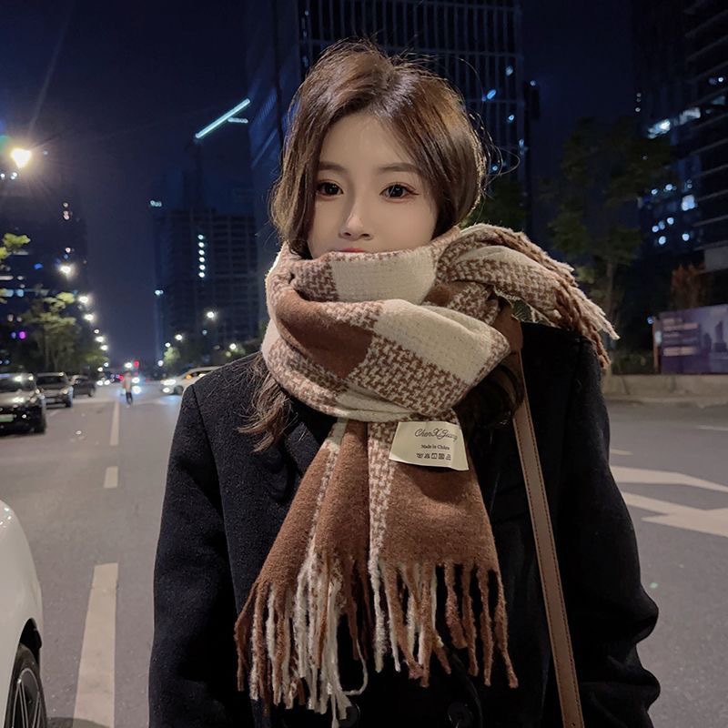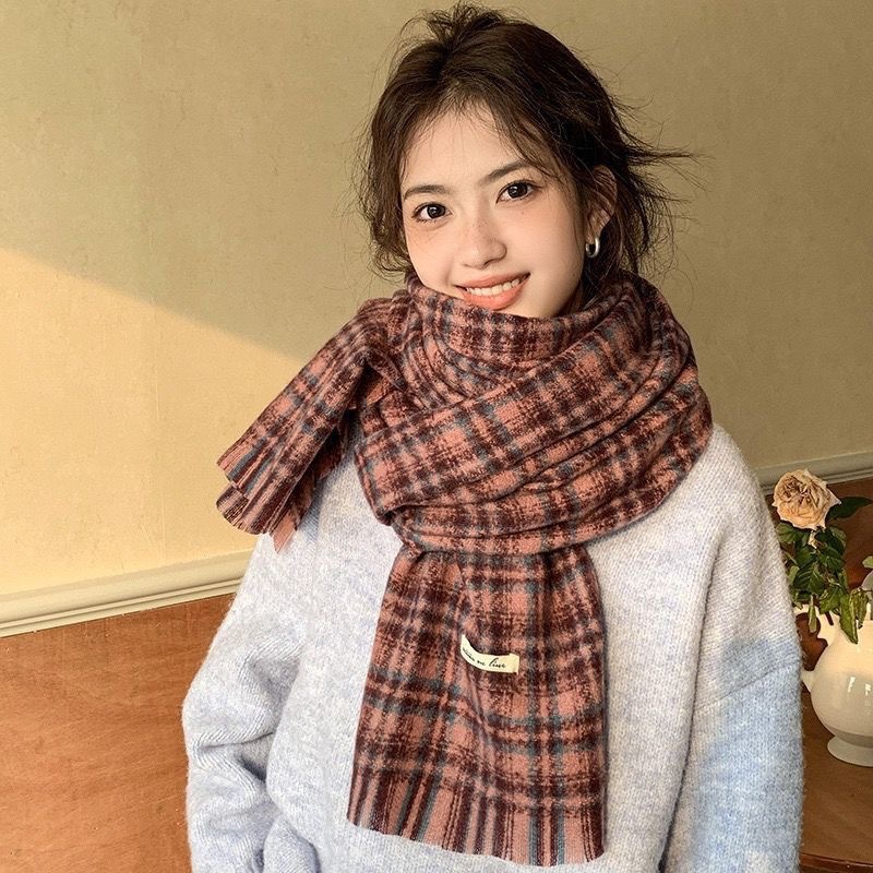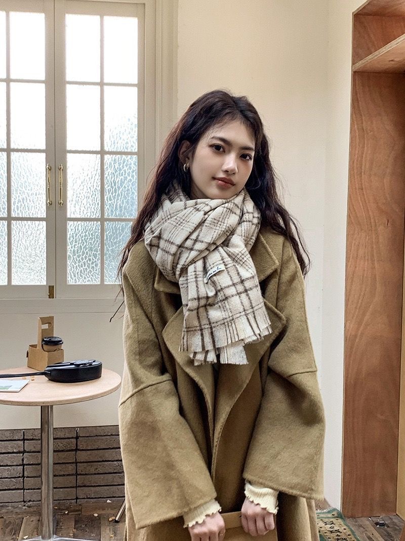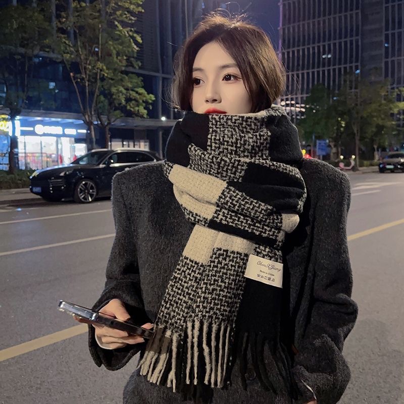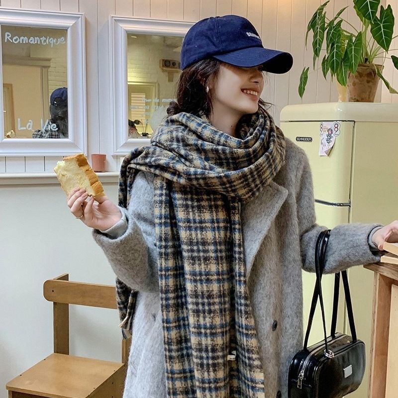 격자 무늬 스카프 여자 겨울 따뜻한 2024 새로운 올매치 한국 드라마 여자 하이 엔드 니트 양모 목도리 스카프스토어 가기