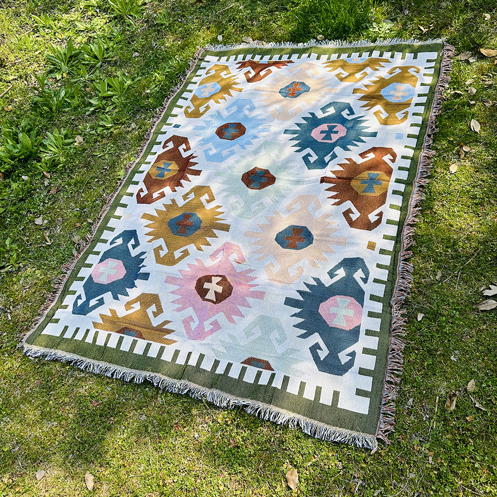 RV 캠핑 피크닉 매트 댐프 방지 매트 두꺼운 내부 스타일 야외 매트 캠핑 피크닉 천 보헤미안 카펫