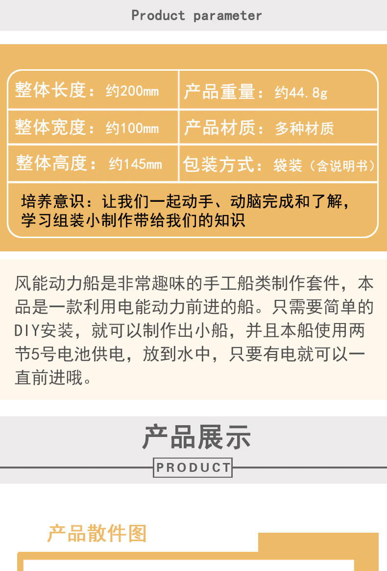 그림 속 밀밭 바람력 구동 선박 초중등학생 조립 STEM 교육 과학 실험 교구 모형 소형 제작
