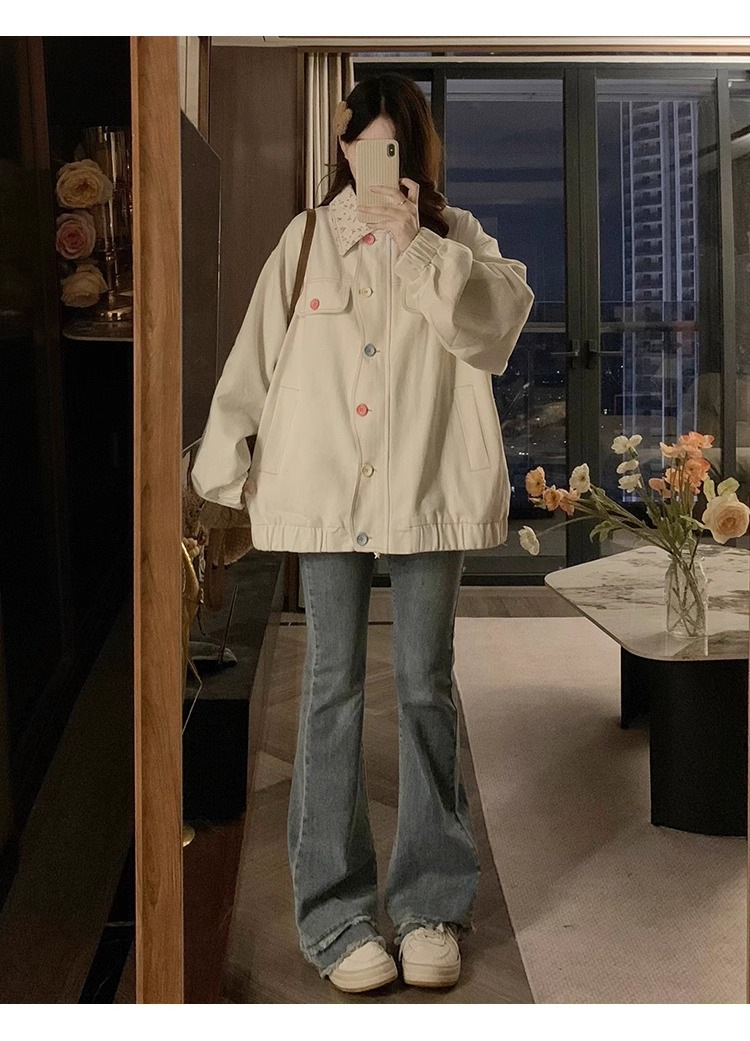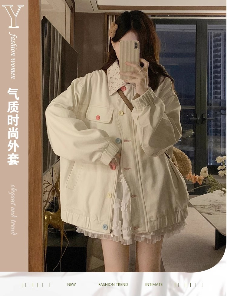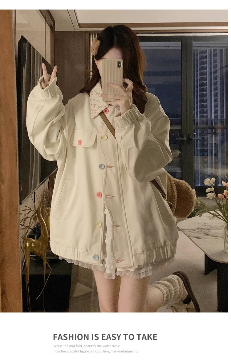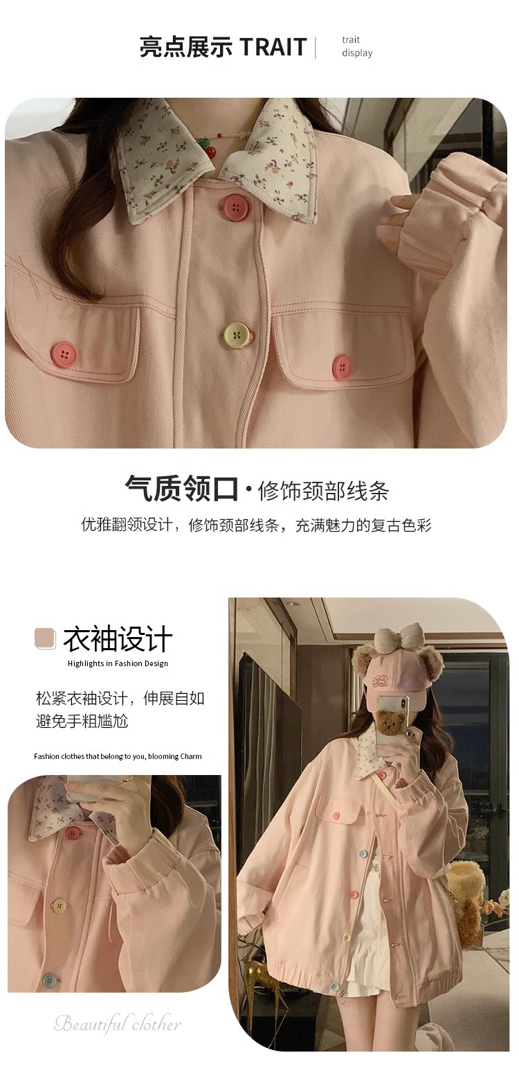 새로운 달콤한 꽃 옷깃 코트 여성의 2024 가을 Ins 다채로운 버클 루즈 올 매치 재킷 탑 패션스토어 가기