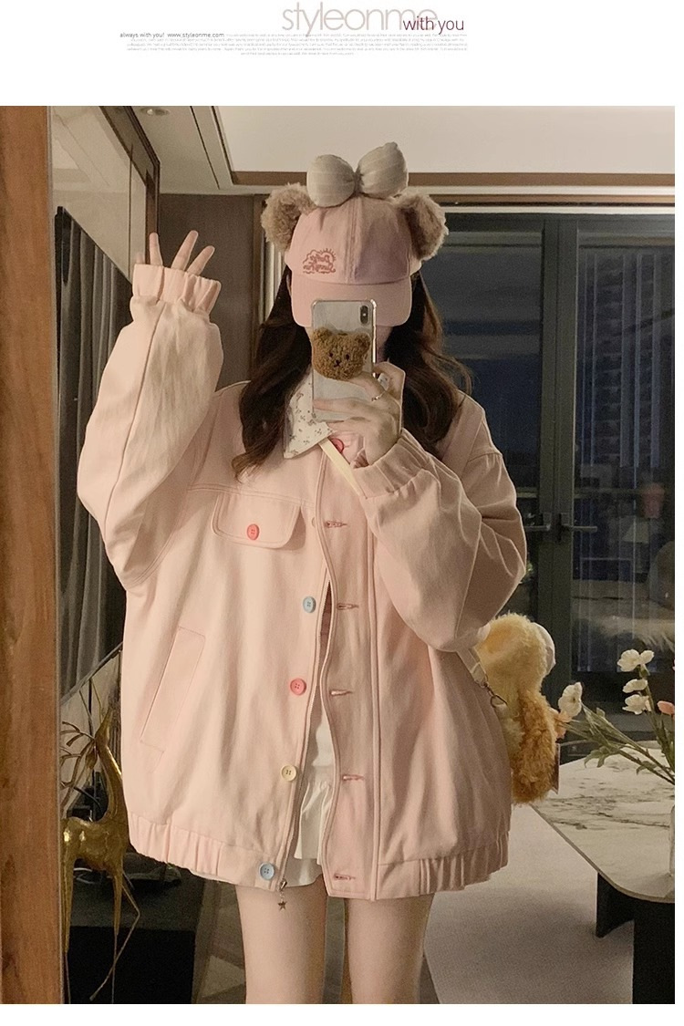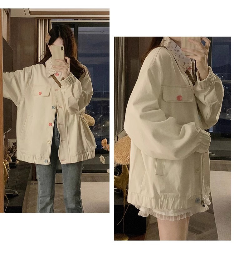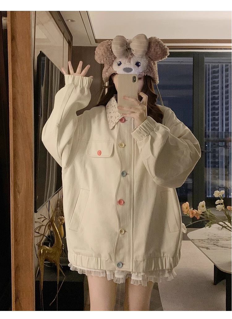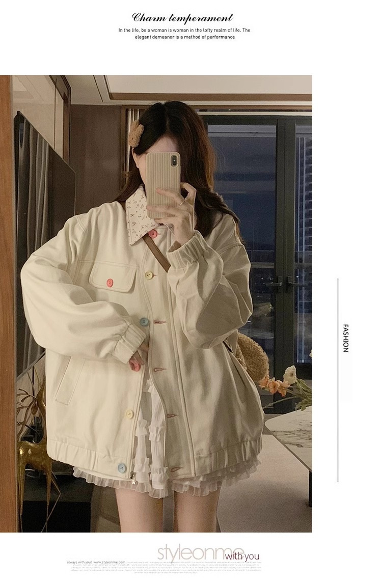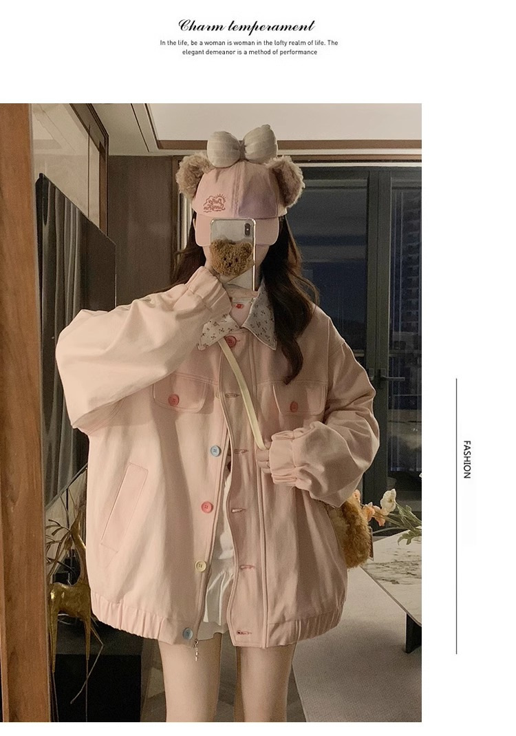 새로운 달콤한 꽃 옷깃 코트 여성의 2024 가을 Ins 다채로운 버클 루즈 올 매치 재킷 탑 패션스토어 가기