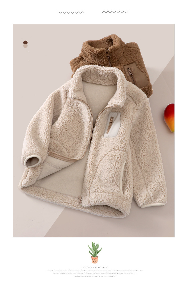 어린이 양고기 양털 코트 기모 두꺼운 중대형 어린이 양털 따뜻한 방풍 부모-어린이 스탠드 칼라 따뜻한 코트