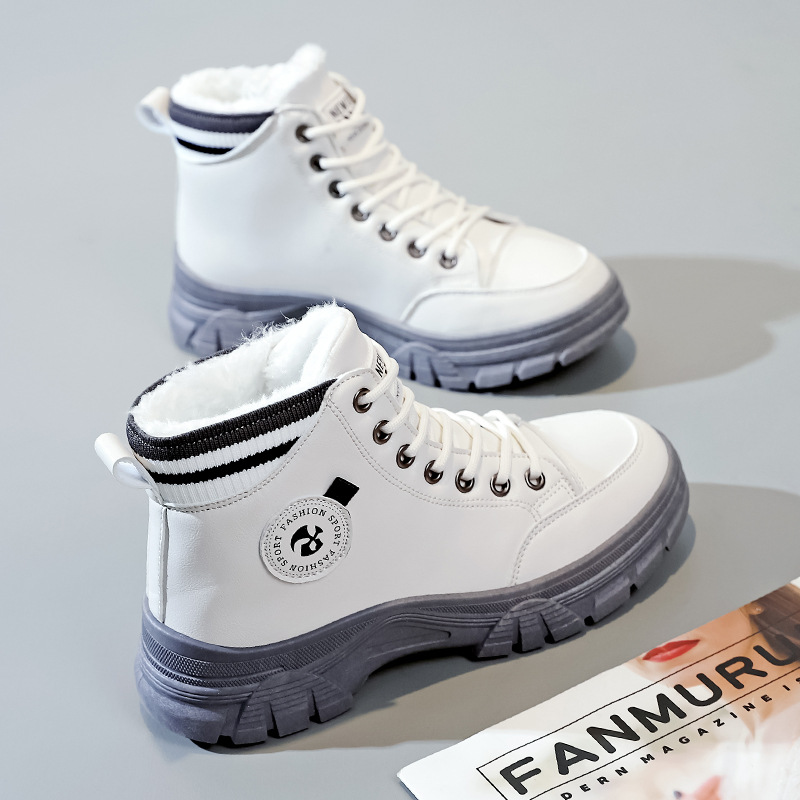 2024 겨울 새로운 마틴 부츠 여성 기모 따뜻한 가죽 캐주얼 신발 내마모성 짧은 부츠 올 매치 여성 신발 7718