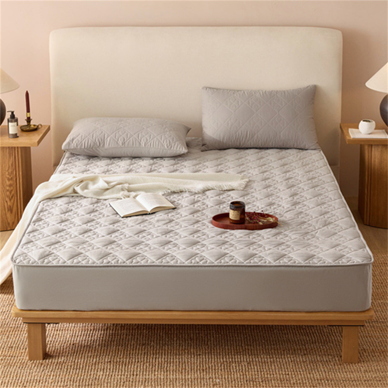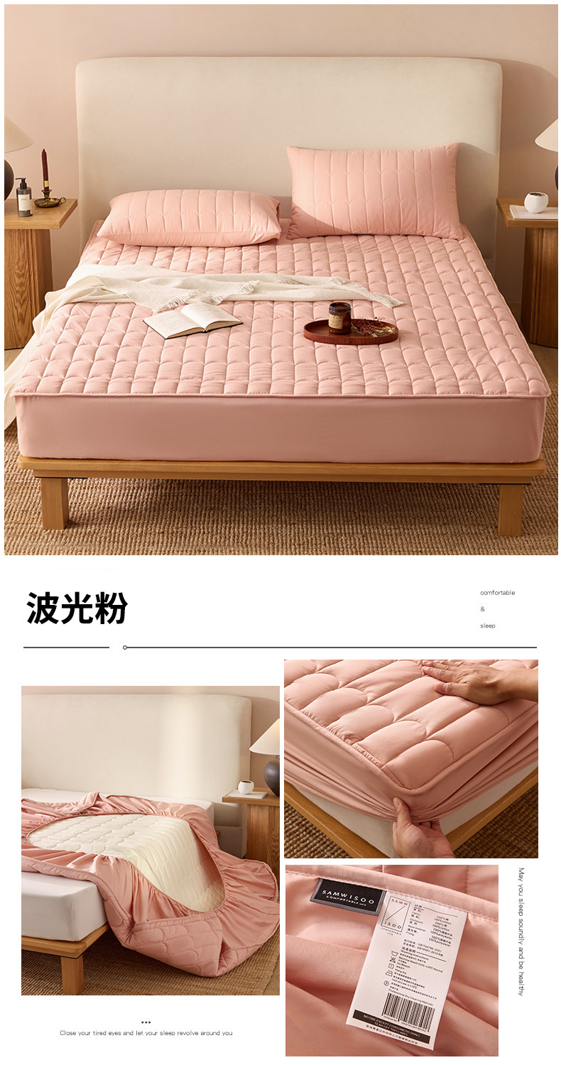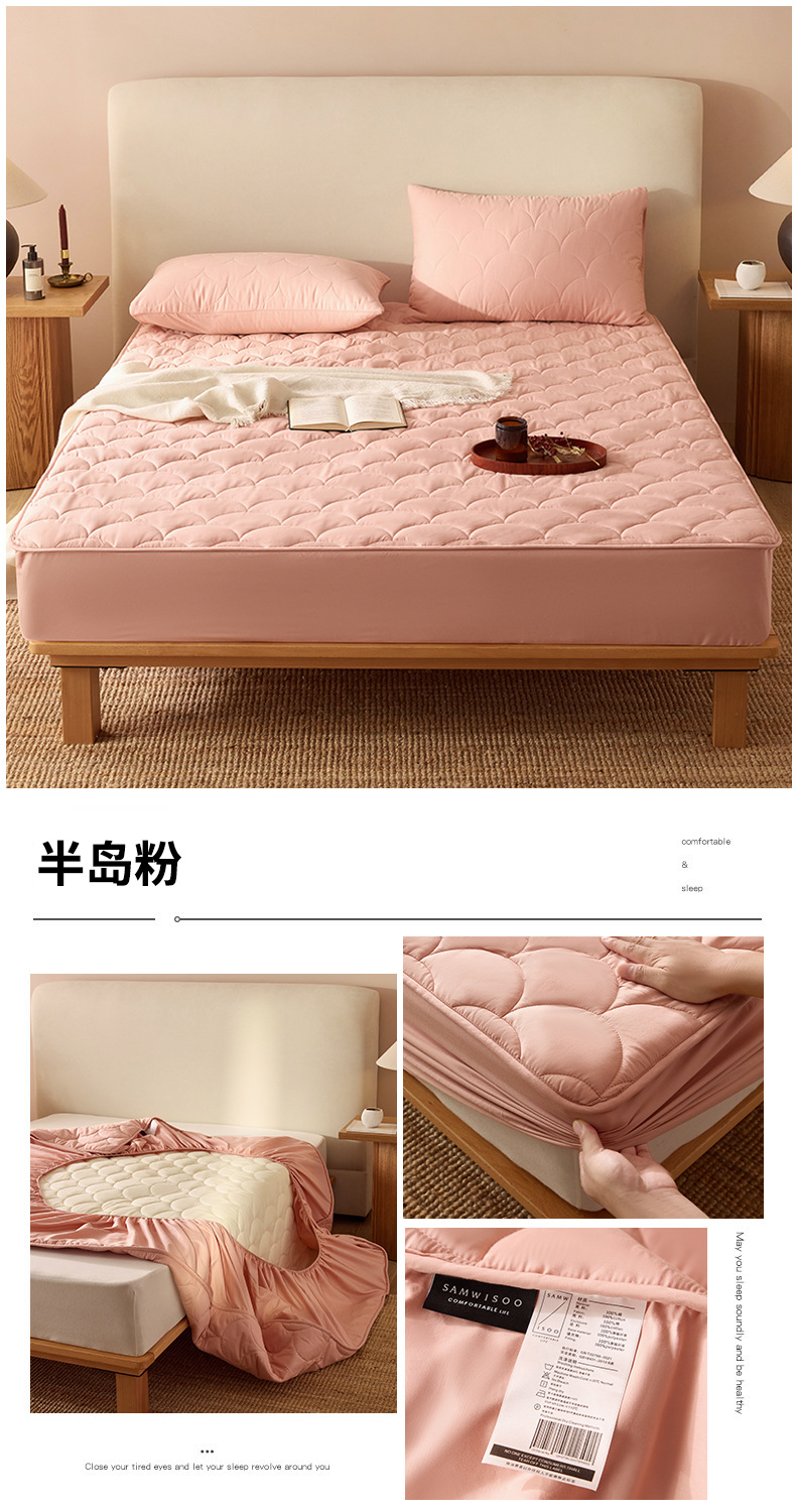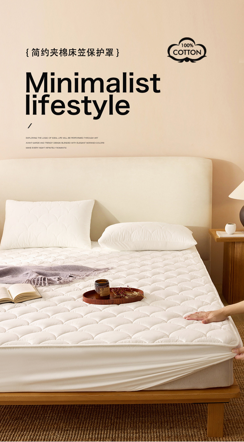 단순한면 퀼트 침대 모자 싱글 피스 100 면 모든 것을 포함하는 침대보 매트리스 프로텍터 미끄럼 방지 침대 커버스토어 가기
