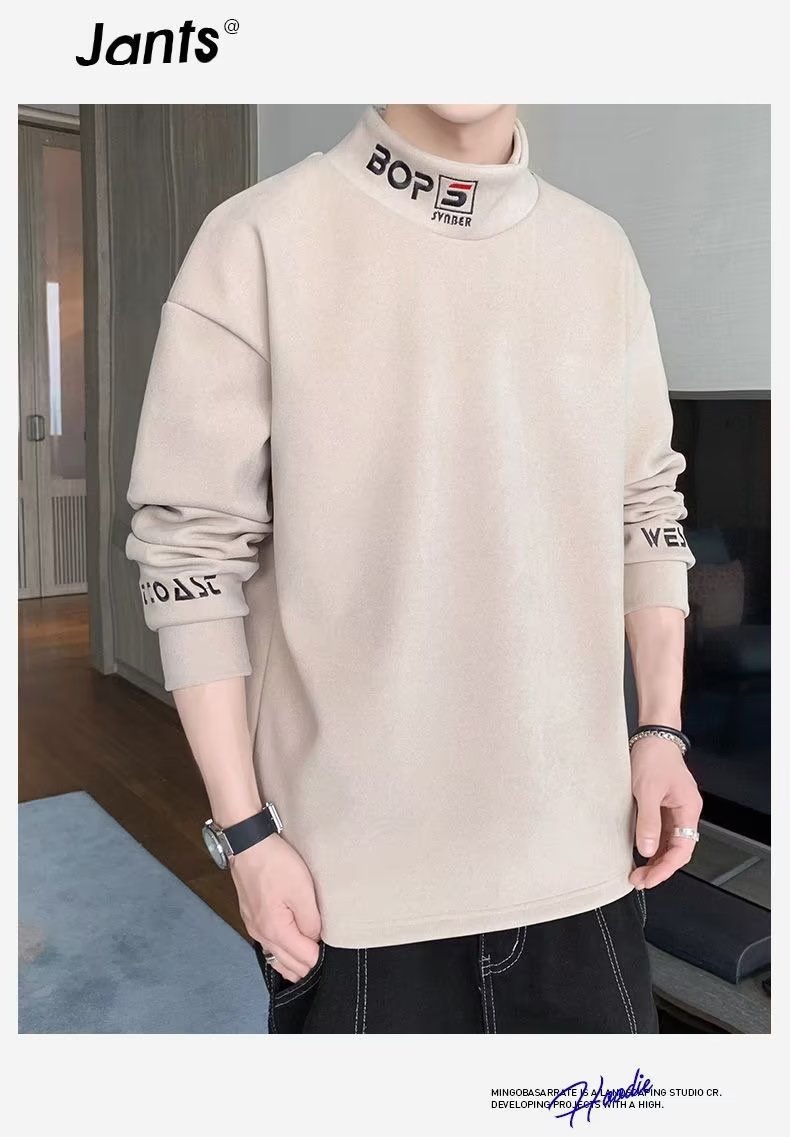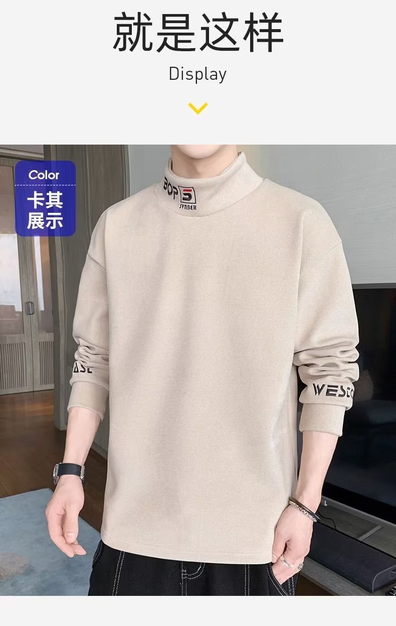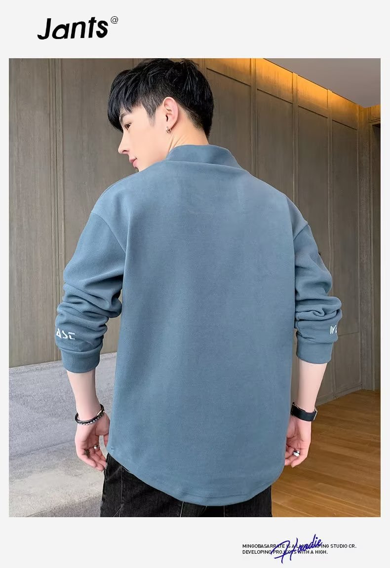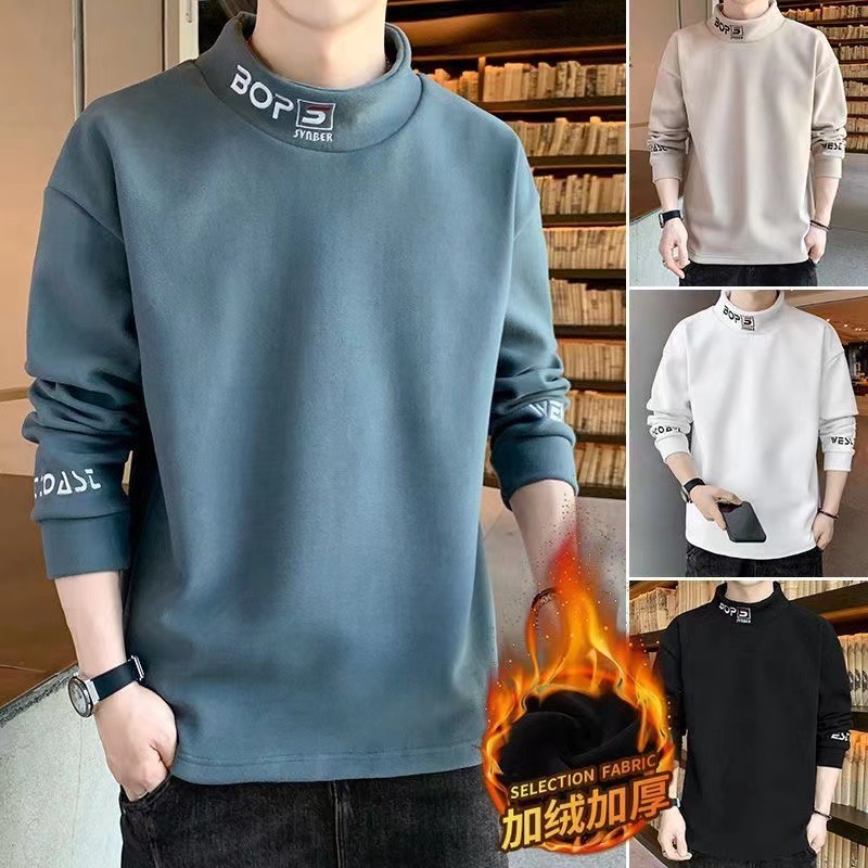 가을과 겨울 남성 양면 벨벳 스웨터 긴팔 티셔츠 세미 하이 칼라베이스 셔츠가 두껍게 된 청소년 캐주얼 따뜻한 재킷스토어 가기