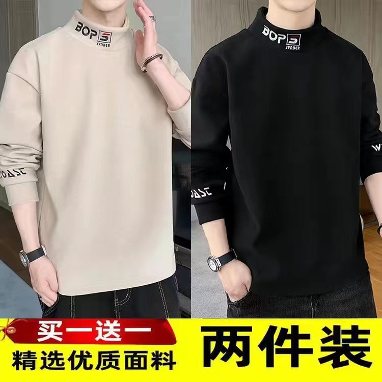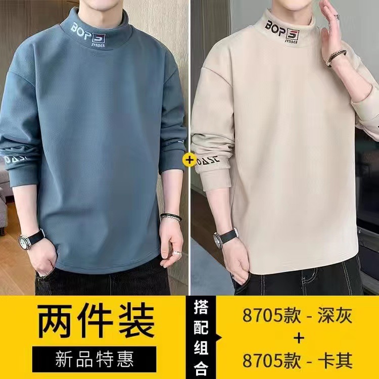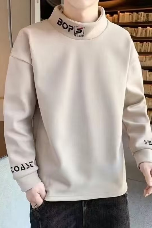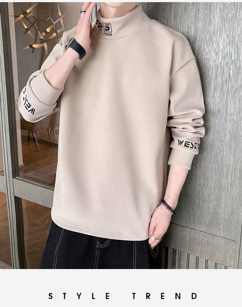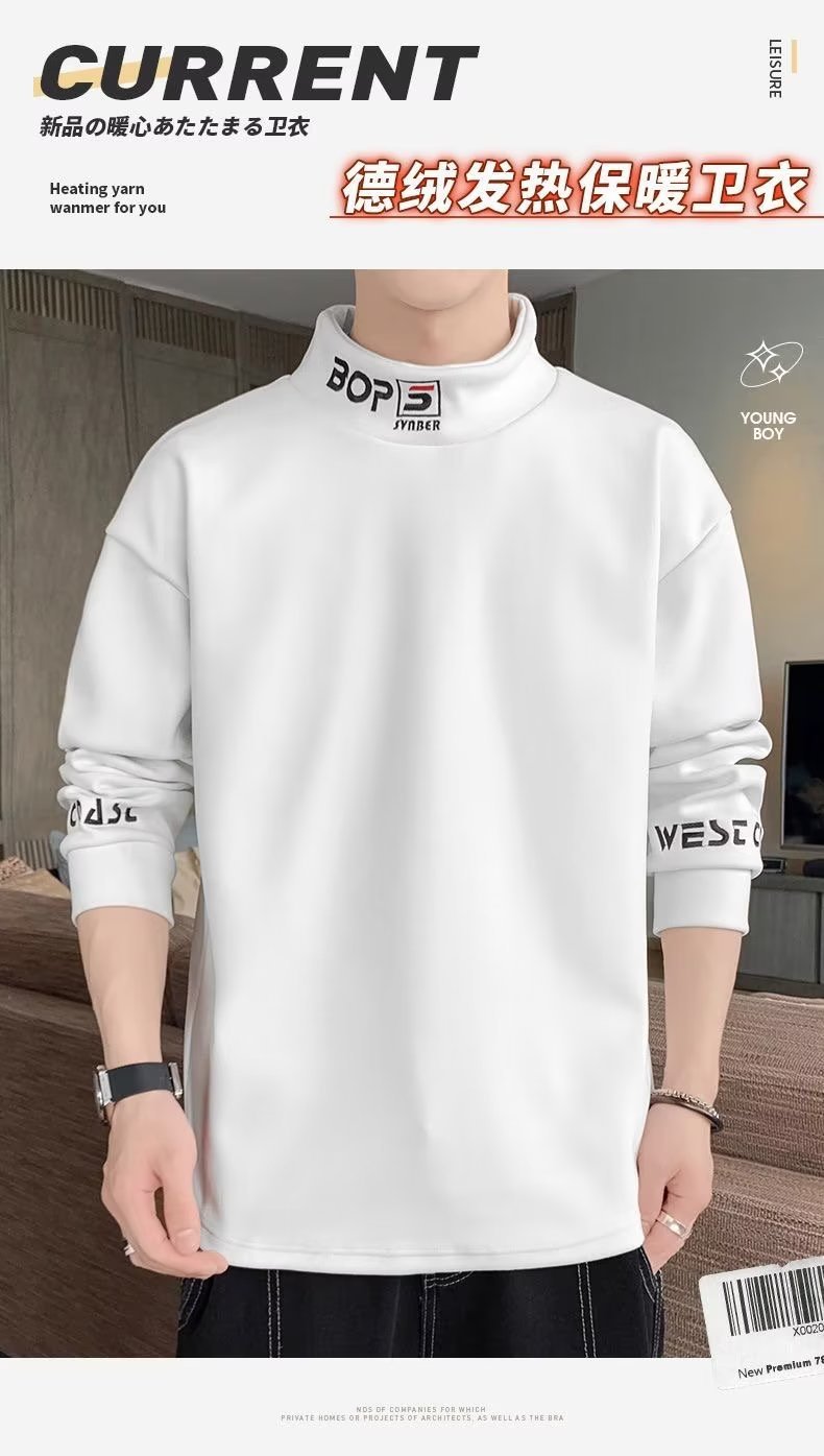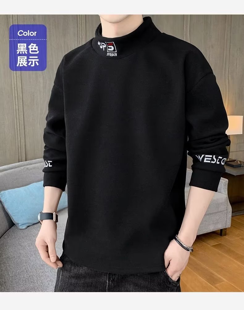 가을과 겨울 남성 양면 벨벳 스웨터 긴팔 티셔츠 세미 하이 칼라베이스 셔츠가 두껍게 된 청소년 캐주얼 따뜻한 재킷스토어 가기