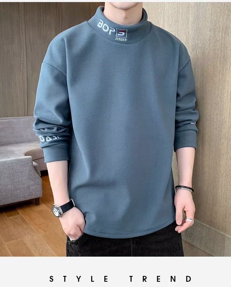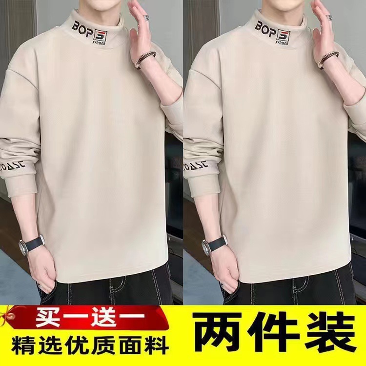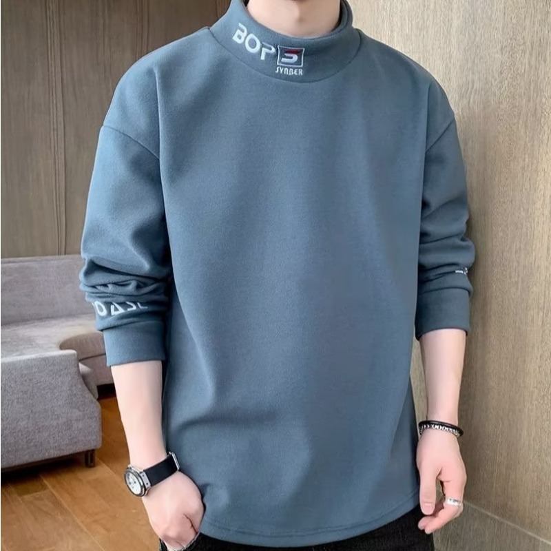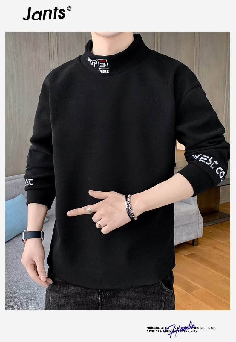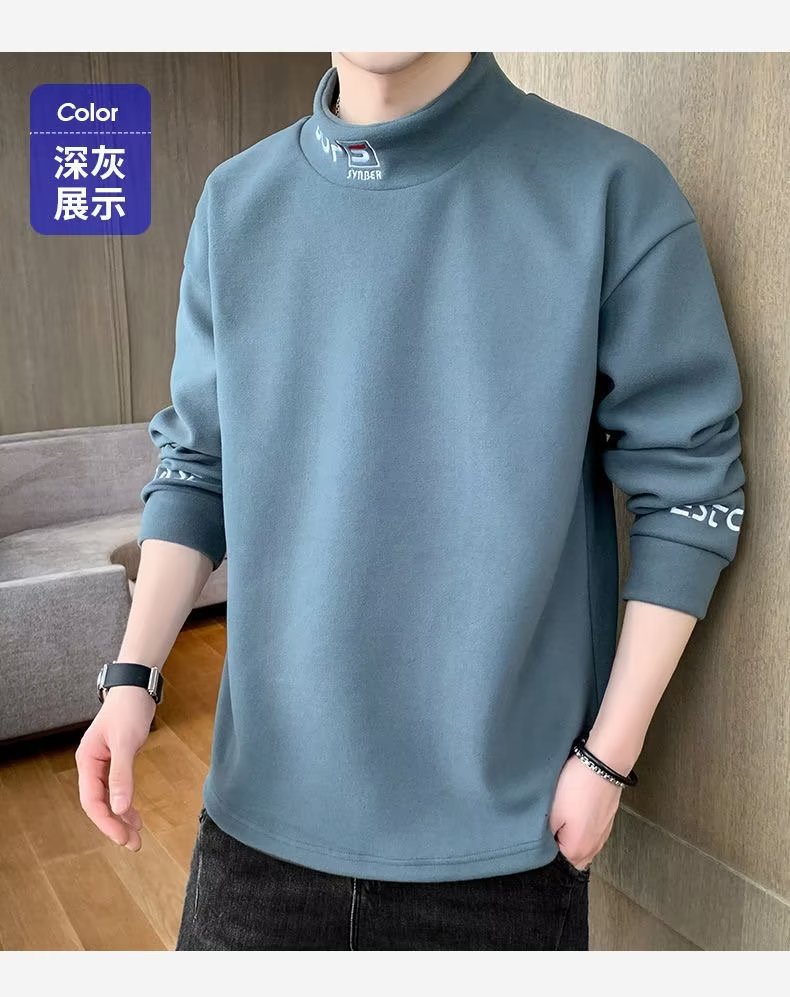 가을과 겨울 남성 양면 벨벳 스웨터 긴팔 티셔츠 세미 하이 칼라베이스 셔츠가 두껍게 된 청소년 캐주얼 따뜻한 재킷