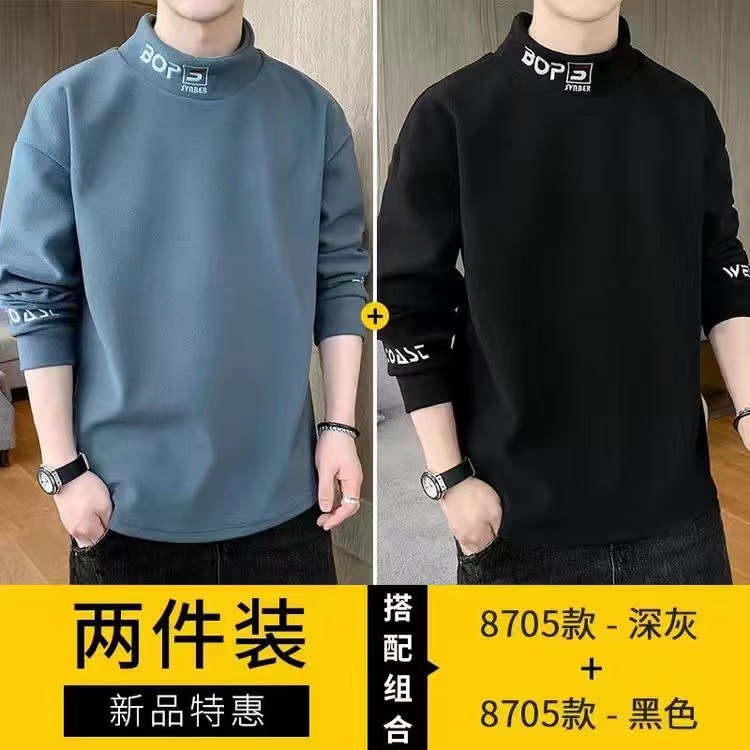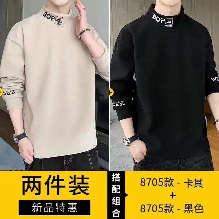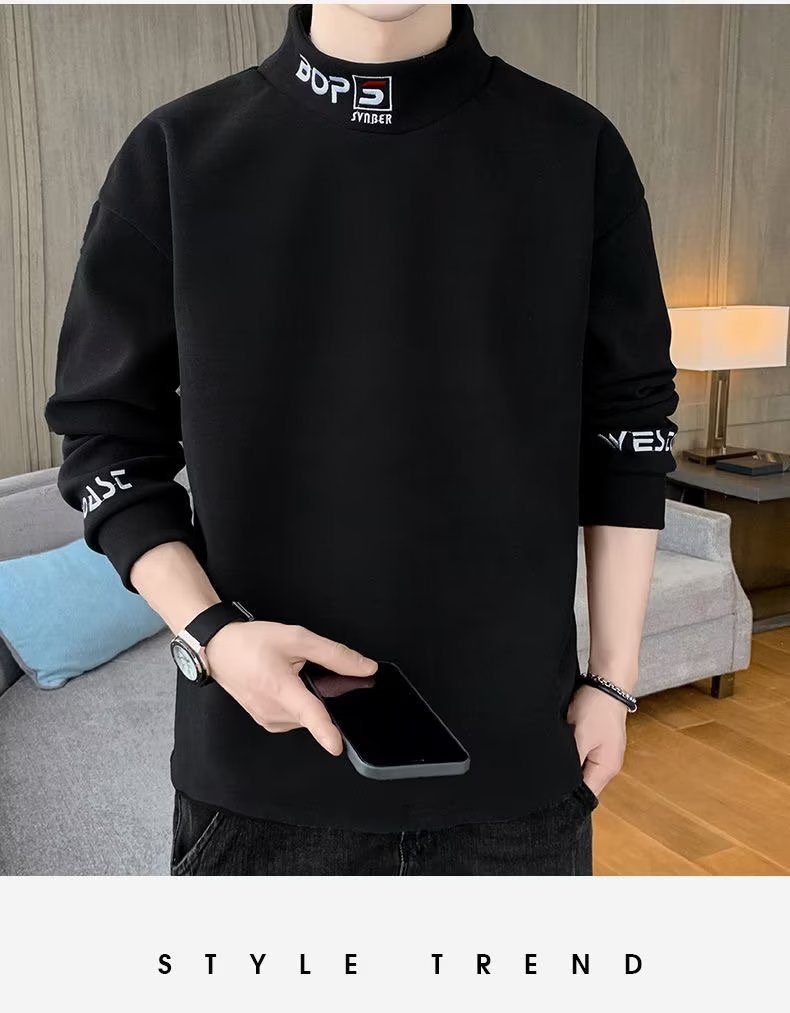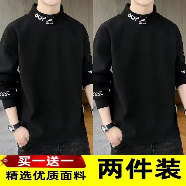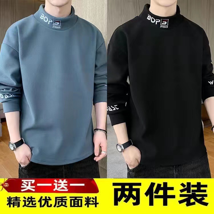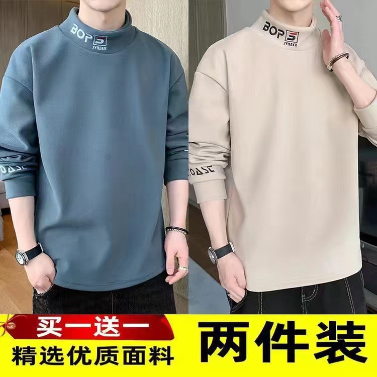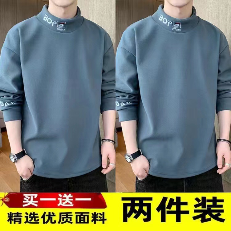 가을과 겨울 남성 양면 벨벳 스웨터 긴팔 티셔츠 세미 하이 칼라베이스 셔츠가 두껍게 된 청소년 캐주얼 따뜻한 재킷