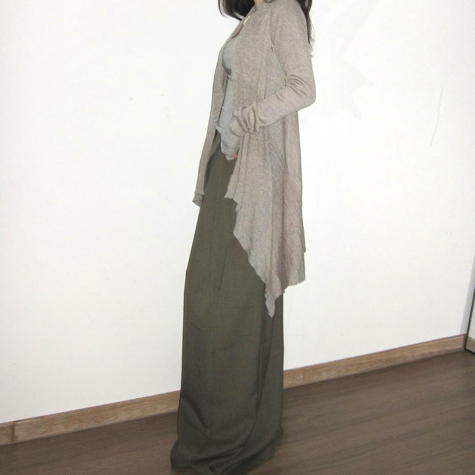 게으른 스타일 니트 카디건 여성 가을 디자인 불규칙한 헴 스웨터 재킷 캐주얼 와이드 다리 바지 세트