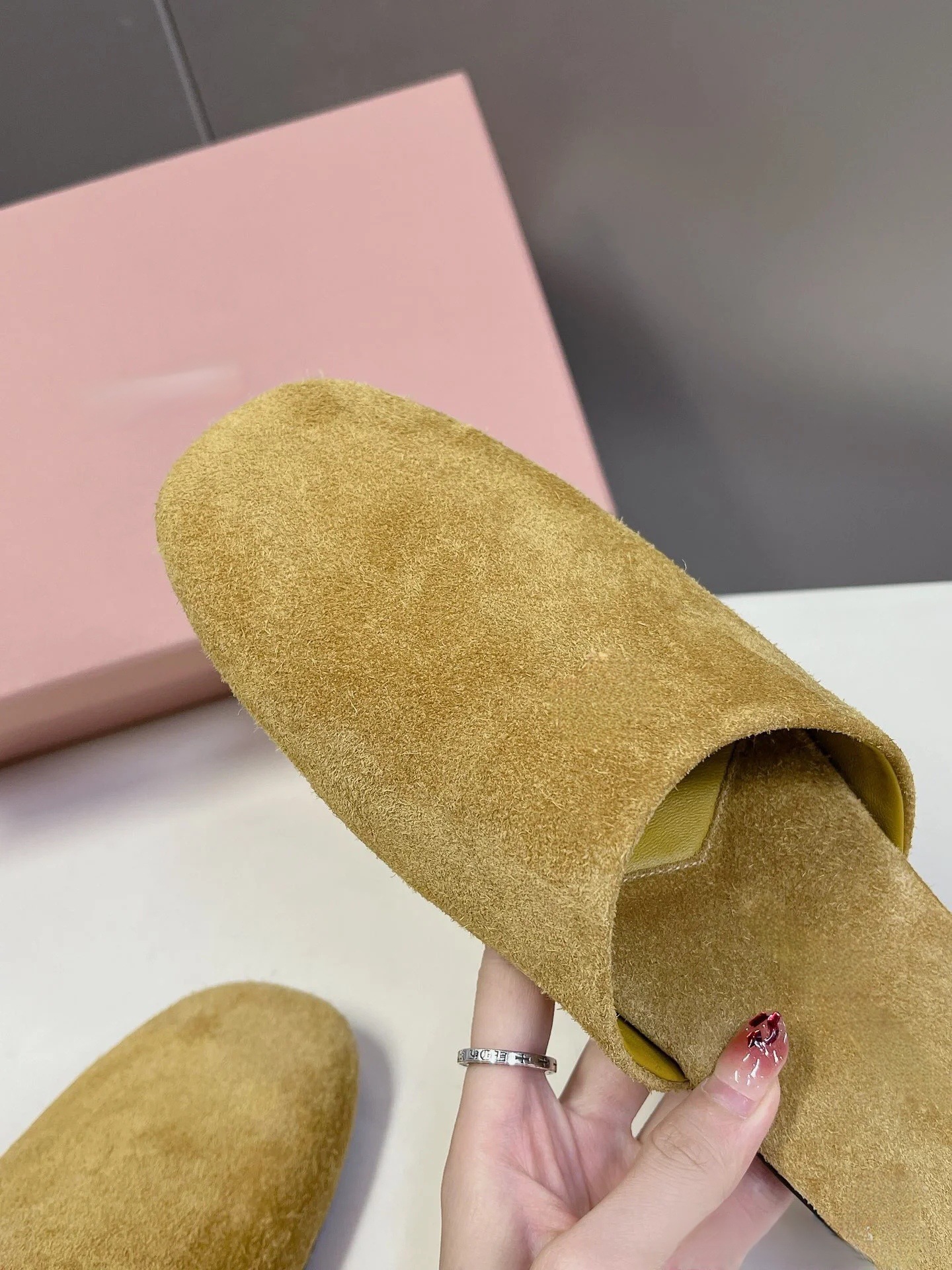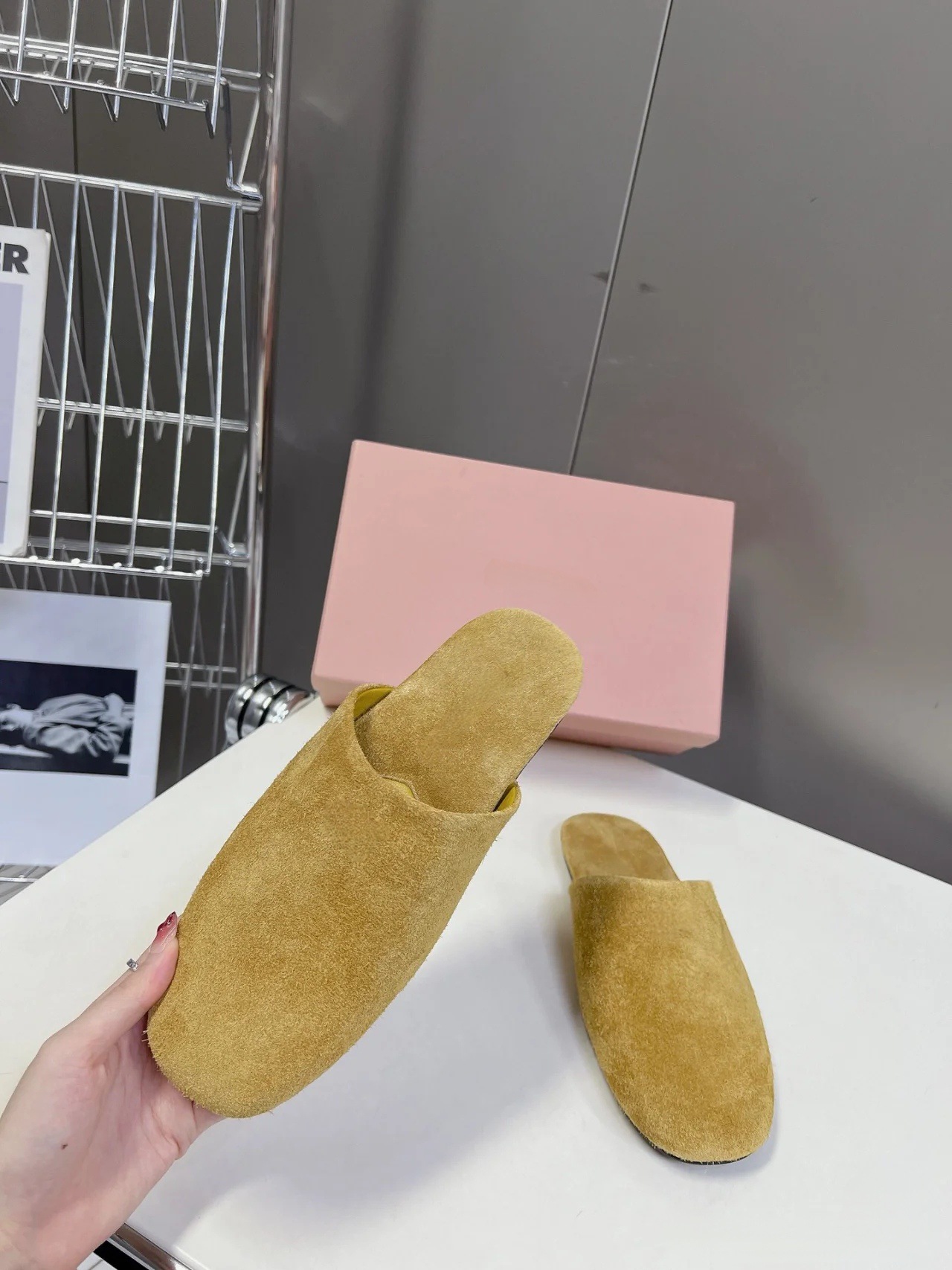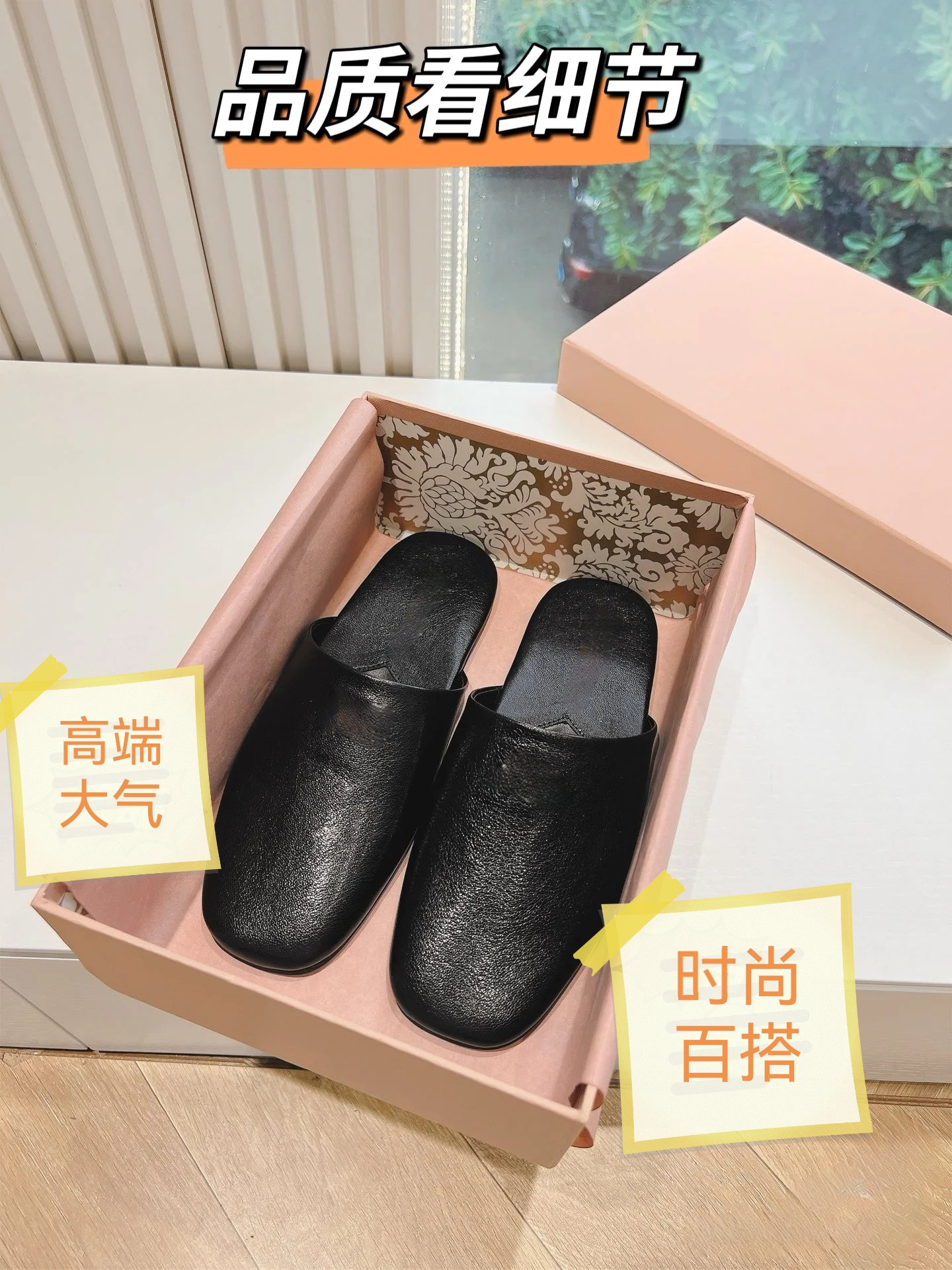 Miu Vintage Square Toe Mueller 신발 가을과 겨울 새로운 편안한 올 매치 플랫 게으른 캐주얼 발가락 하프 슬리퍼 여성용 샌들