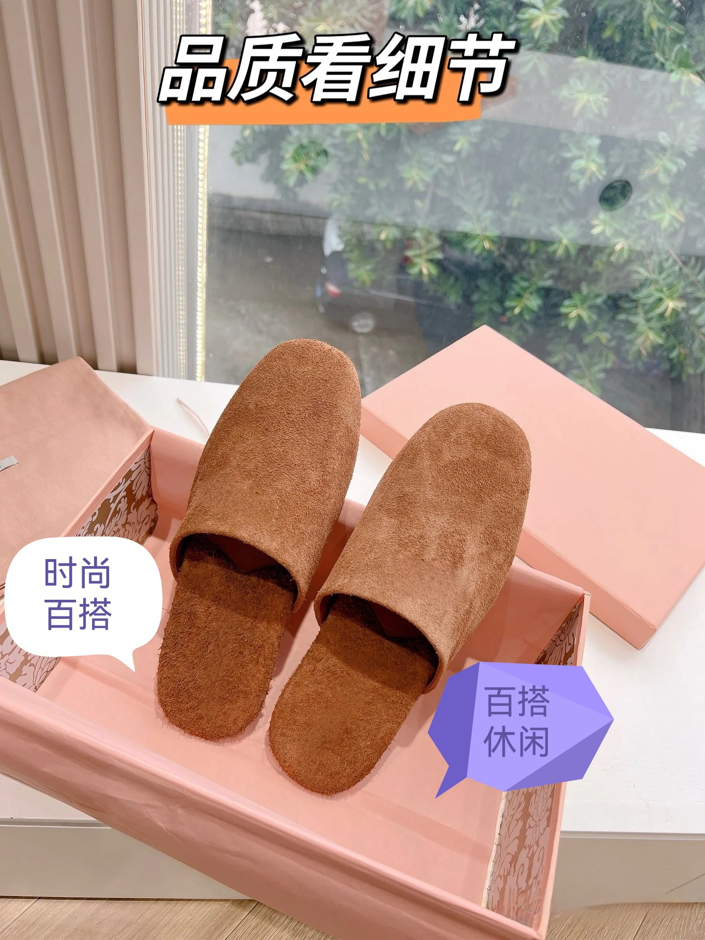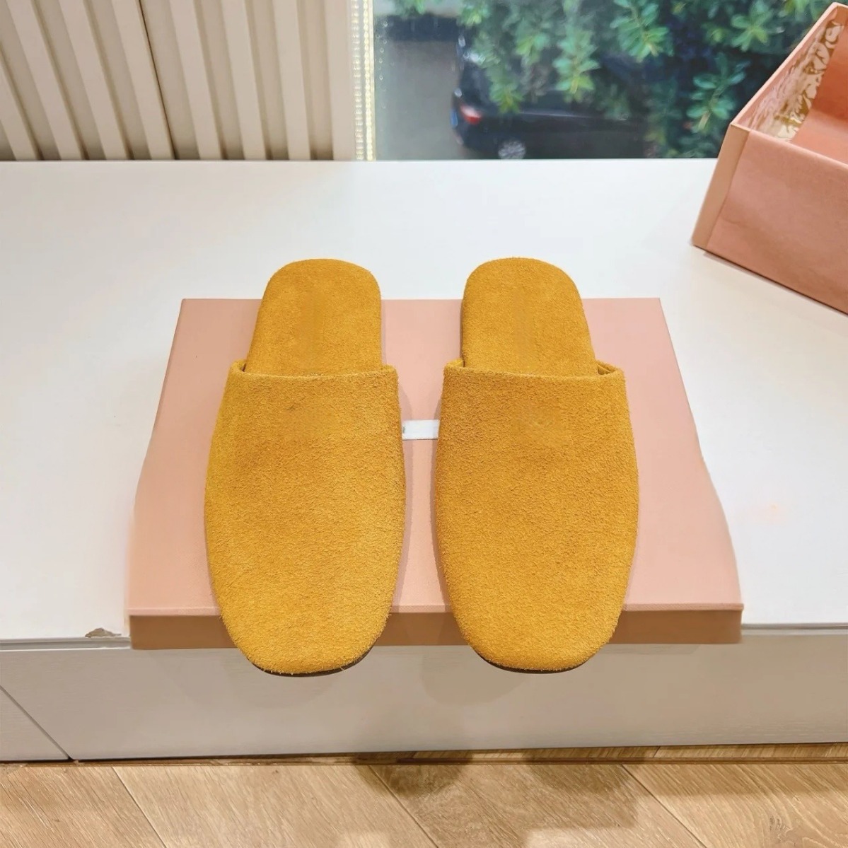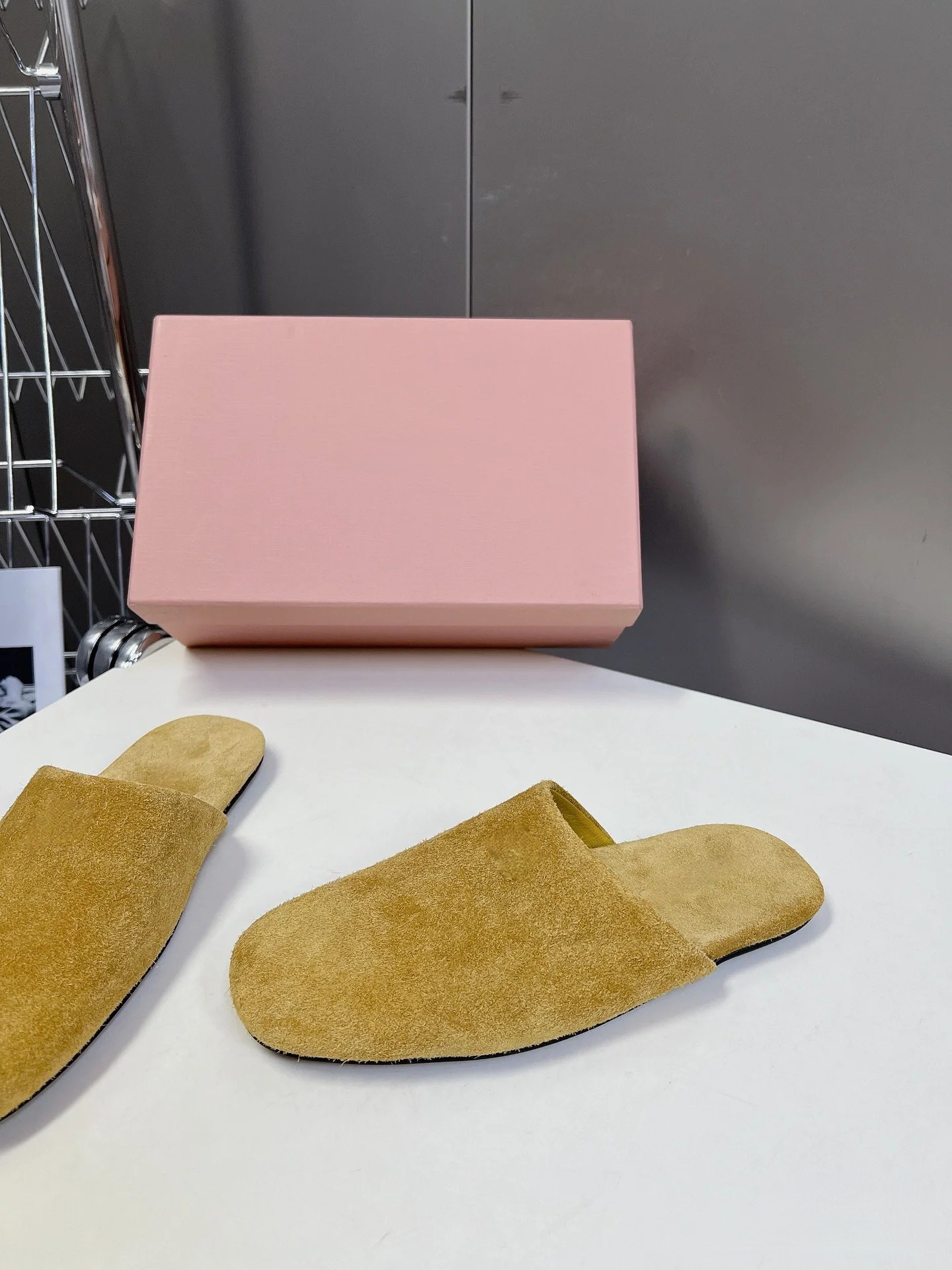 Miu Vintage Square Toe Mueller 신발 가을과 겨울 새로운 편안한 올 매치 플랫 게으른 캐주얼 발가락 하프 슬리퍼 여성용 샌들