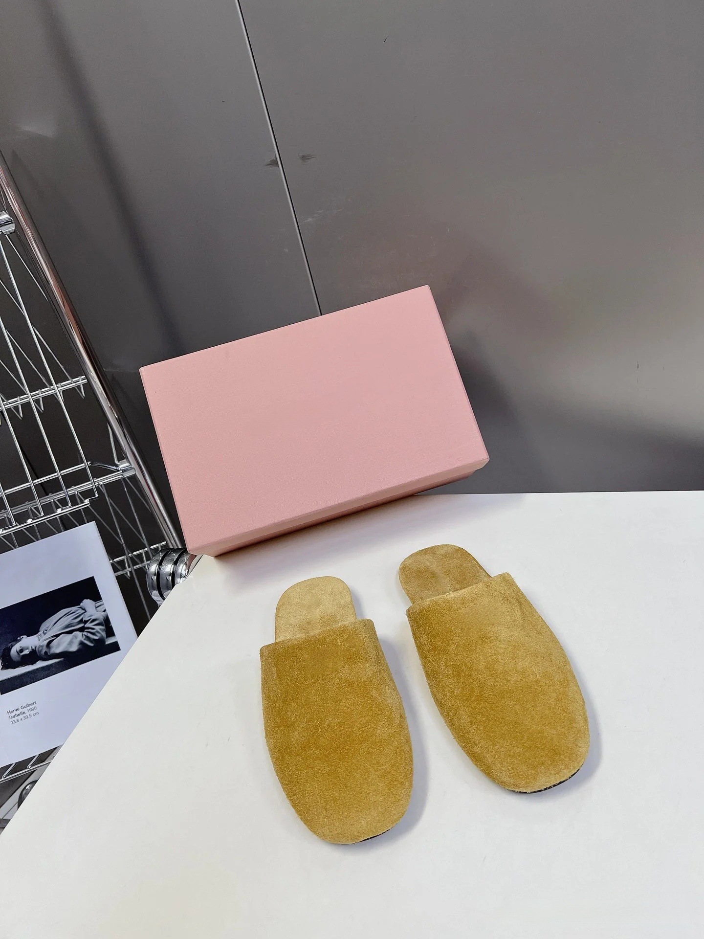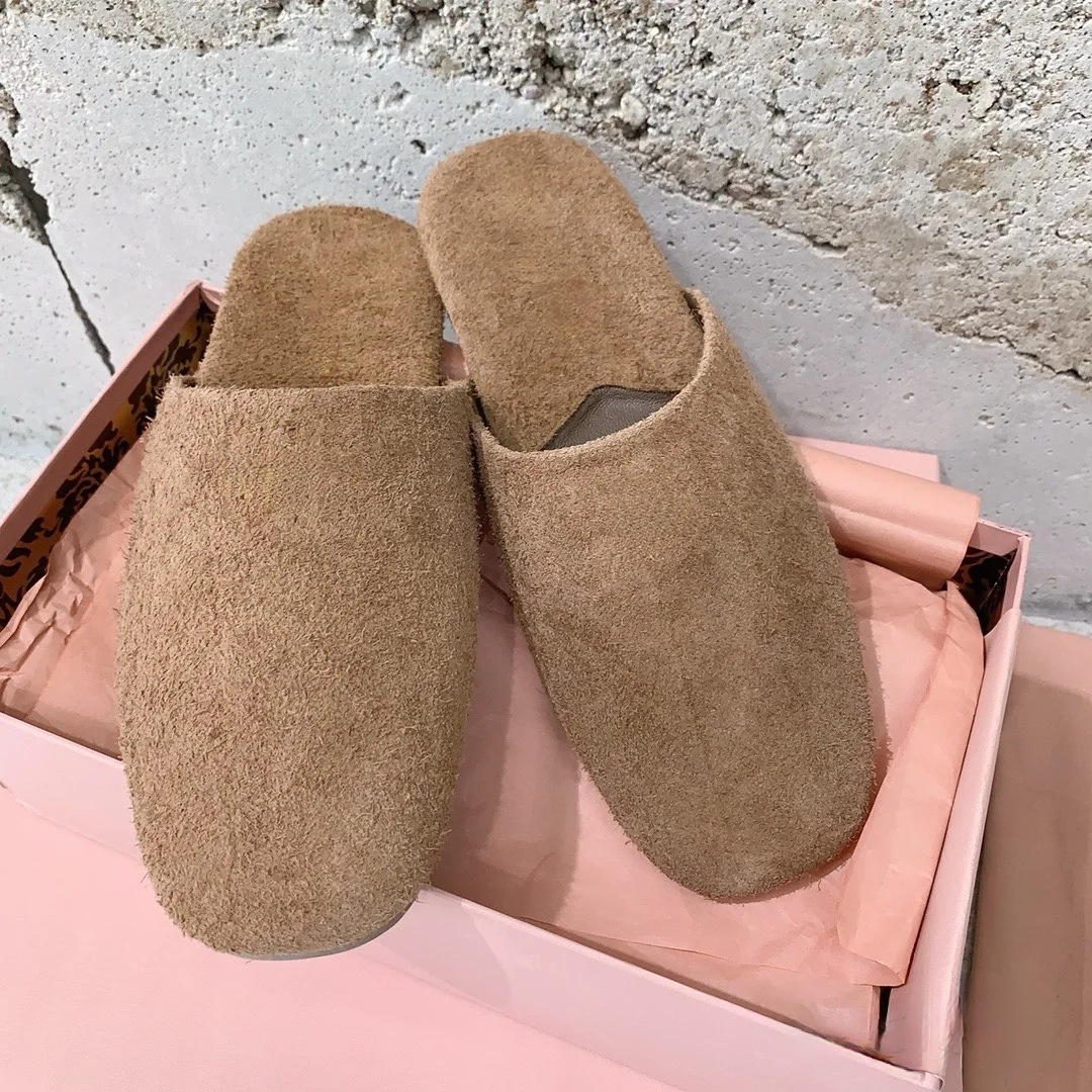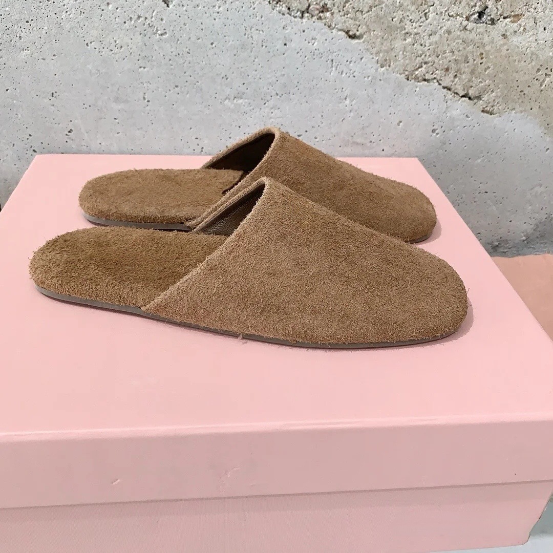 Miu Vintage Square Toe Mueller 신발 가을과 겨울 새로운 편안한 올 매치 플랫 게으른 캐주얼 발가락 하프 슬리퍼 여성용 샌들스토어 가기