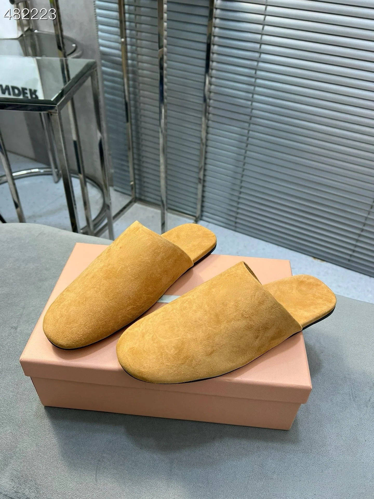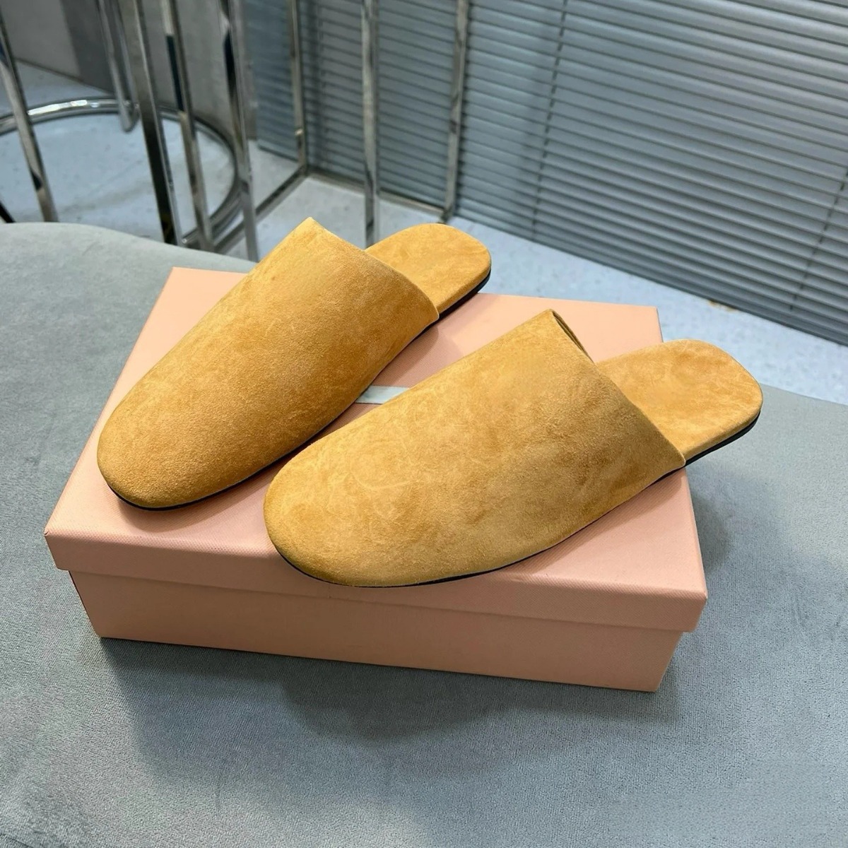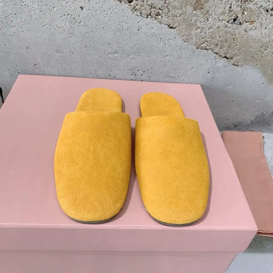 Miu Vintage Square Toe Mueller 신발 가을과 겨울 새로운 편안한 올 매치 플랫 게으른 캐주얼 발가락 하프 슬리퍼 여성용 샌들스토어 가기