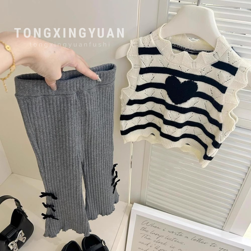 Tongxingyuan 소녀 가을 세트 새로운 스타일 유행 옷 소녀 어린이 봄과 가을 조끼 바지 투피스 세트