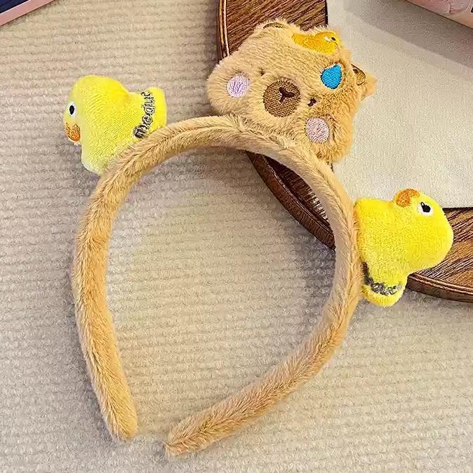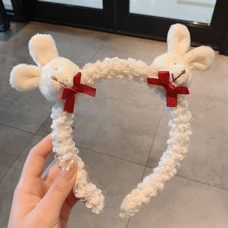 가을과 겨울 만화 귀여운 봉제 헤어 밴드 2024 새로운 곰 토끼 세척 얼굴 미끄럼 방지 머리핀 여성 헤어 밴드