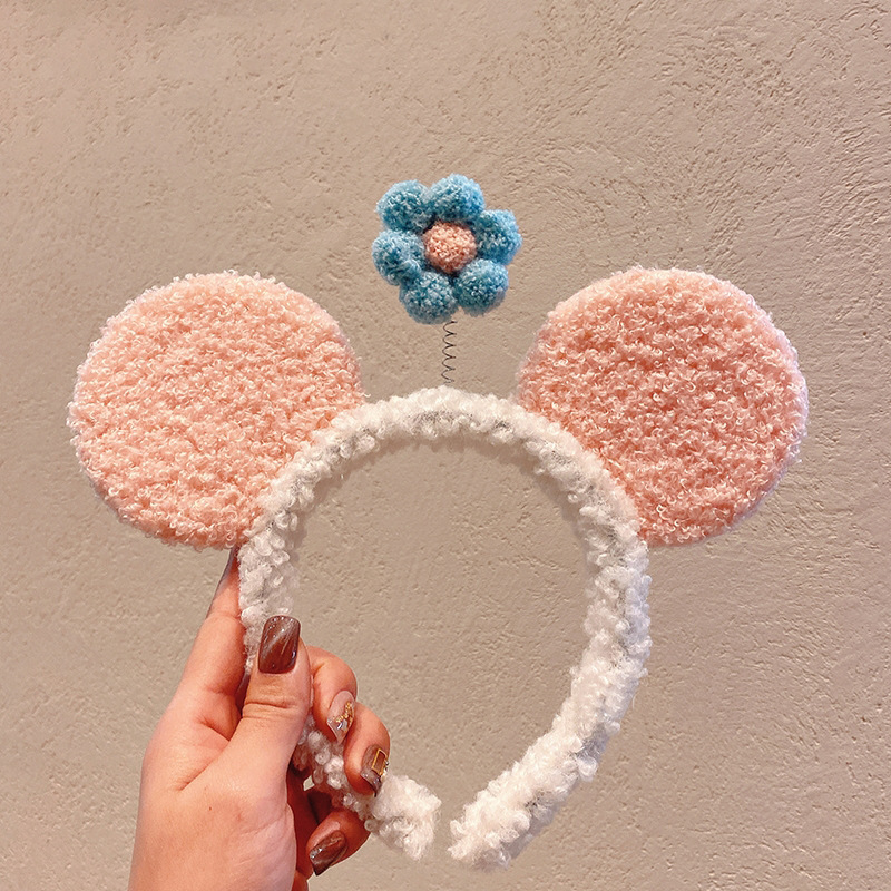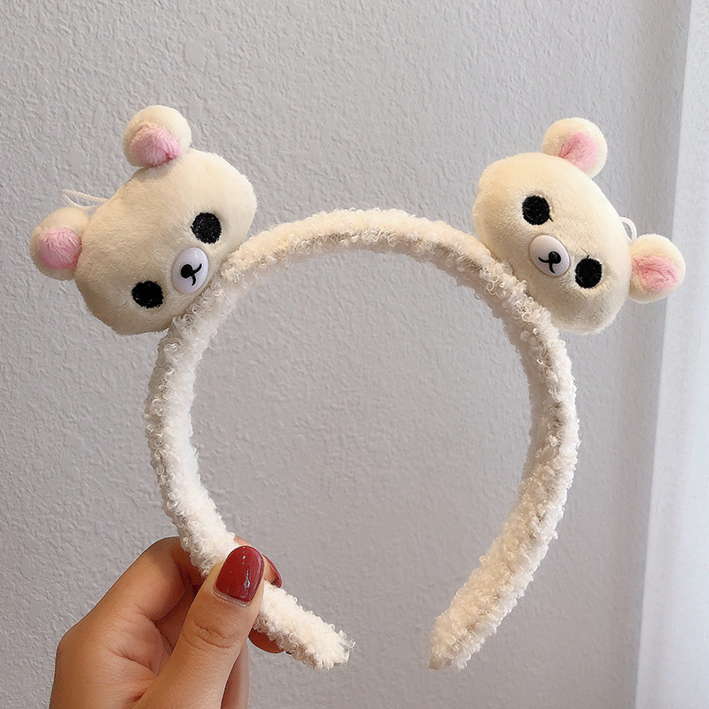 가을과 겨울 만화 귀여운 봉제 헤어 밴드 2024 새로운 곰 토끼 세척 얼굴 미끄럼 방지 머리핀 여성 헤어 밴드스토어 가기