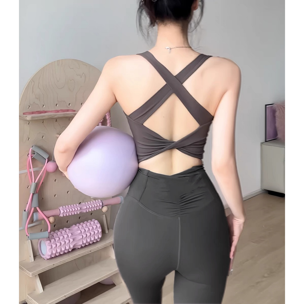 고정 가슴 패드 스포츠 조끼 요가 높은 허리 달리기 필라테스 엉덩이 리프팅 복숭아 엉덩이 훈련 아름다운 뒤 브래지어 1590스토어 가기