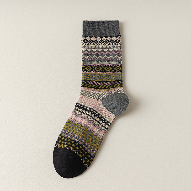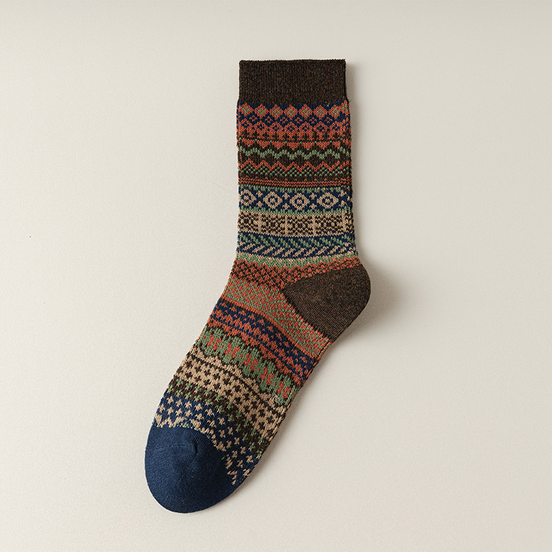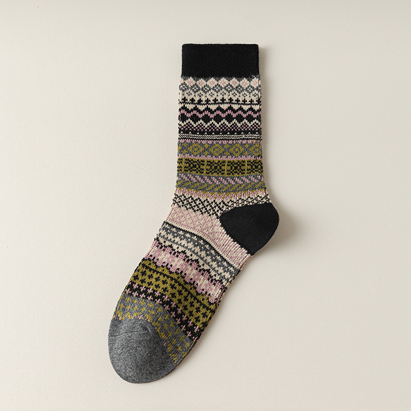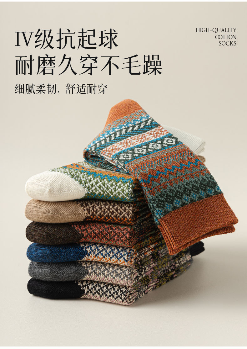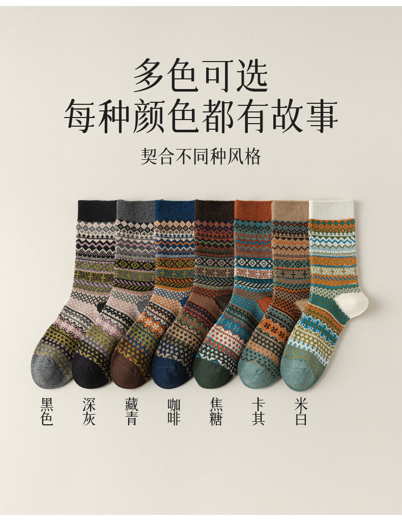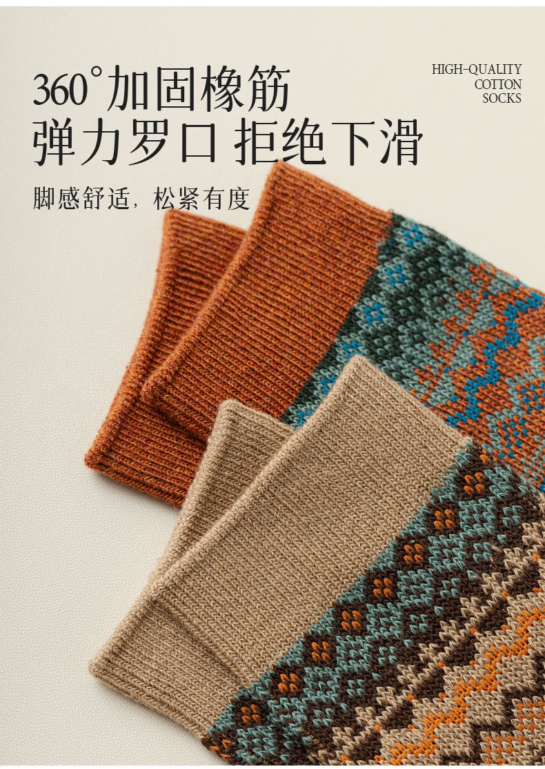 양말 여성용 미드 양말 가을과 겨울 더블 바늘 민족 스타일 레트로 트렌디 양말 안티 필링 신강 코튼 작은 가죽 신발