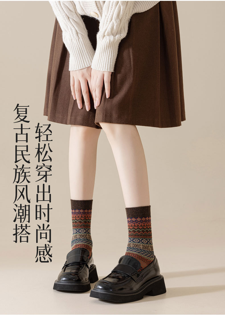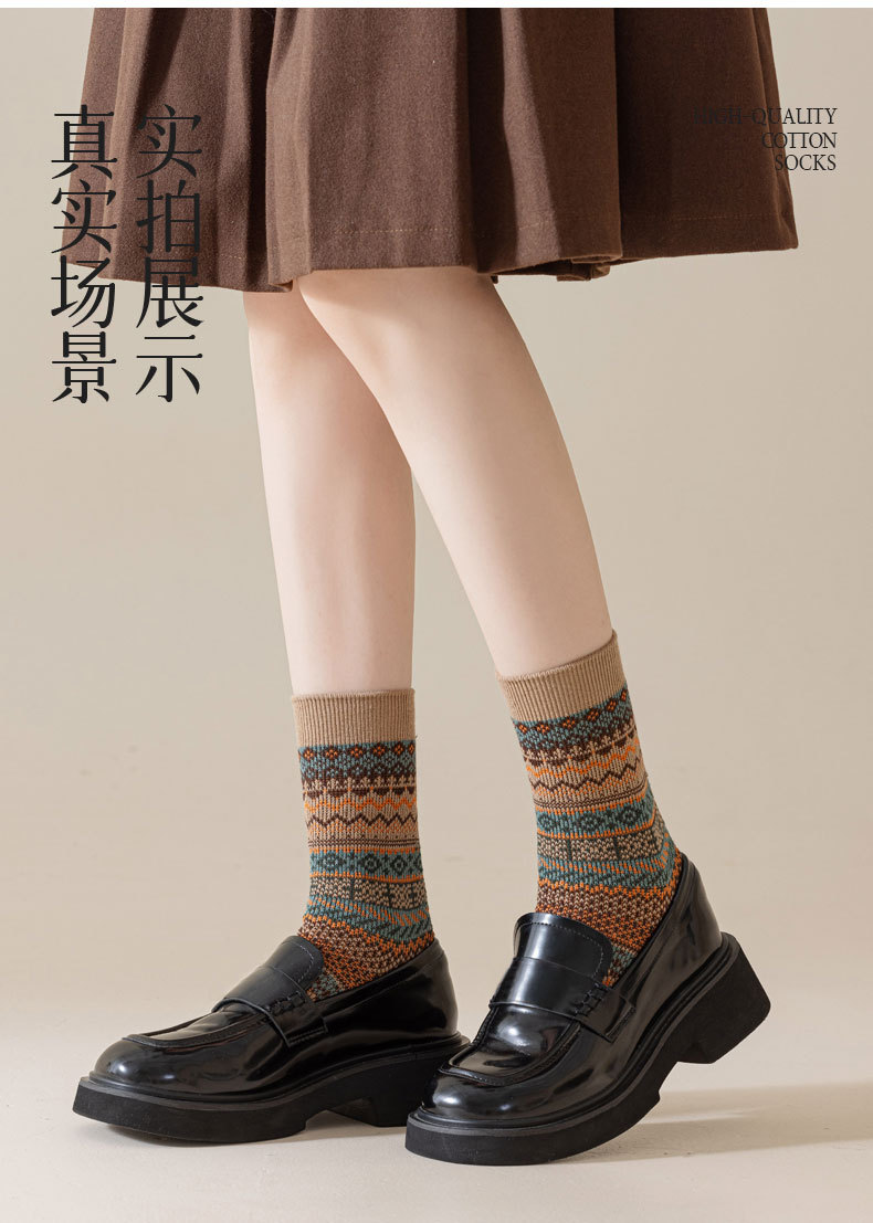 양말 여성용 미드 양말 가을과 겨울 더블 바늘 민족 스타일 레트로 트렌디 양말 안티 필링 신강 코튼 작은 가죽 신발스토어 가기