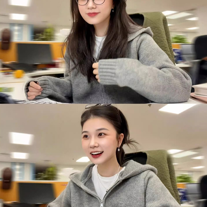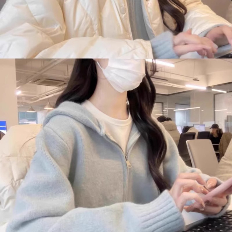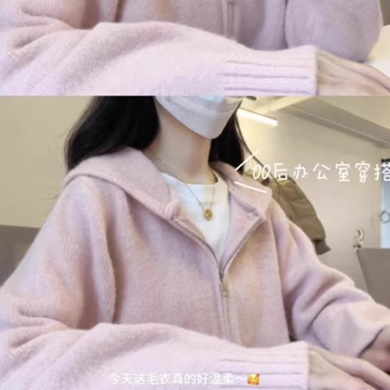 핑크 후드 스웨터 탑 여성 봄과 가을 2024 봄 지퍼 게으른 부드러운 왁스 외부 스웨터 카디건 재킷스토어 가기