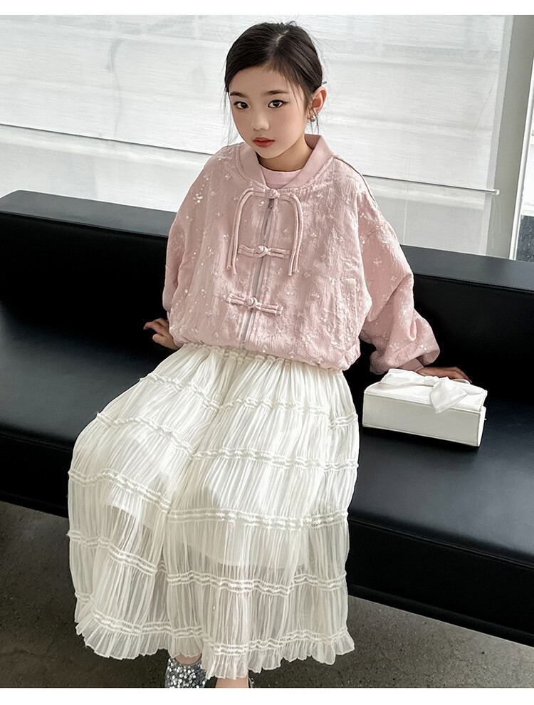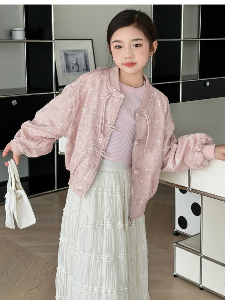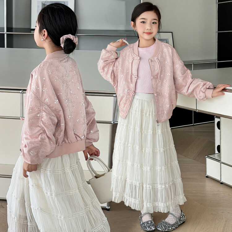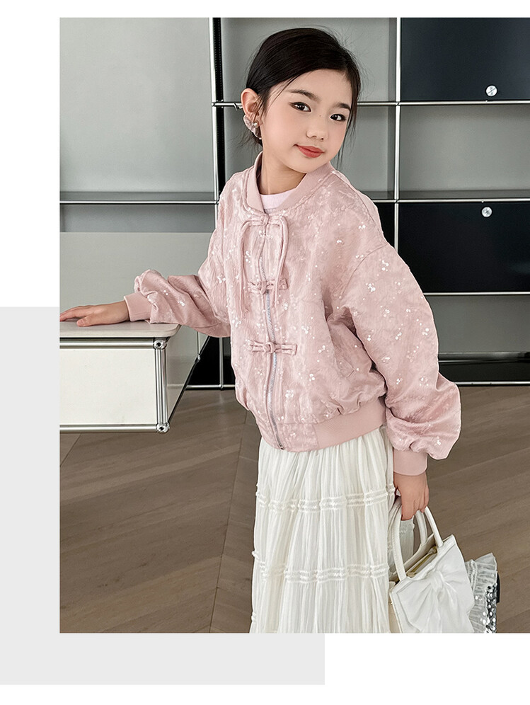 소녀의 국가 스타일 코트 봄과 가을 2024 새로운 어린이 서양 스타일 봄 재킷 소녀의 중국 스타일 탑 유행 빈티지스토어 가기