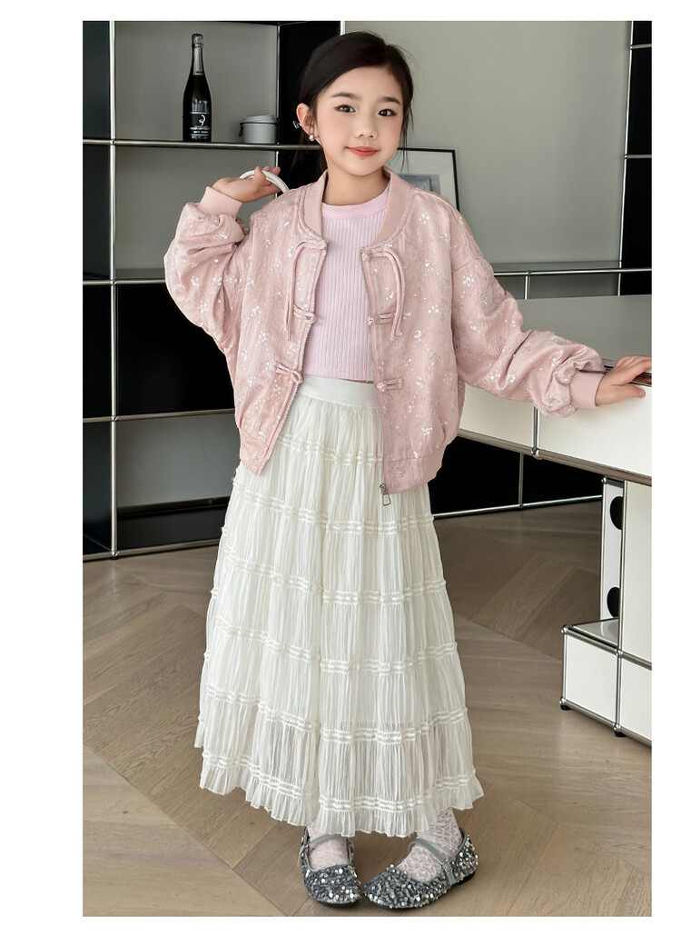 소녀의 국가 스타일 코트 봄과 가을 2024 새로운 어린이 서양 스타일 봄 재킷 소녀의 중국 스타일 탑 유행 빈티지
