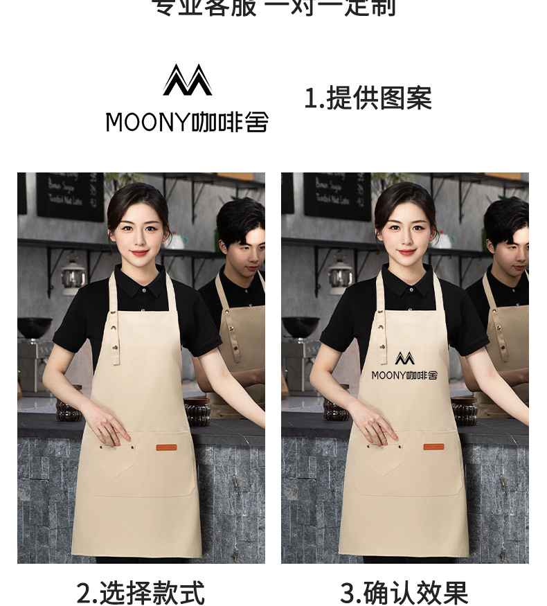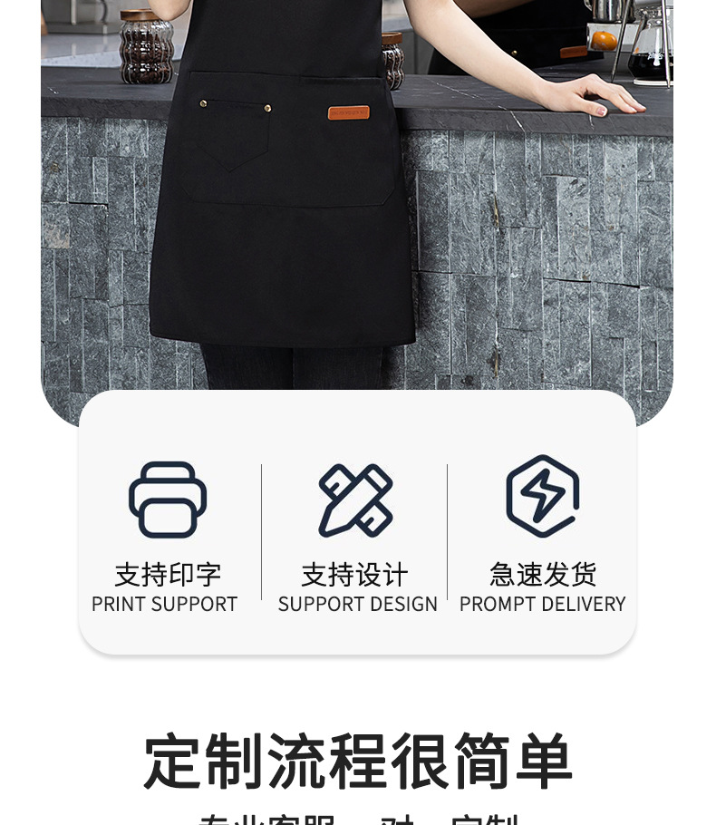도매 재고 방수 및 내유성 앞치마 맞춤 인쇄 로고 얼룩 방지 케이터링 베이킹 슈퍼마켓 커피 밀크 티 샵