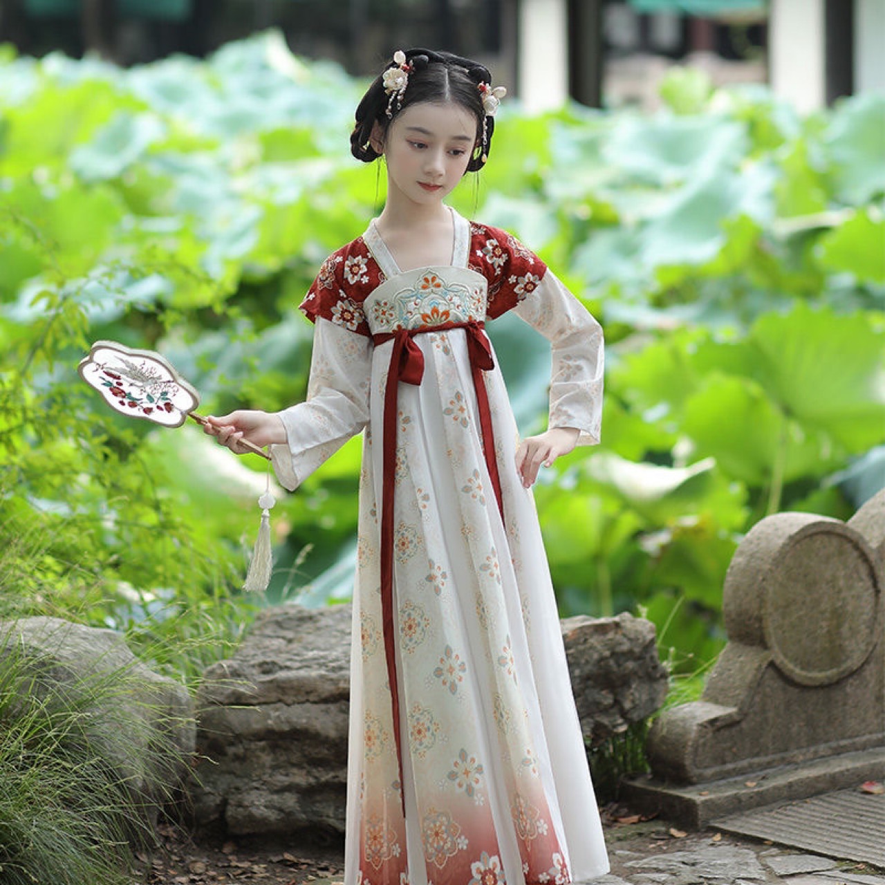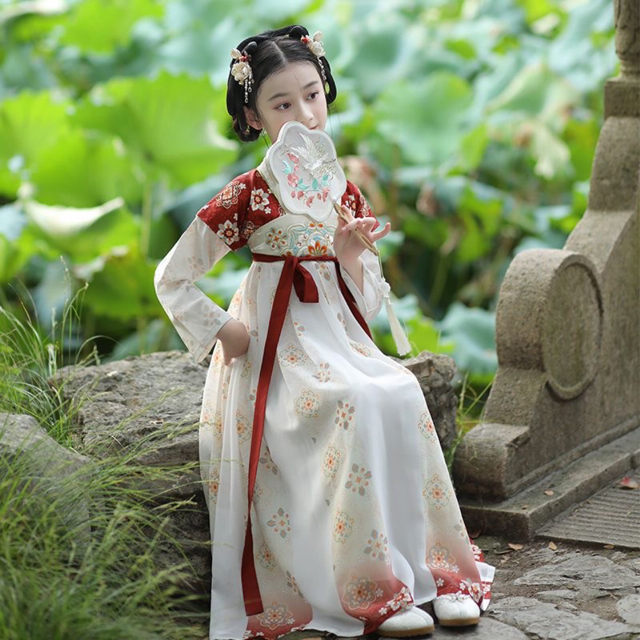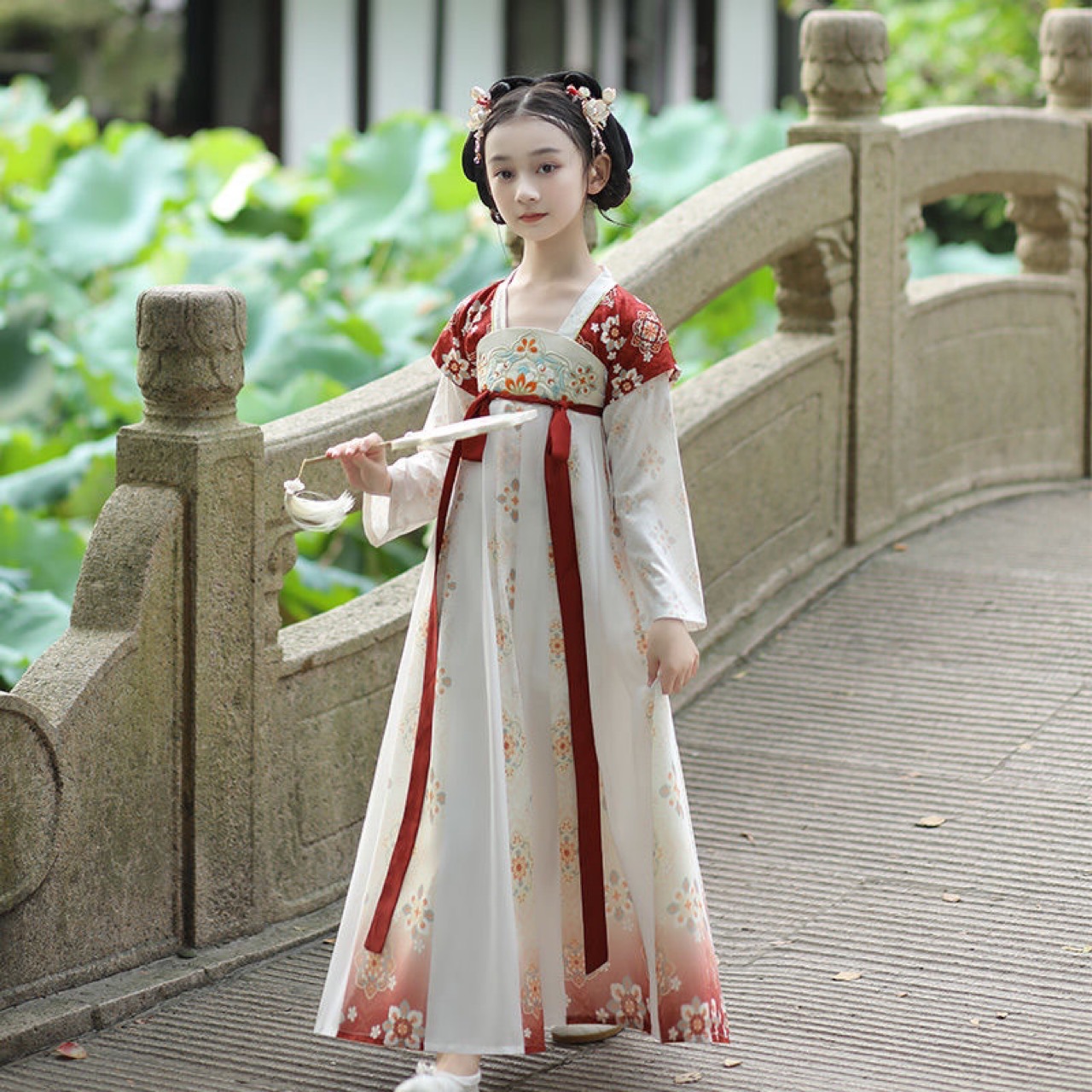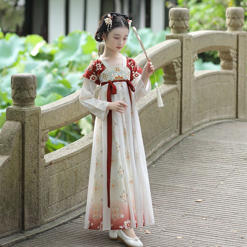 소녀 중추절 한후 슈퍼 요정 골동품 자수 스커트 어린이 원피스 스커트 소녀의 봄과 가을 당나라 세트 공연 원피스스토어 가기